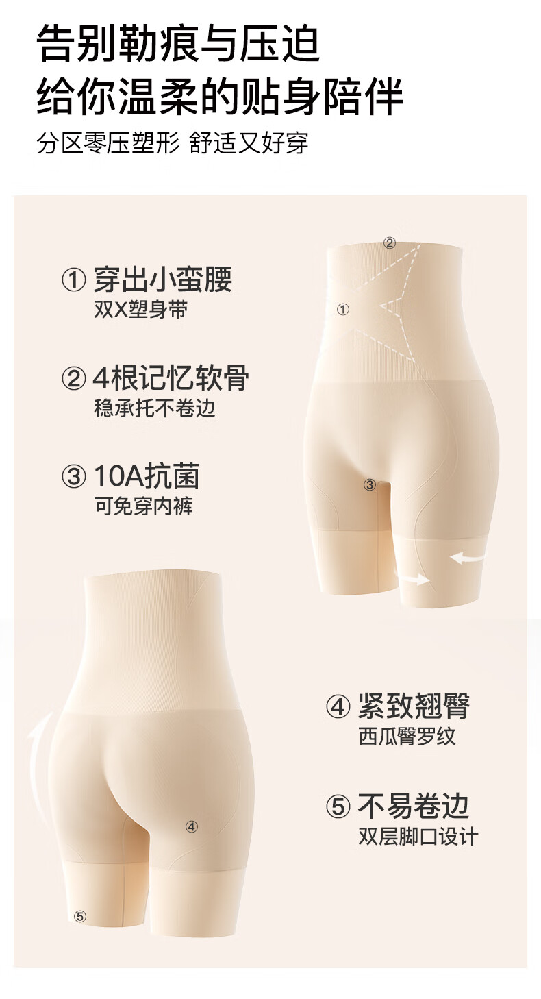 曲线主义【张雨绮同款】收腹裤收小肚子提臀裤收腹女塑身裤束腰 肤色 M
