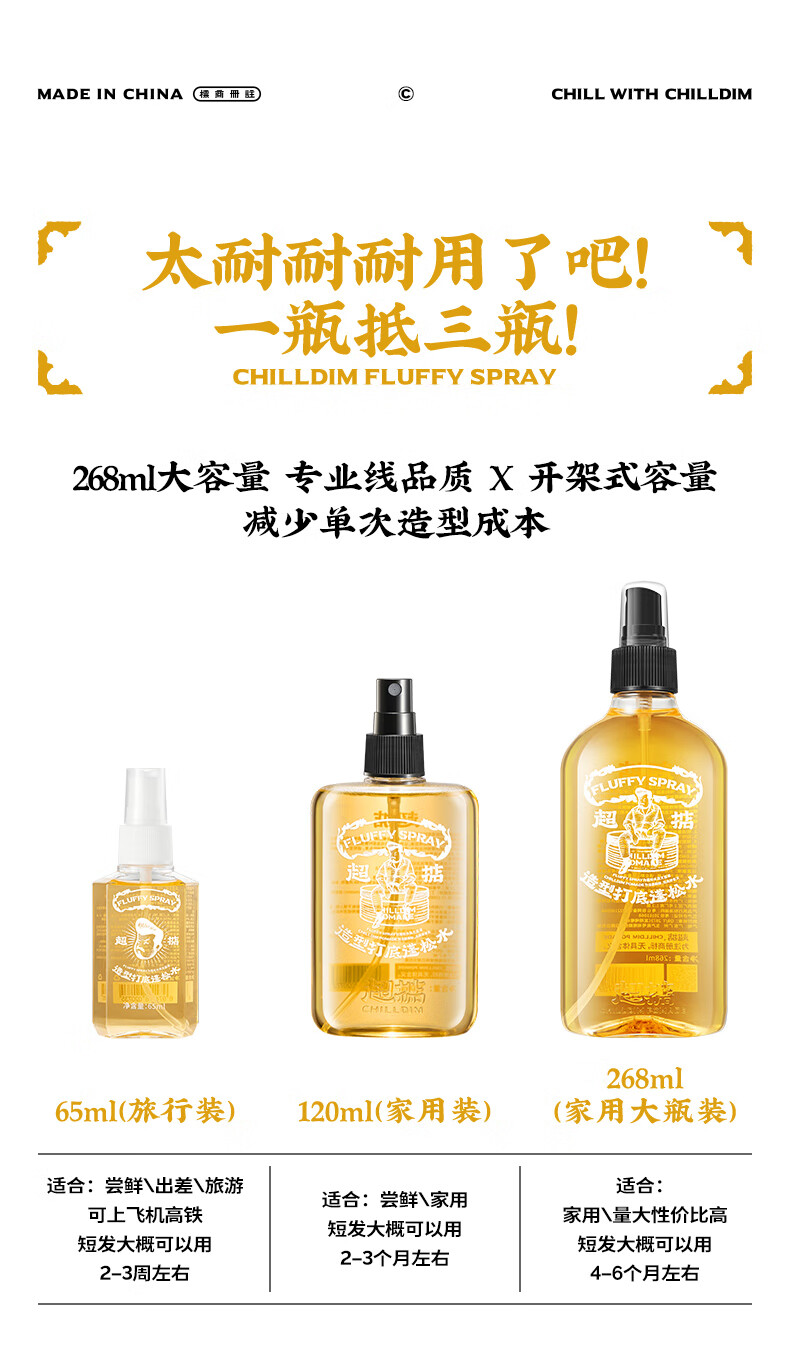 超掂(Chilldim)广府潮牌男女造型轻松定型蓬松水喷雾 【超掂蓬松水】120ml