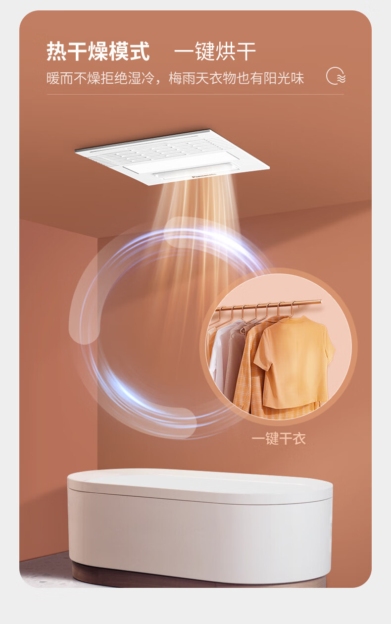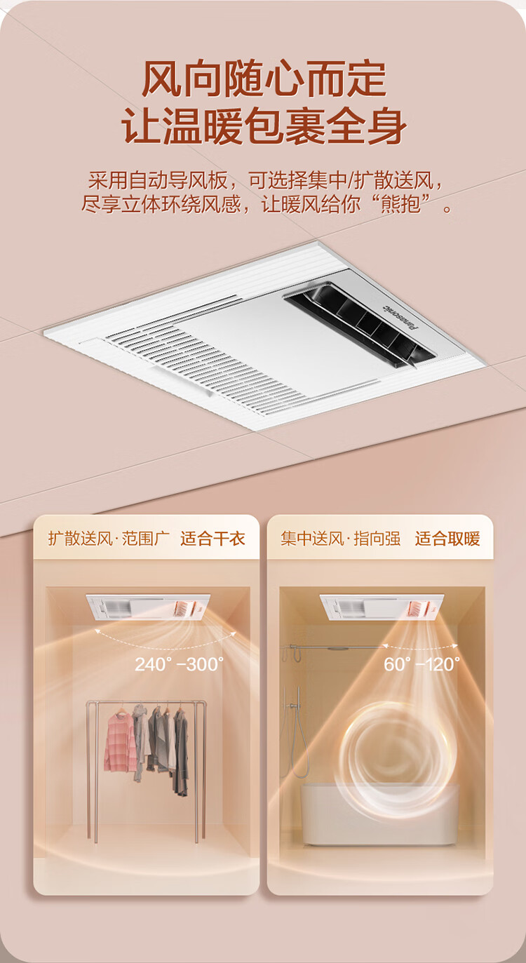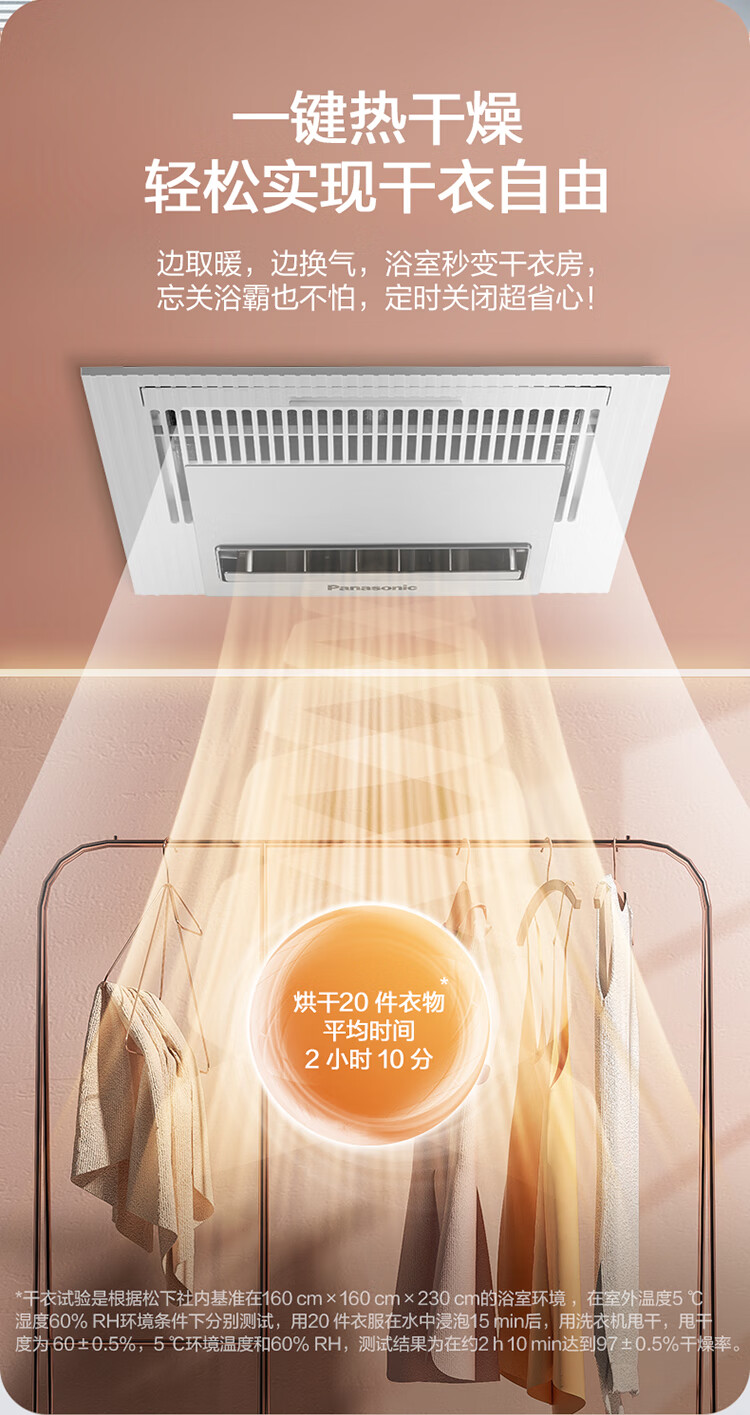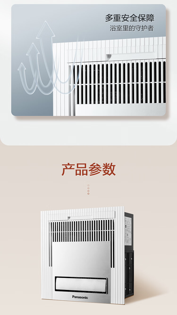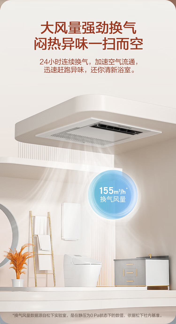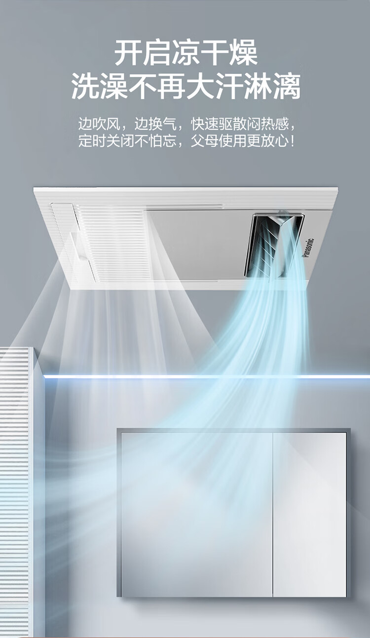 松下(Panasonic)风暖浴霸 暖风照明排气一体智能浴室暖风机 吊顶式卫生间换气浴霸 2100W主推速暖款-RB20Y1