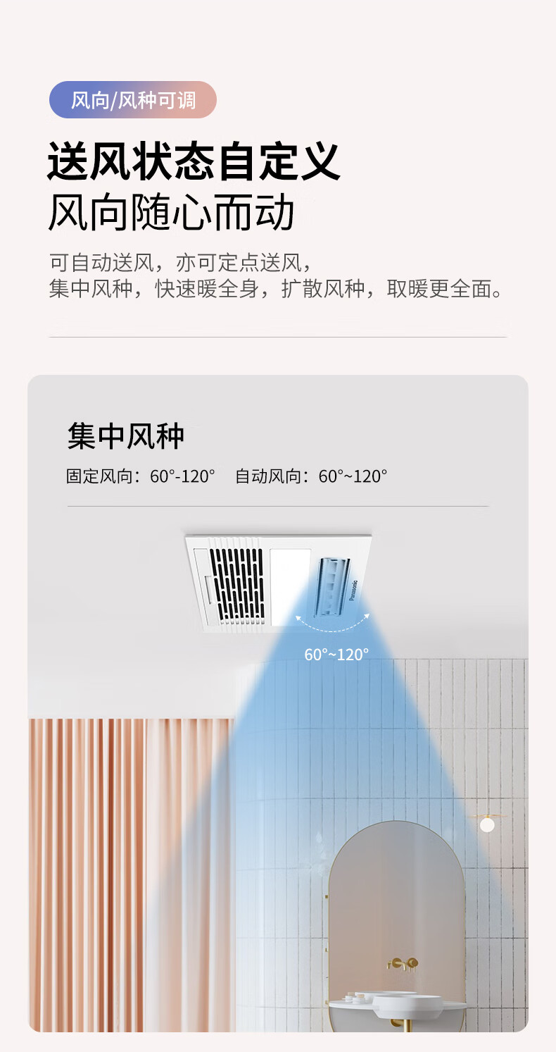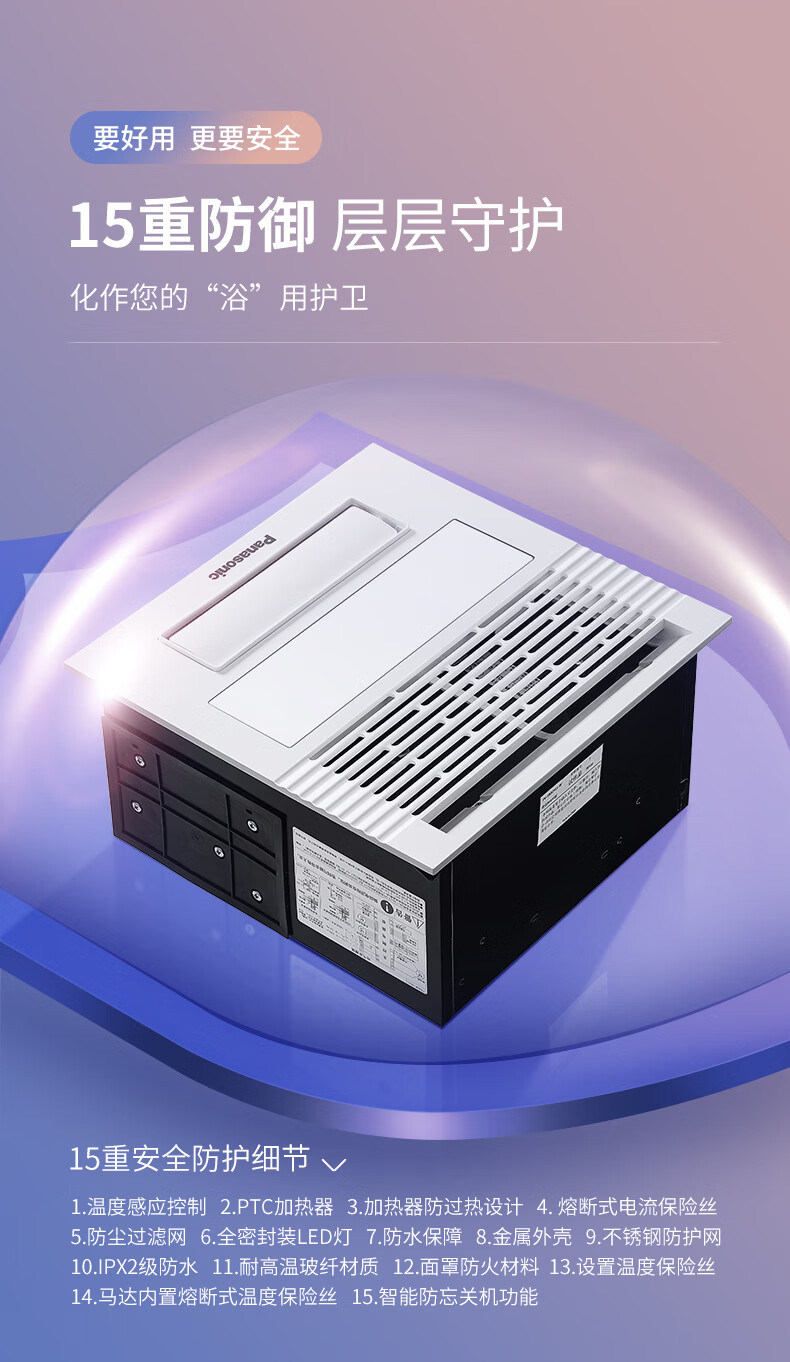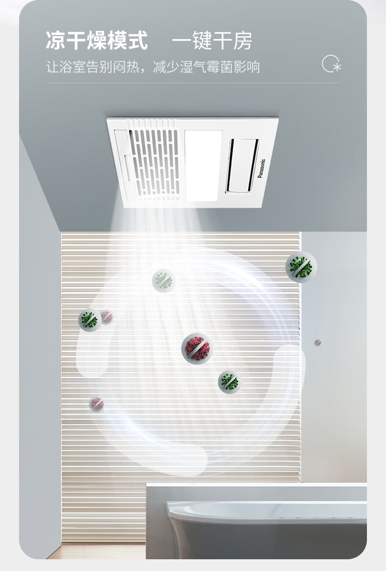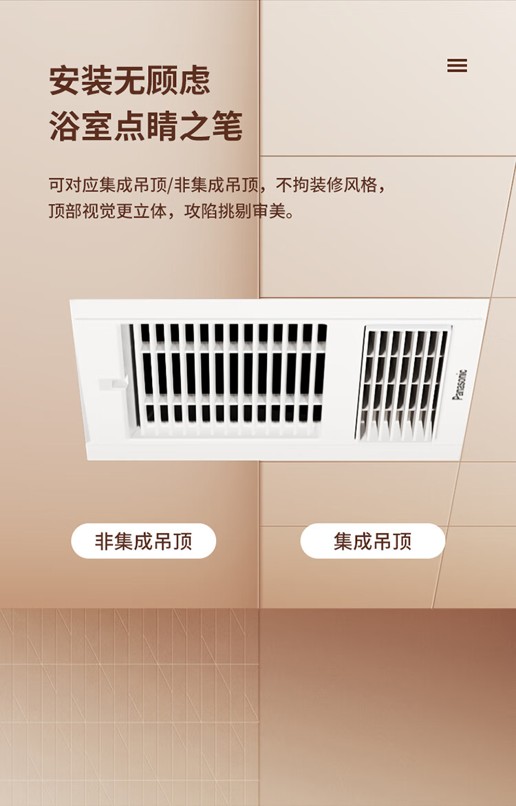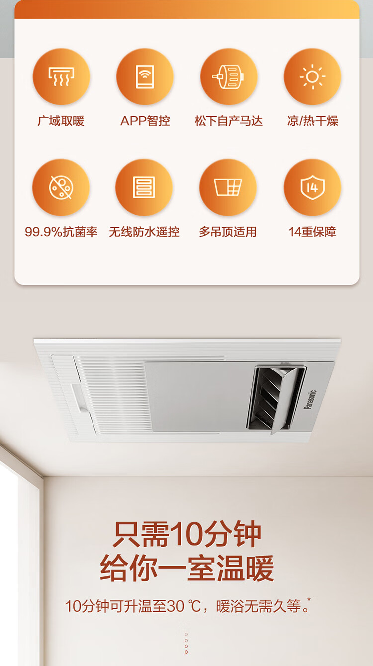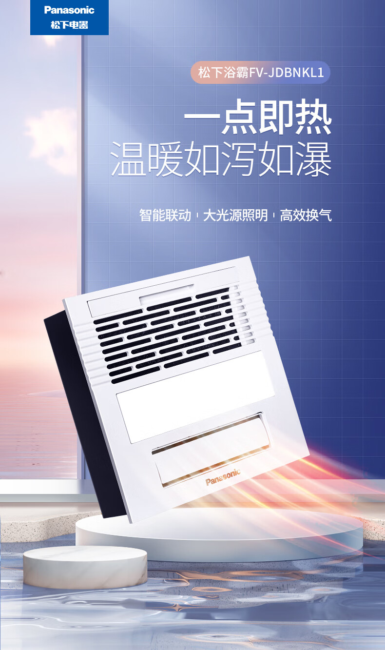松下(Panasonic)风暖浴霸 暖风照明排气一体智能浴室暖风机 吊顶式卫生间换气浴霸 2100W主推速暖款-RB20Y1