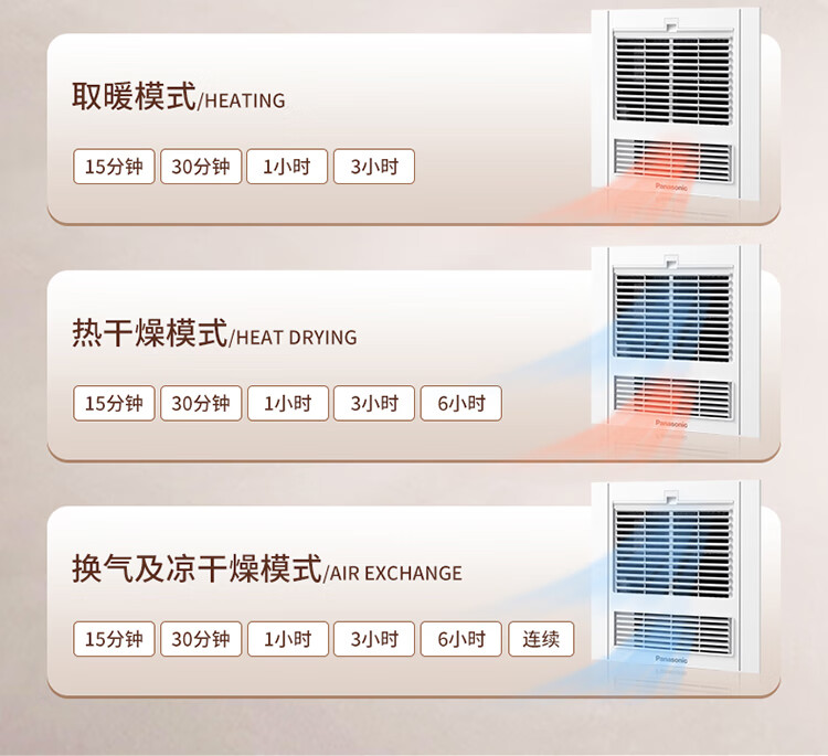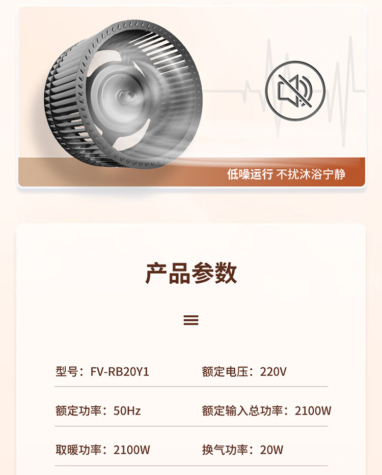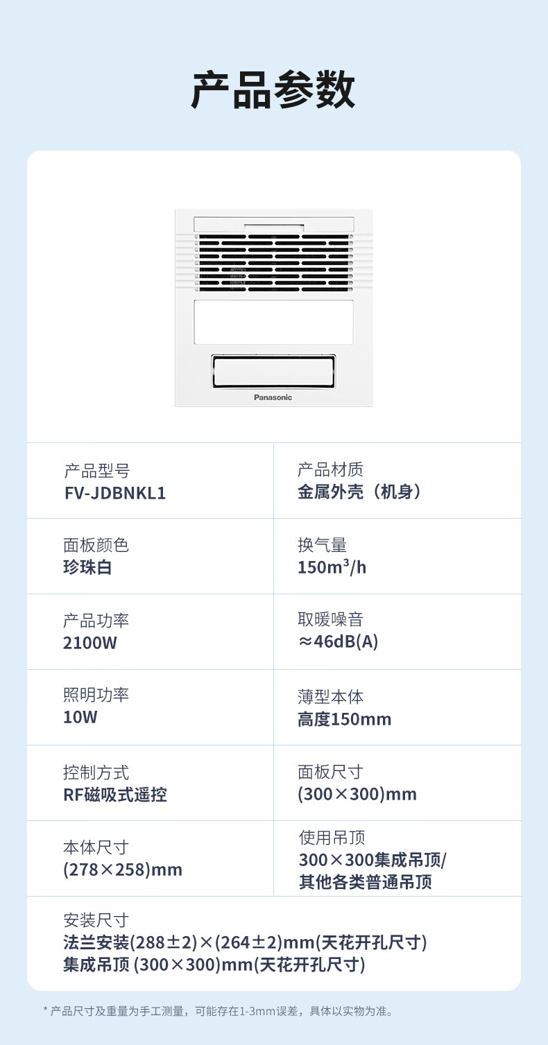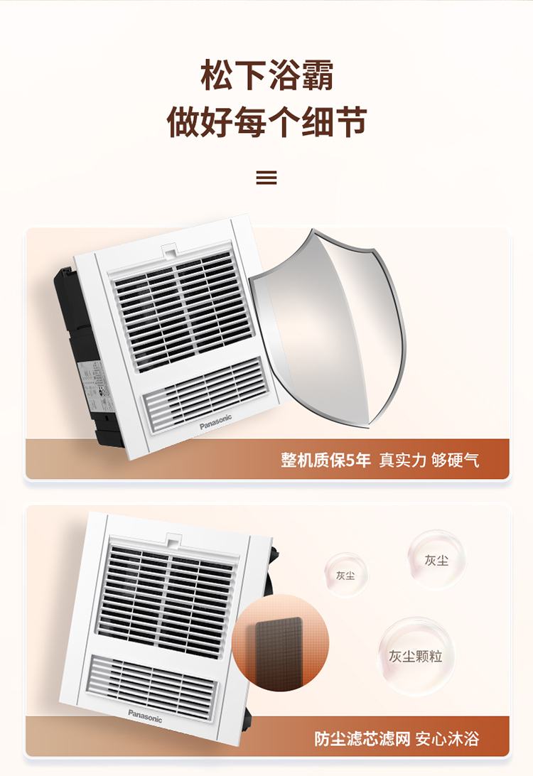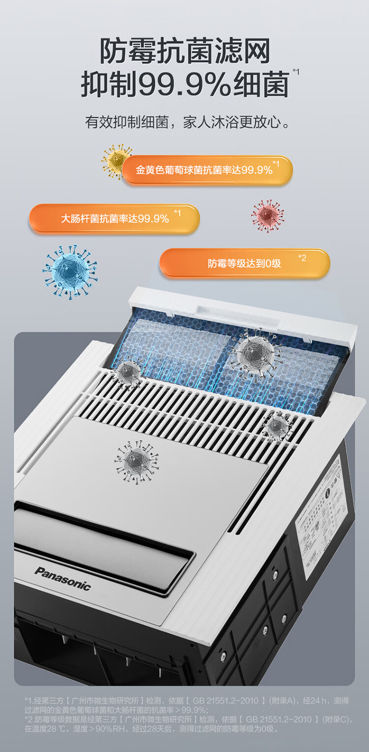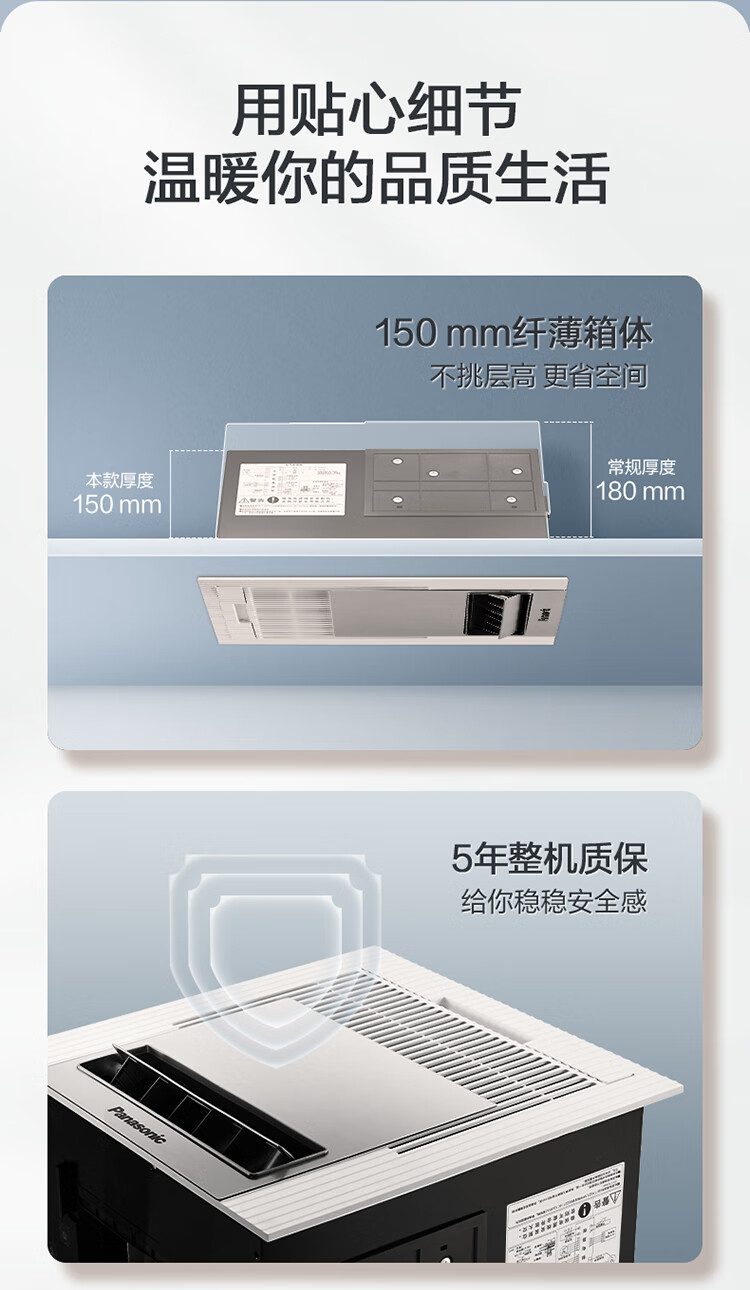 松下(Panasonic)风暖浴霸 暖风照明排气一体智能浴室暖风机 吊顶式卫生间换气浴霸 2100W主推速暖款-RB20Y1
