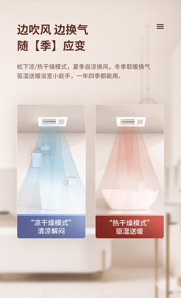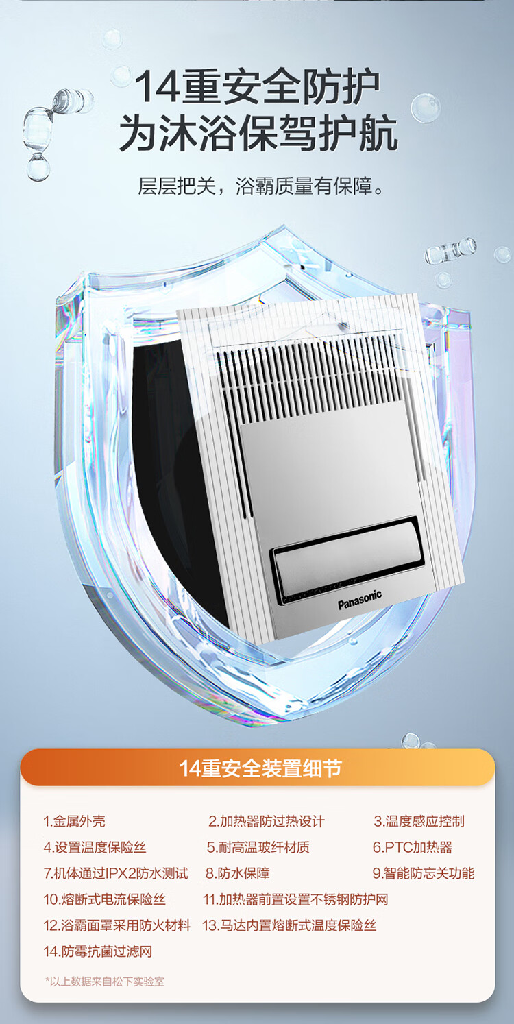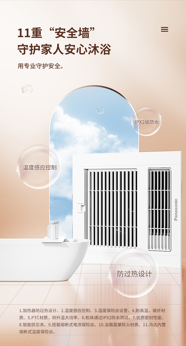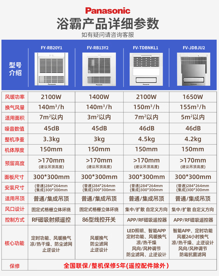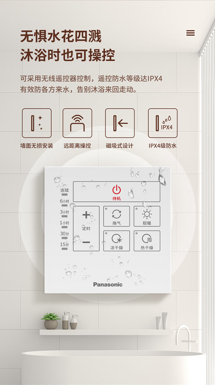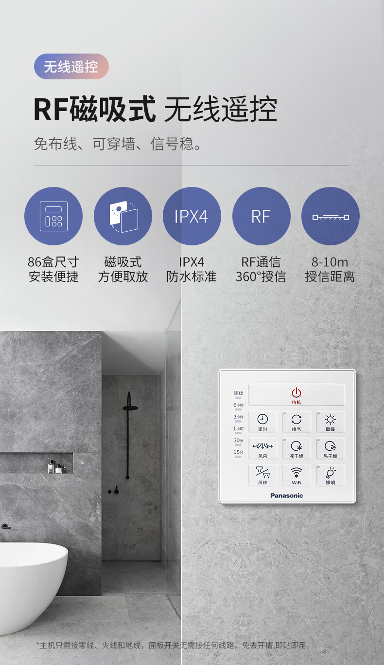 松下(Panasonic)风暖浴霸 暖风照明排气一体智能浴室暖风机 吊顶式卫生间换气浴霸 2100W主推速暖款-RB20Y1