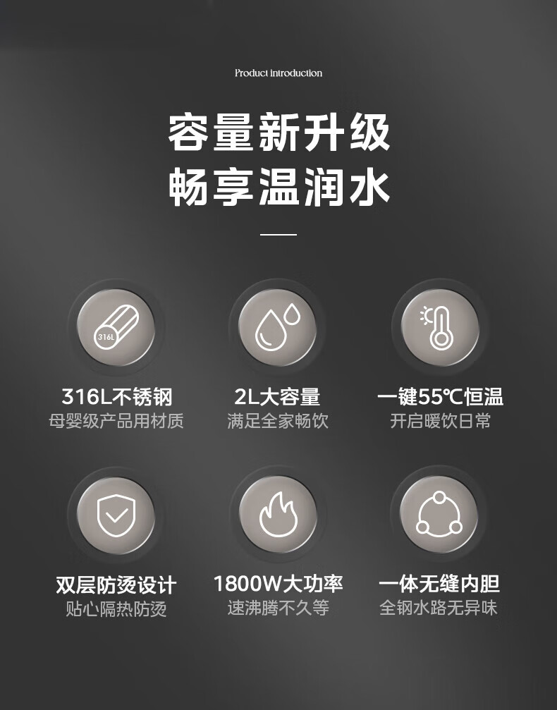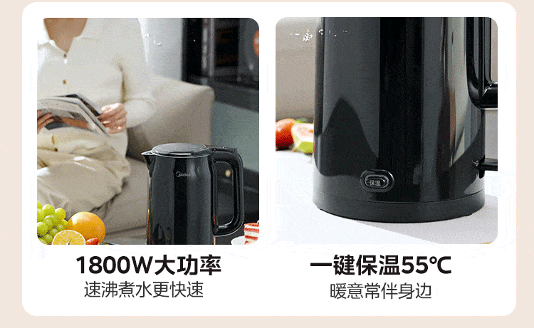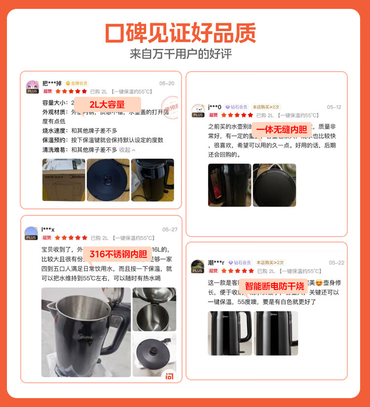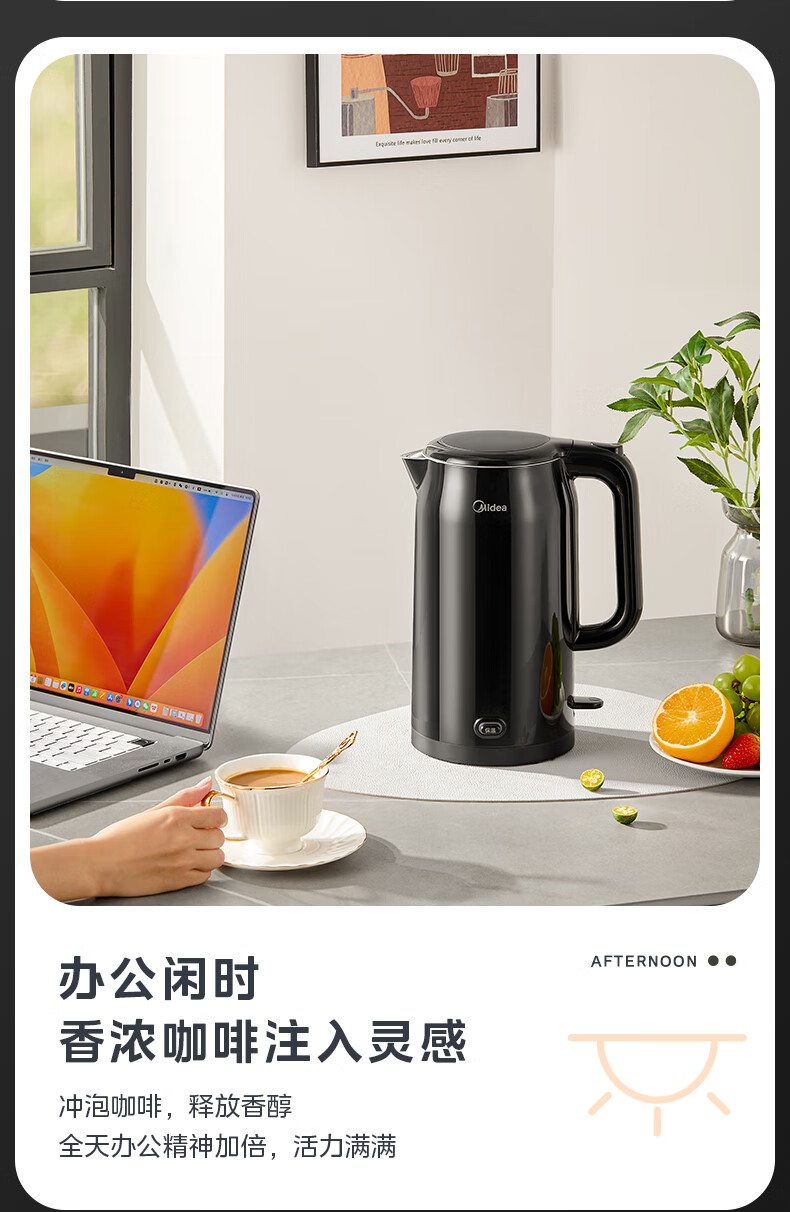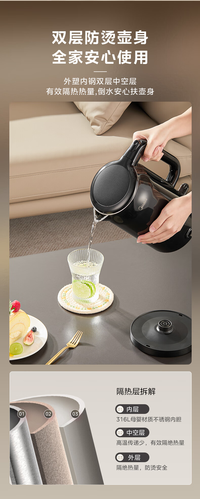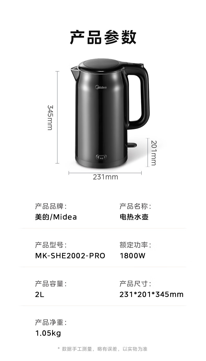 美的(Midea)电水壶电热水壶烧水壶自动断电保温一体 316L不锈钢2L大容量开水壶恒温壶MK-SHE2002-PRO