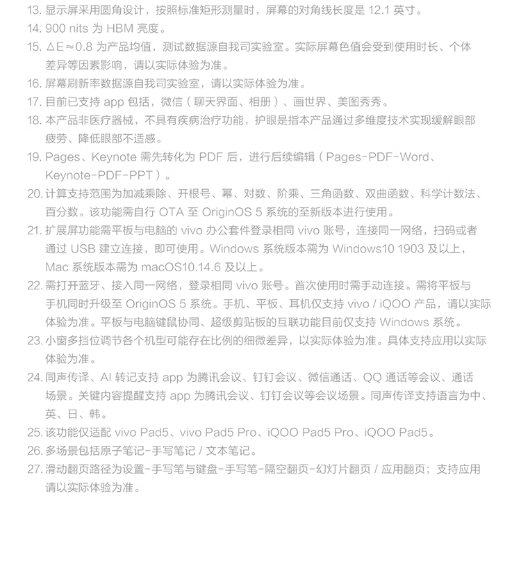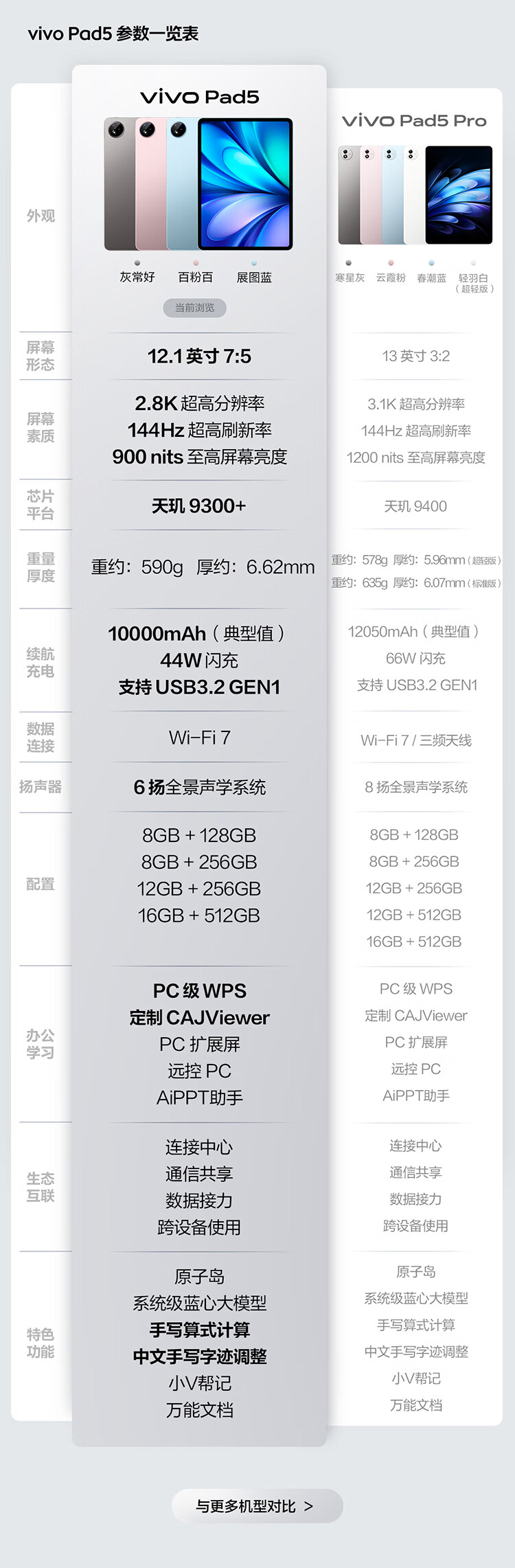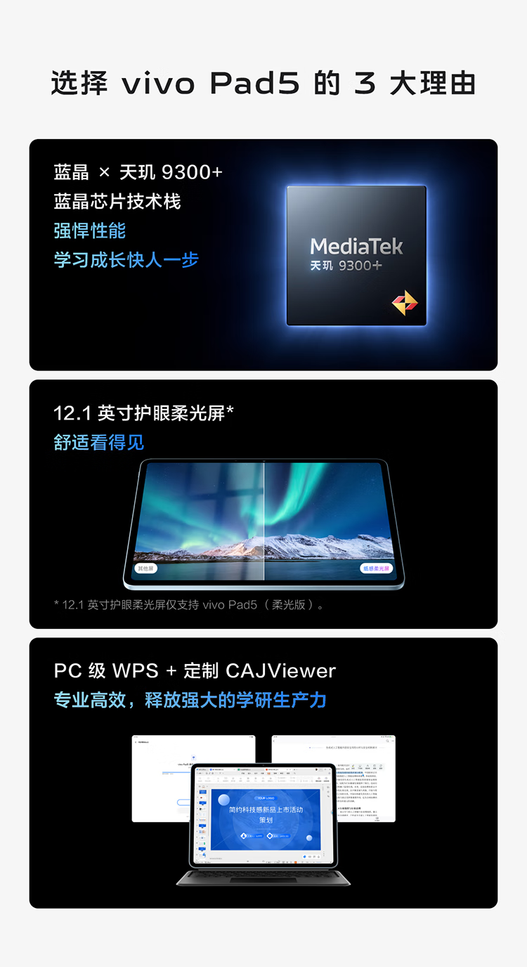vivo Pad5 8GB+128GB 灰常好 国家补贴【12.1英寸护眼大屏推荐】蓝晶×天玑9300+ 平板电脑