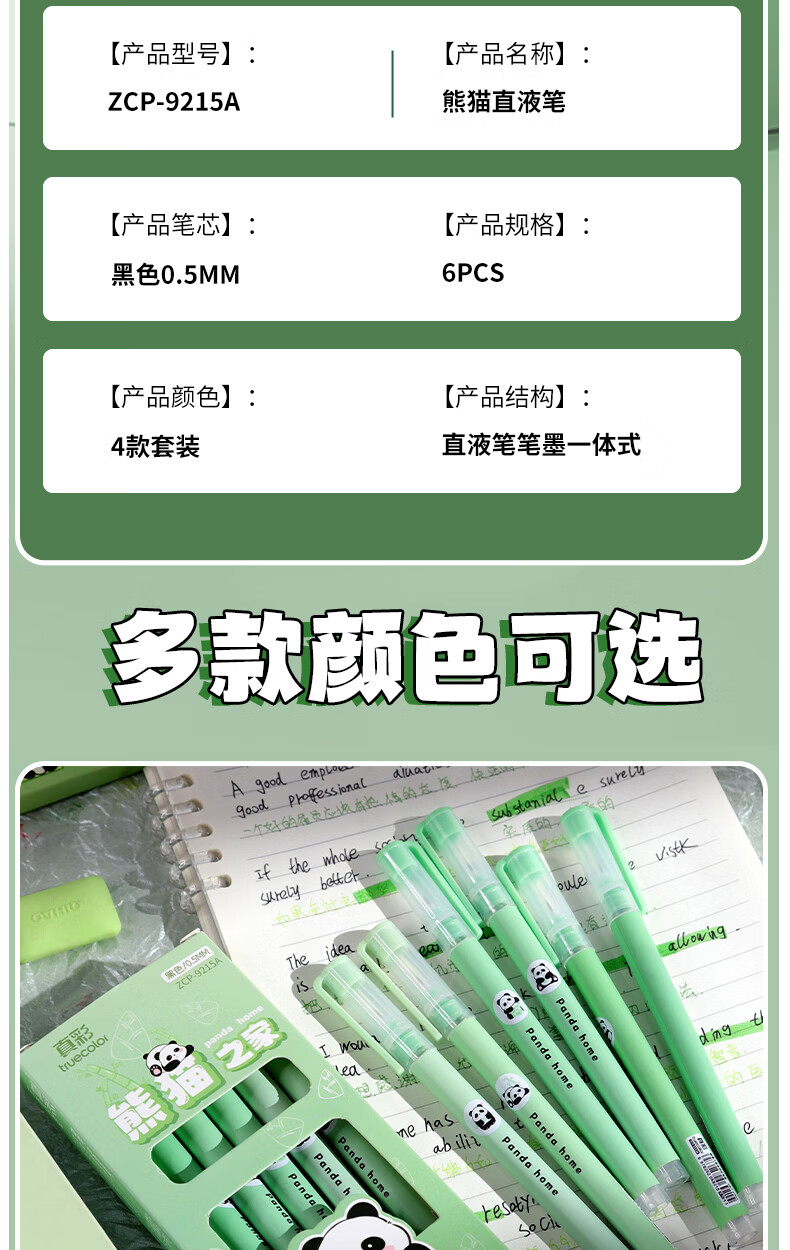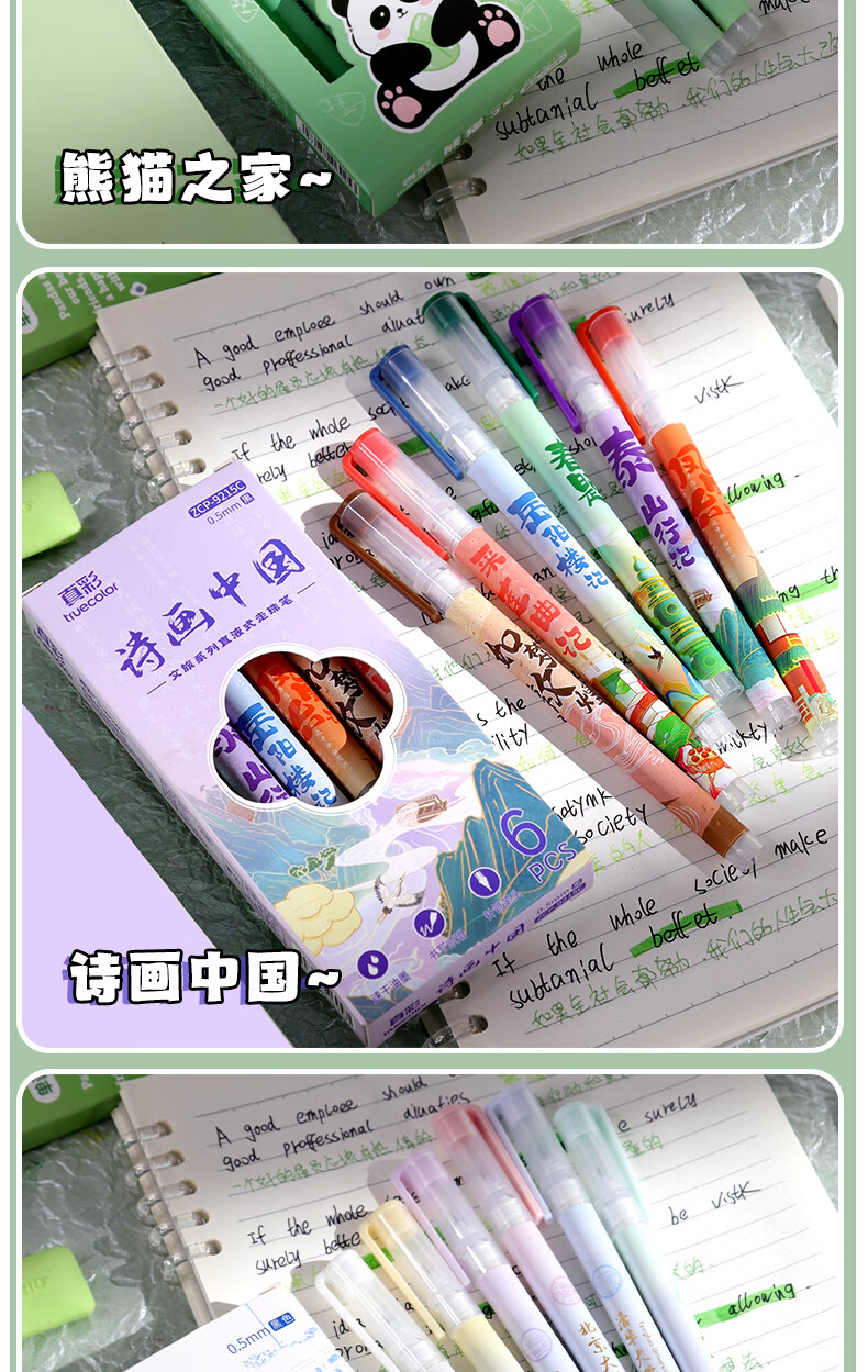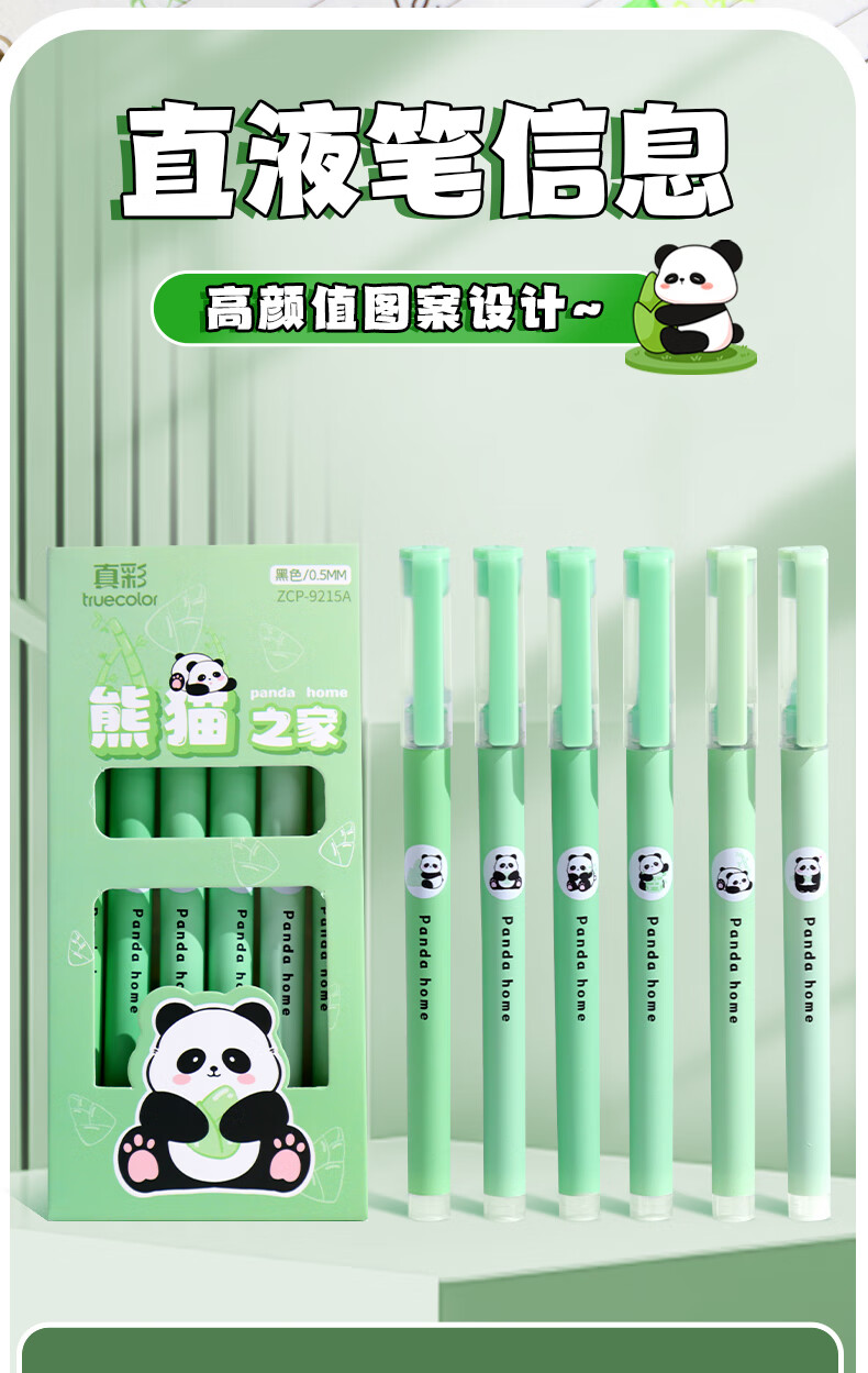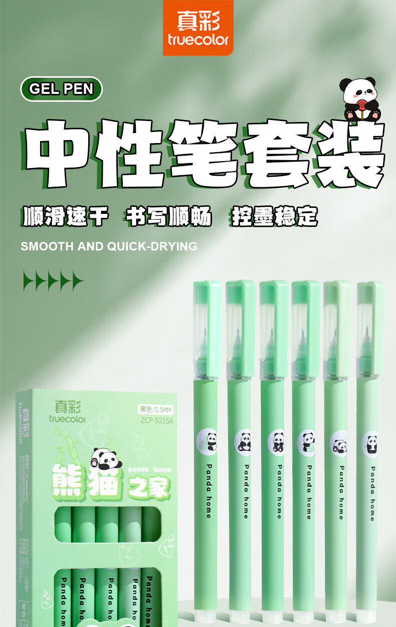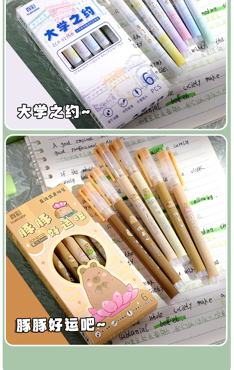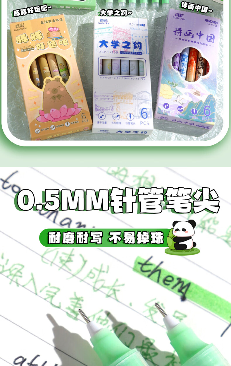真彩(TRUECOLOR)直液式走珠笔中性笔刷题签字笔小学生用高颜值考试速干顺滑针管头黑色水笔热门商品 6支/盒9215C