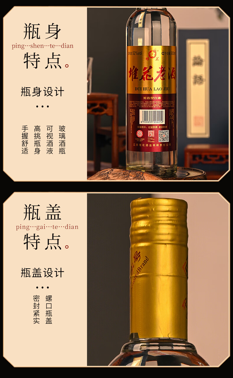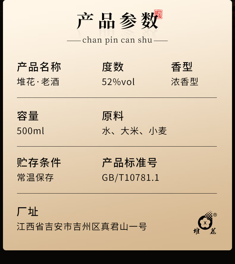 堆花 老酒 浓香型白酒 52度 500ml 单瓶 收藏送礼