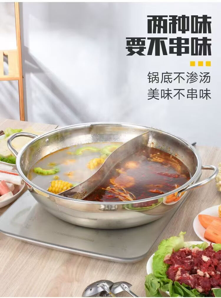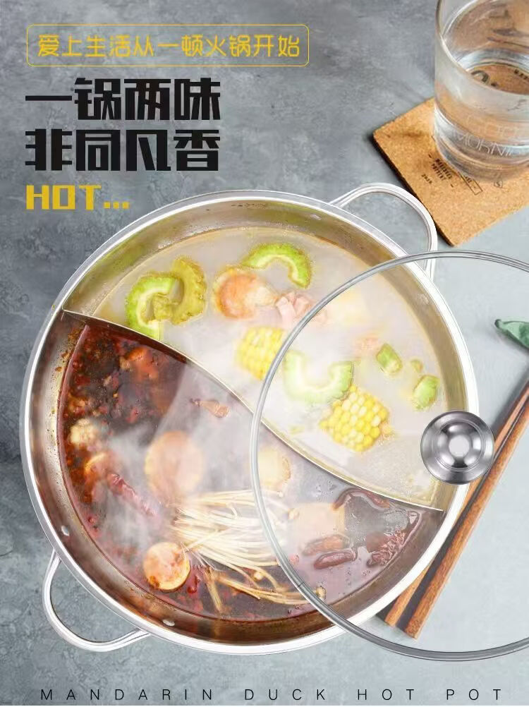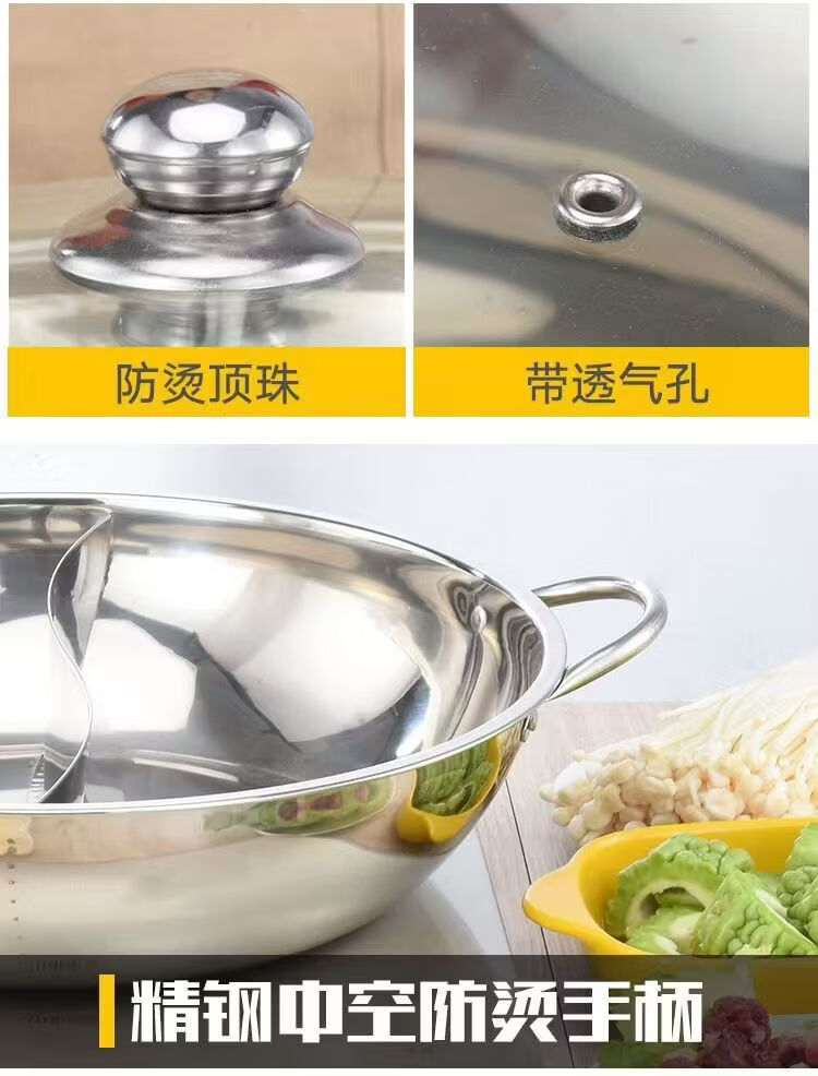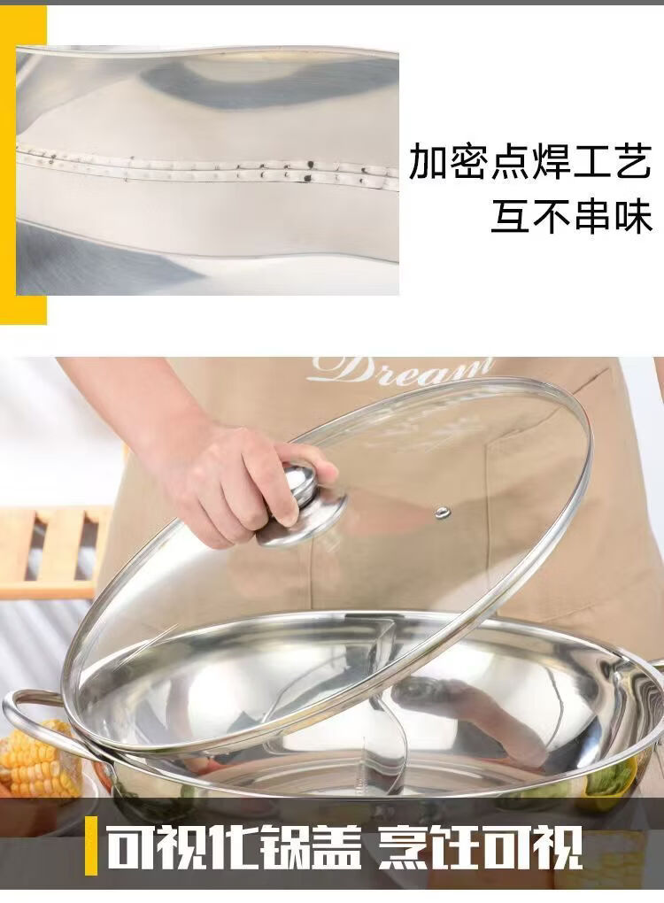 咏夏【抢】特厚一体鸳鸯锅电磁炉家用火锅盆带盖食品不锈钢升级款 【带透视盖】双味36cm+约6-10人聚会 0英寸