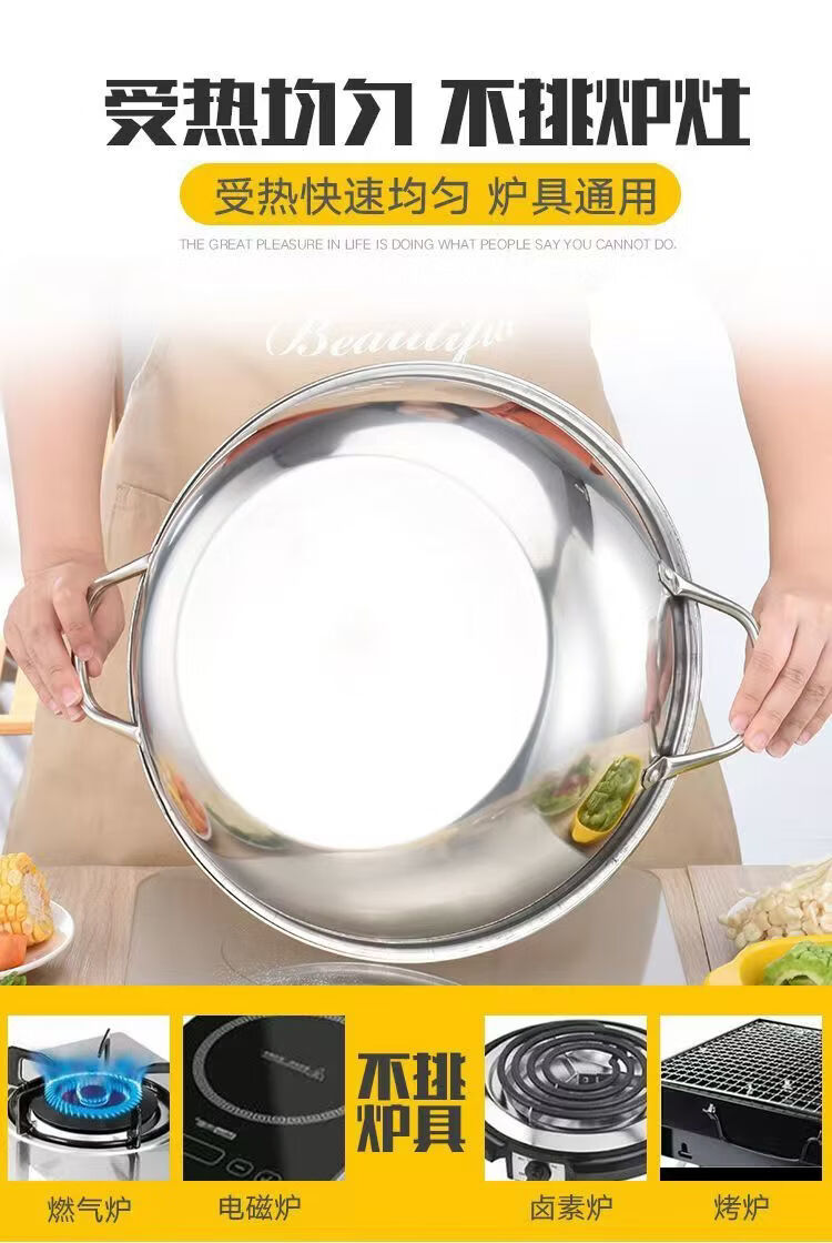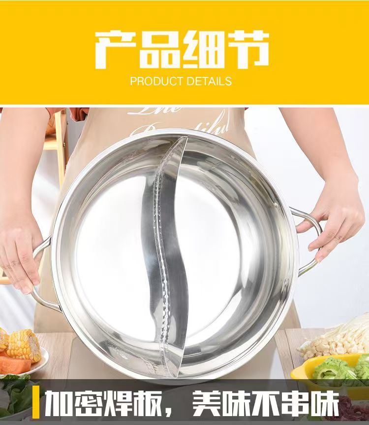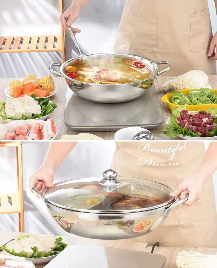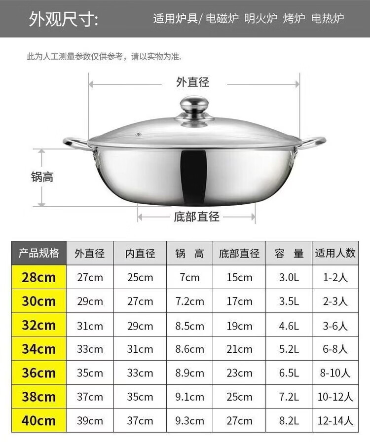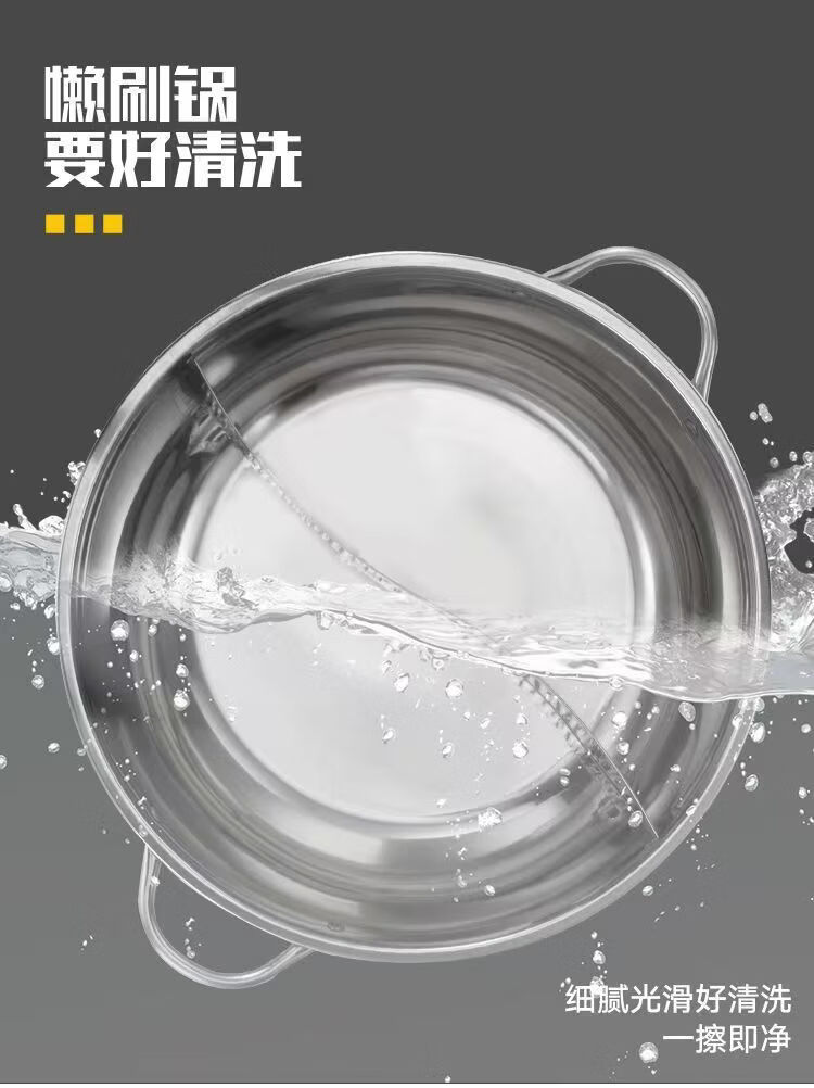 咏夏【抢】特厚一体鸳鸯锅电磁炉家用火锅盆带盖食品不锈钢升级款 【带透视盖】双味36cm+约6-10人聚会 0英寸