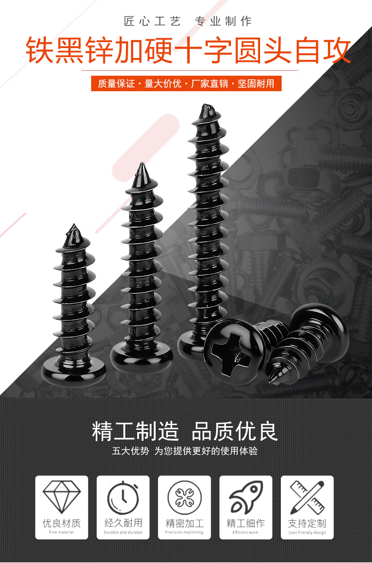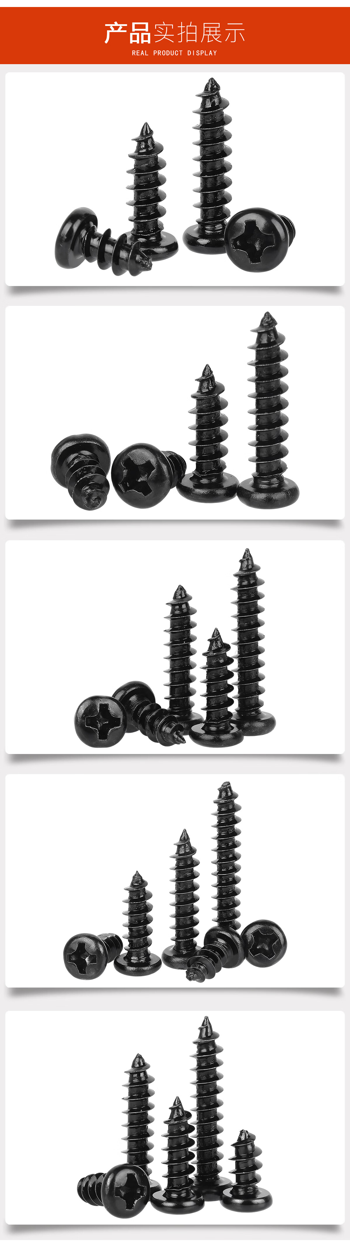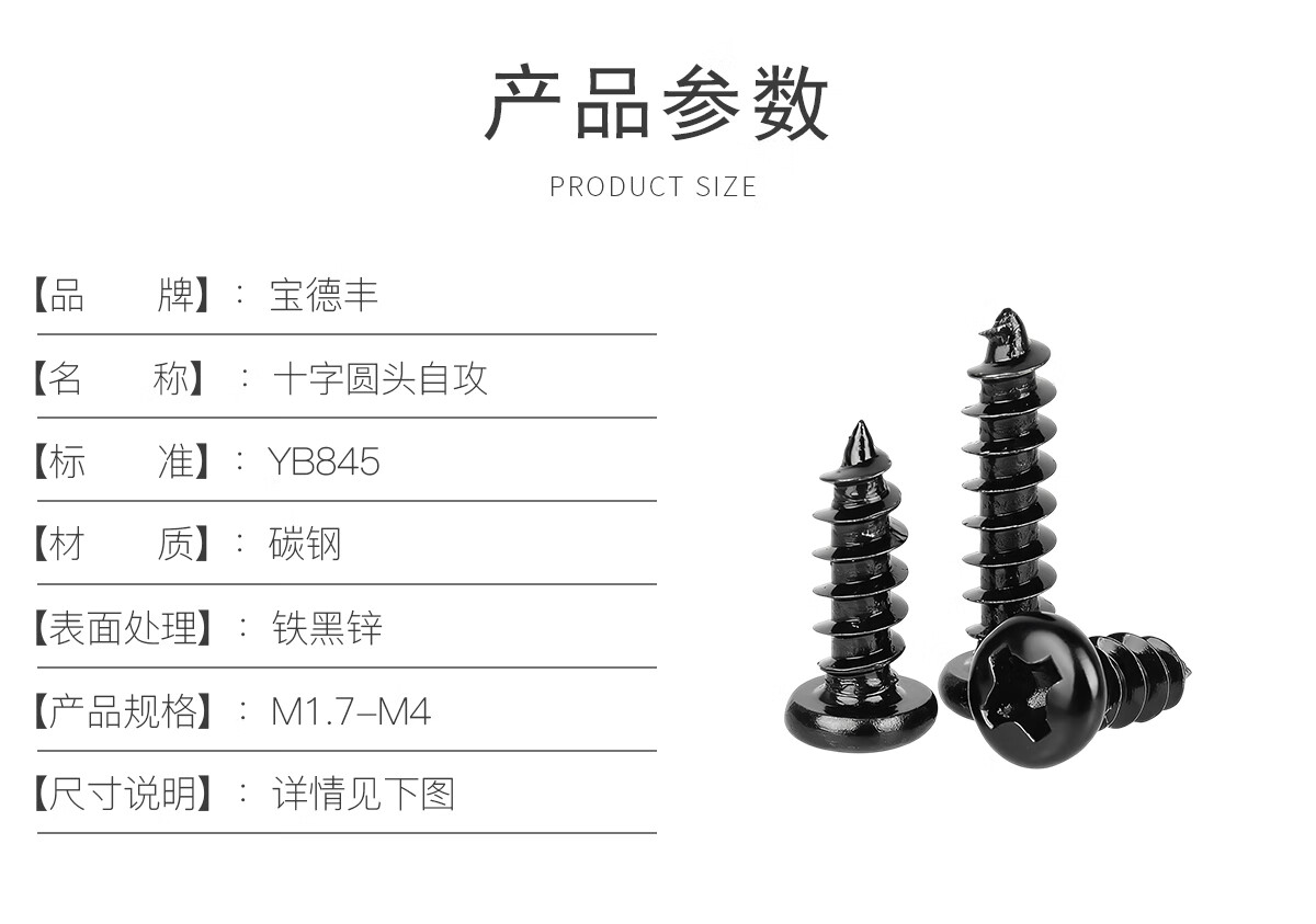 宝德丰PA 加硬铁黑锌发黑色十字盘头自攻小螺丝电子圆头螺钉M1M2M3M4mm M1.7x4 头3.2[1000只]