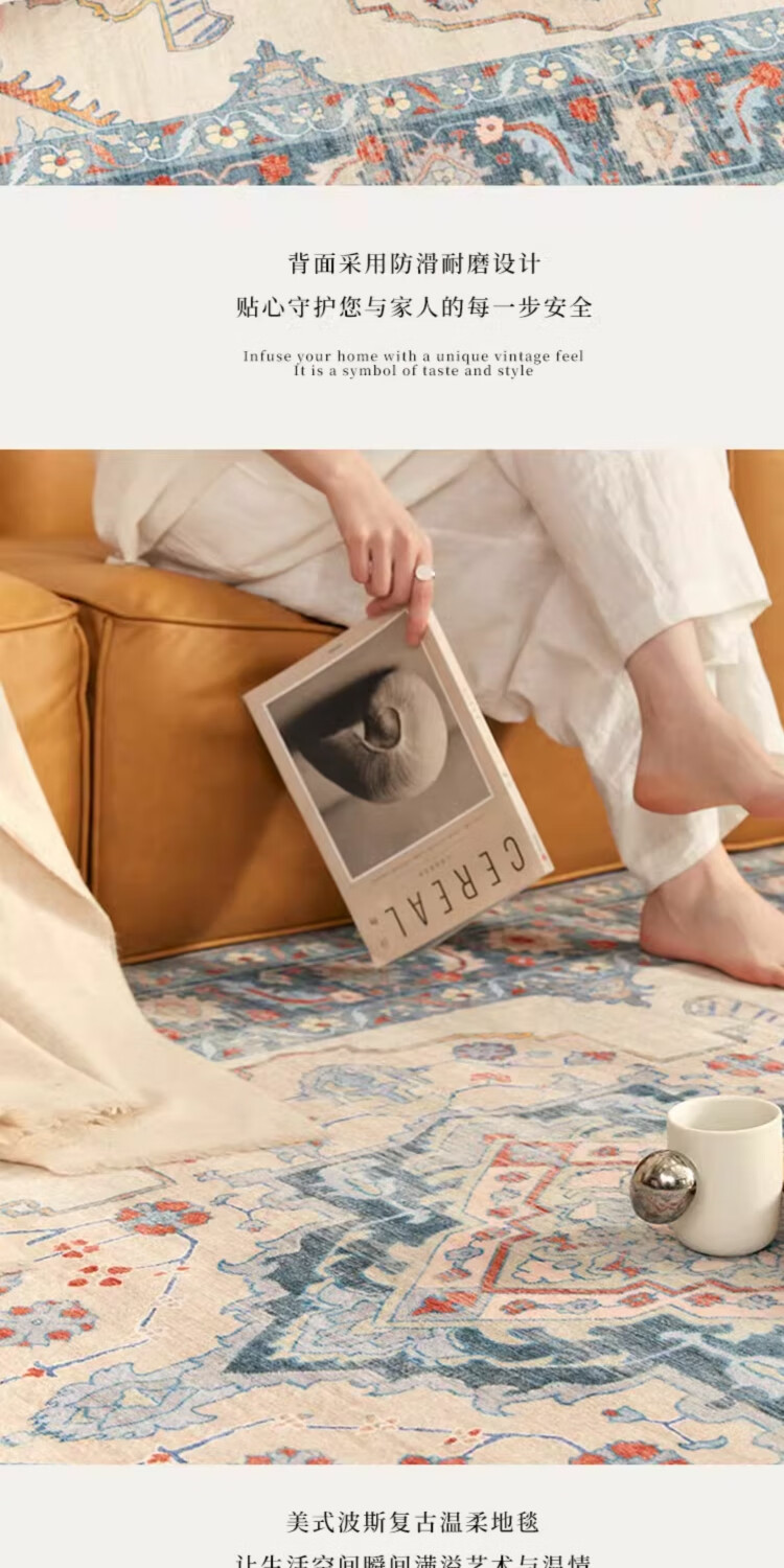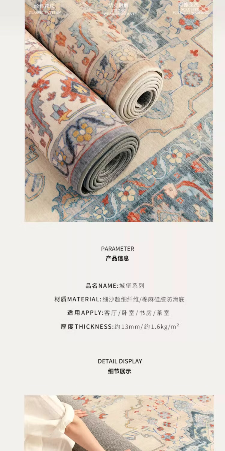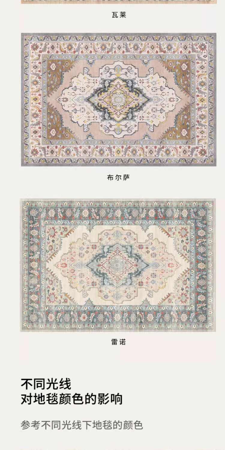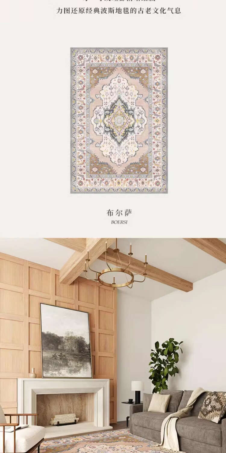 京华波斯风地毯客厅高级复古小碎花卧室床边床尾加厚天津地垫可定制 布尔萨 140cm*200cm 升级防水丝材质