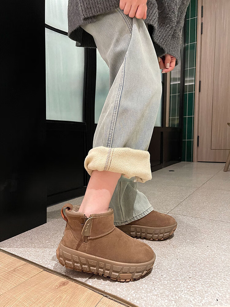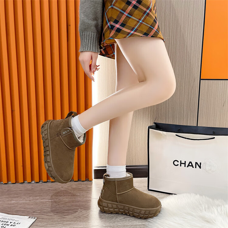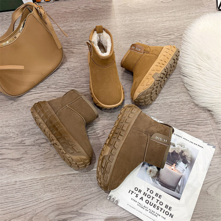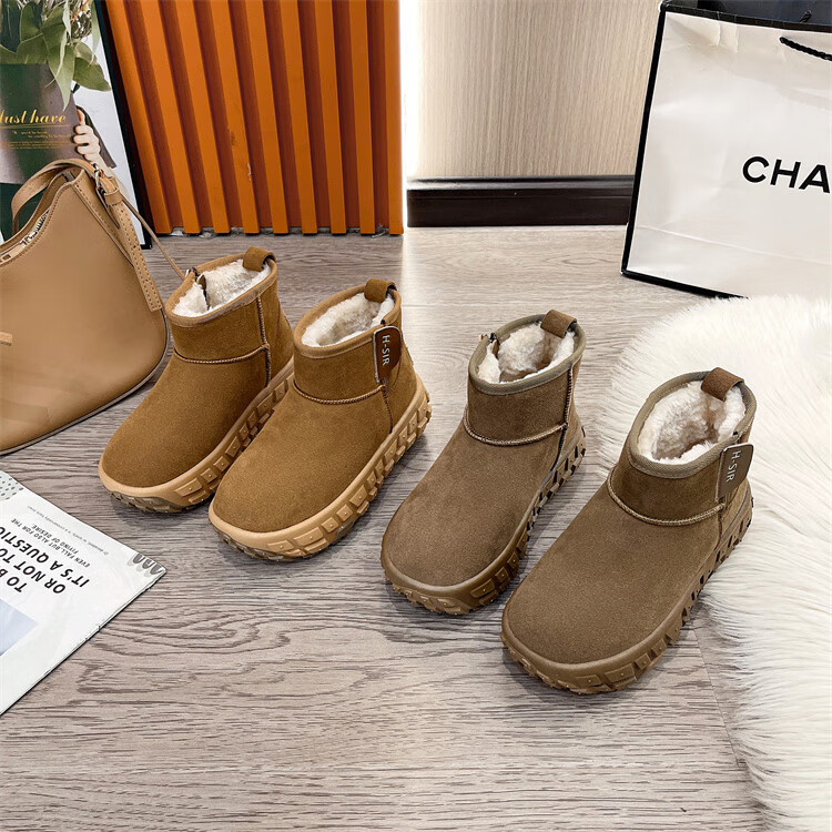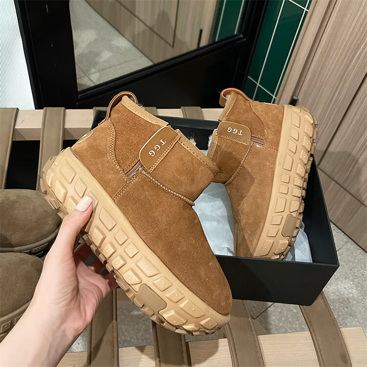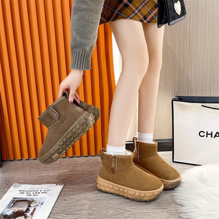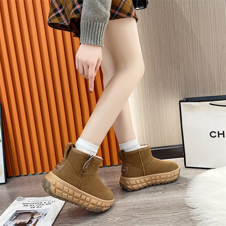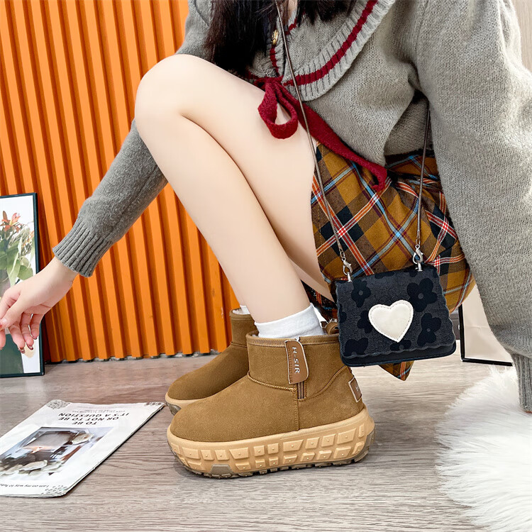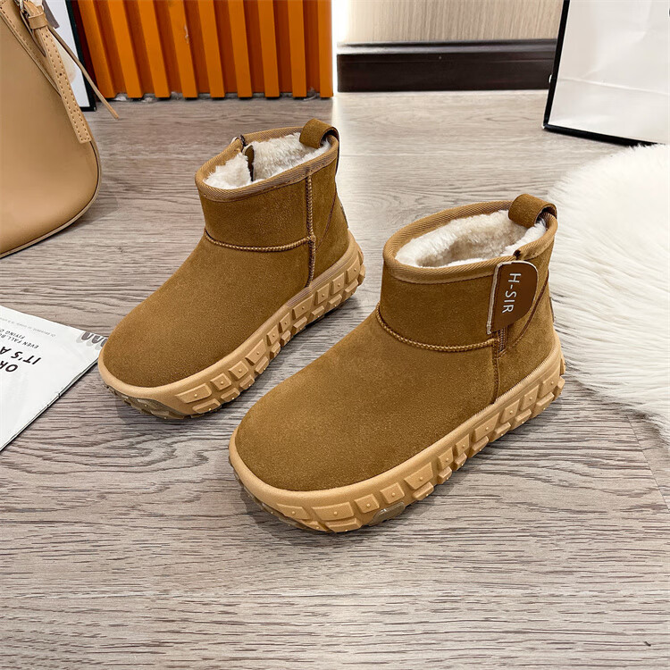 稻草人(MEXICAN)加绒加厚榴莲轮胎底雪地靴女2025冬季新款厚底防滑东北面包棉鞋子 黄色【精品升级版】店长推荐. 40