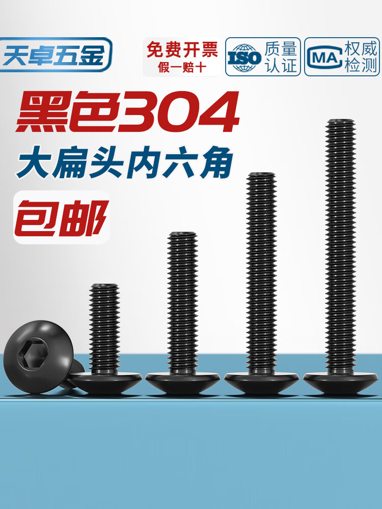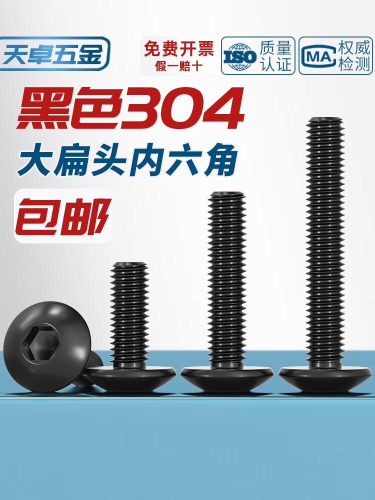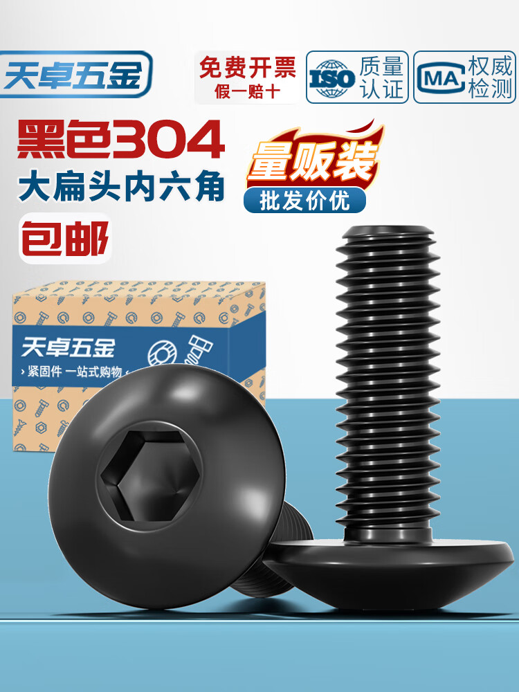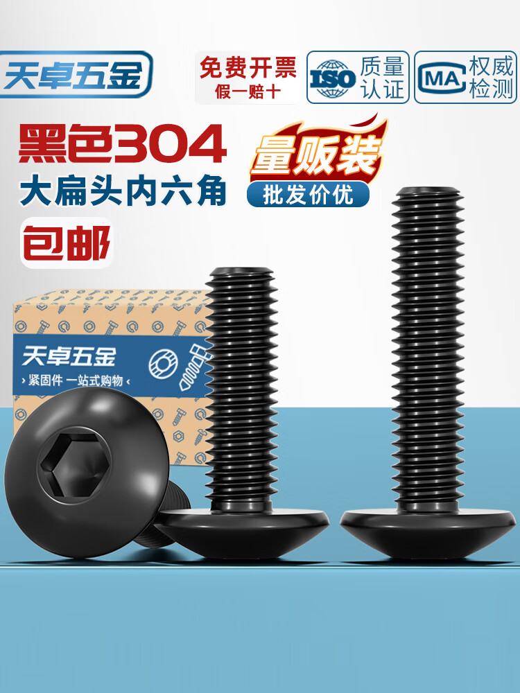 天卓五金黑色304不锈钢大伞头内六角螺丝 大扁头螺钉蘑菇头圆头螺栓M2-M8 ---以下为【304黑色】---