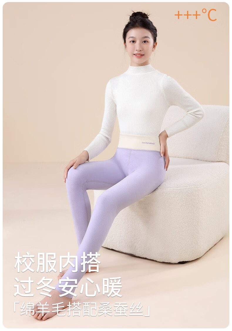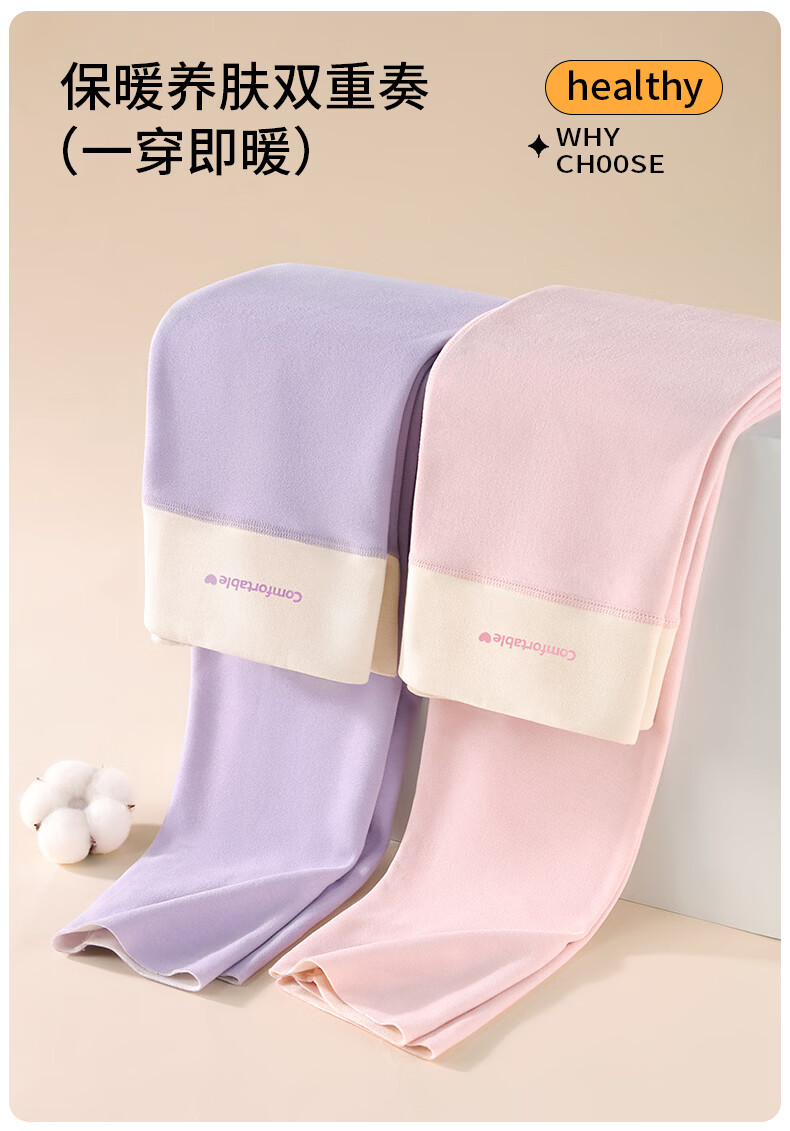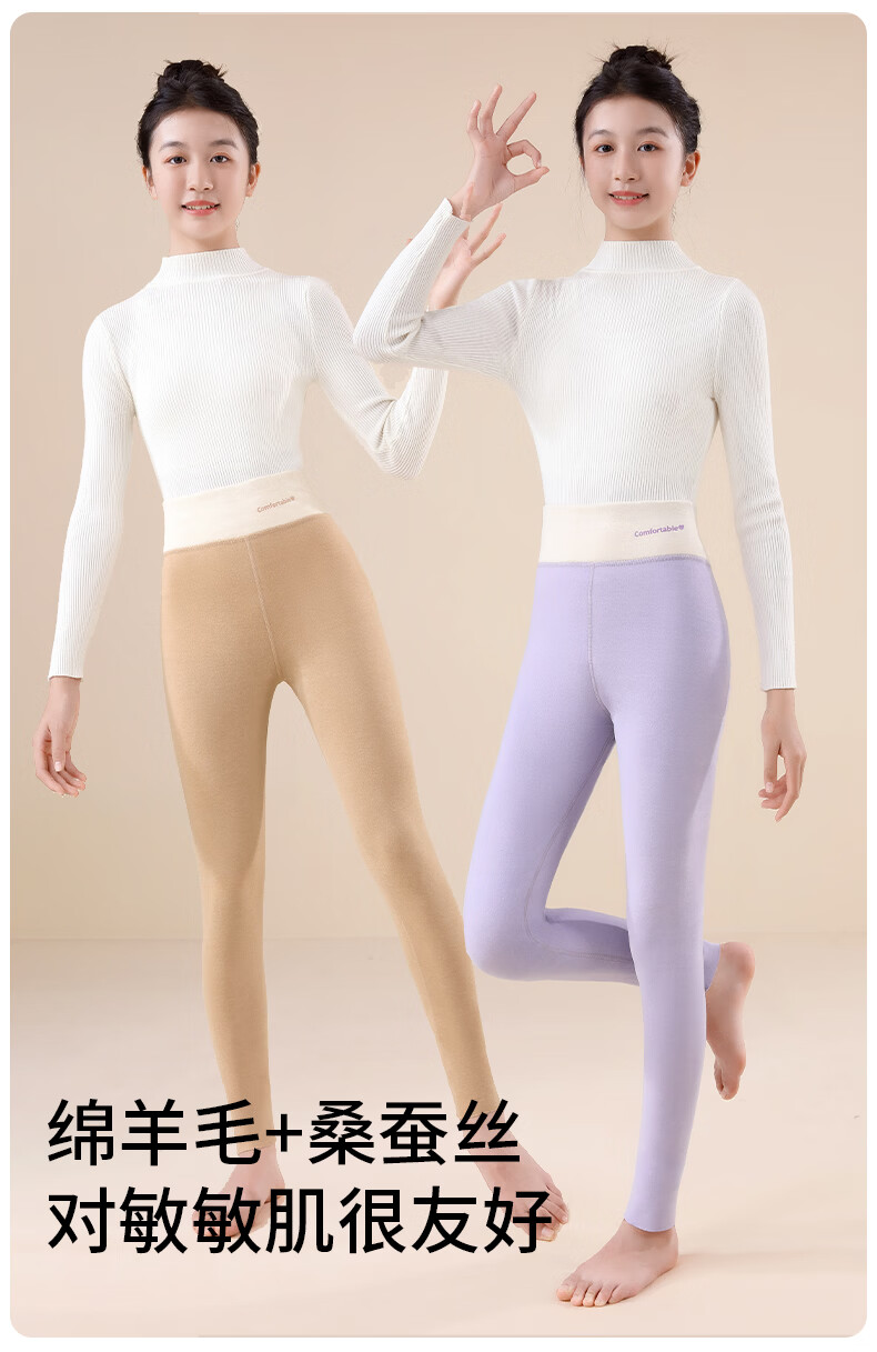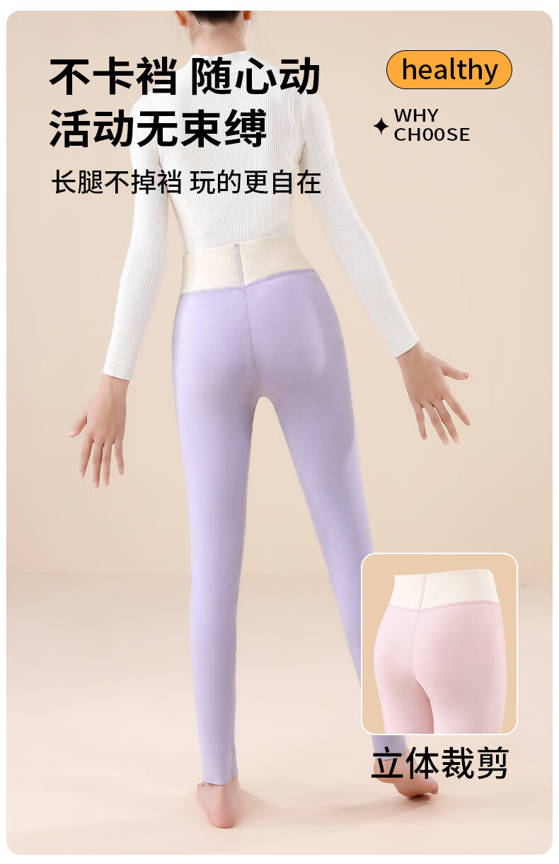 真维斯(Jeanswest)女士秋裤女儿童保暖裤羊毛发热双面细绒秋冬季少女生打底裤 粉色+紫色【少女保暖裤2件】 S 高130-140体重45-60斤