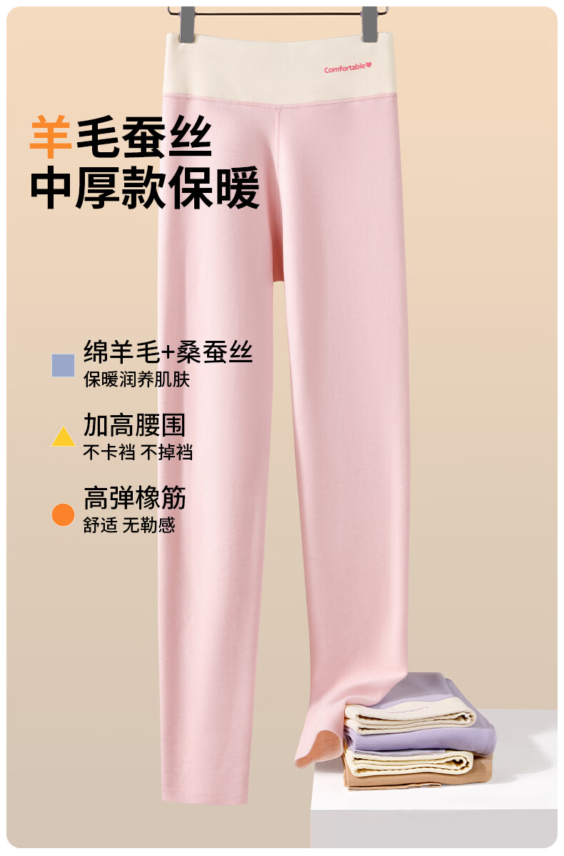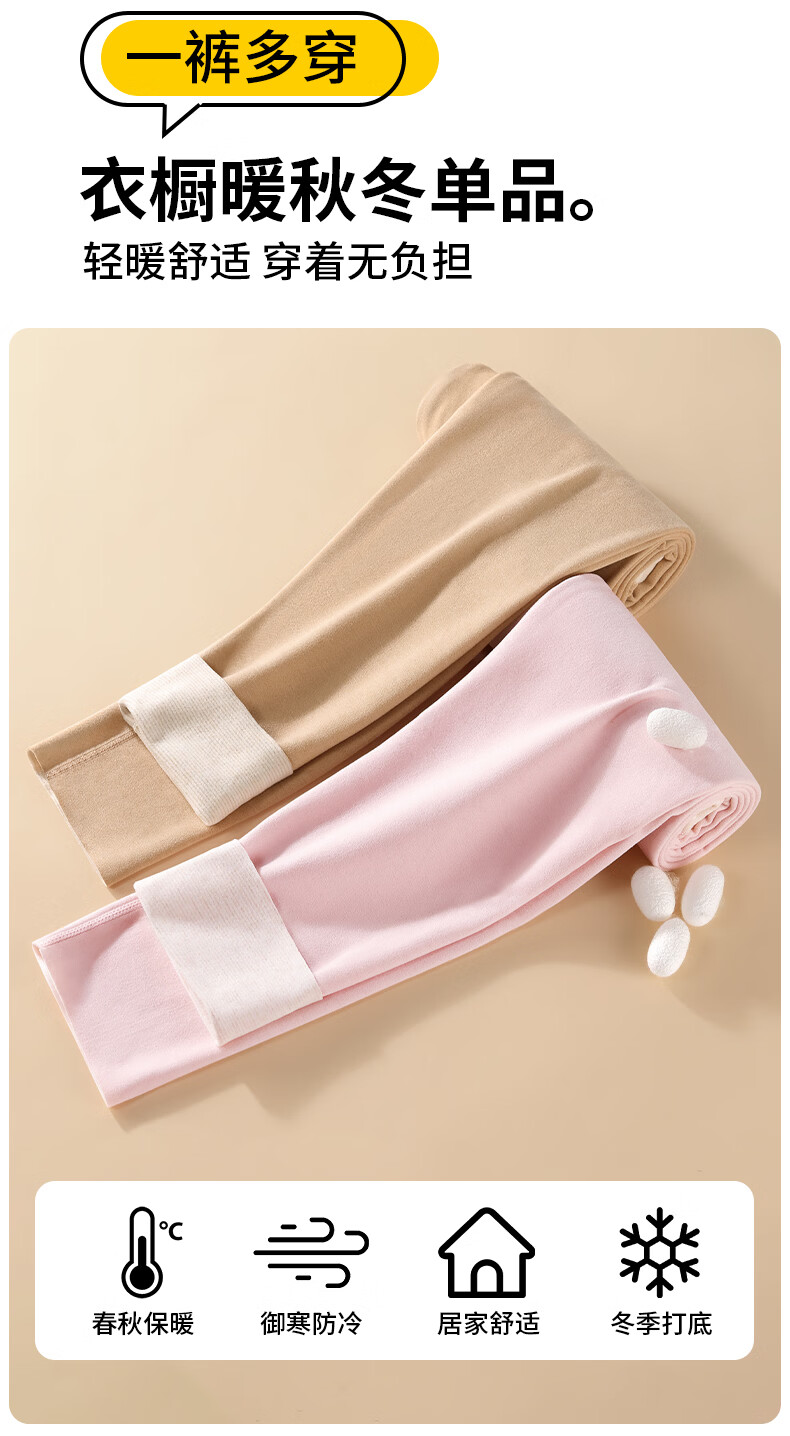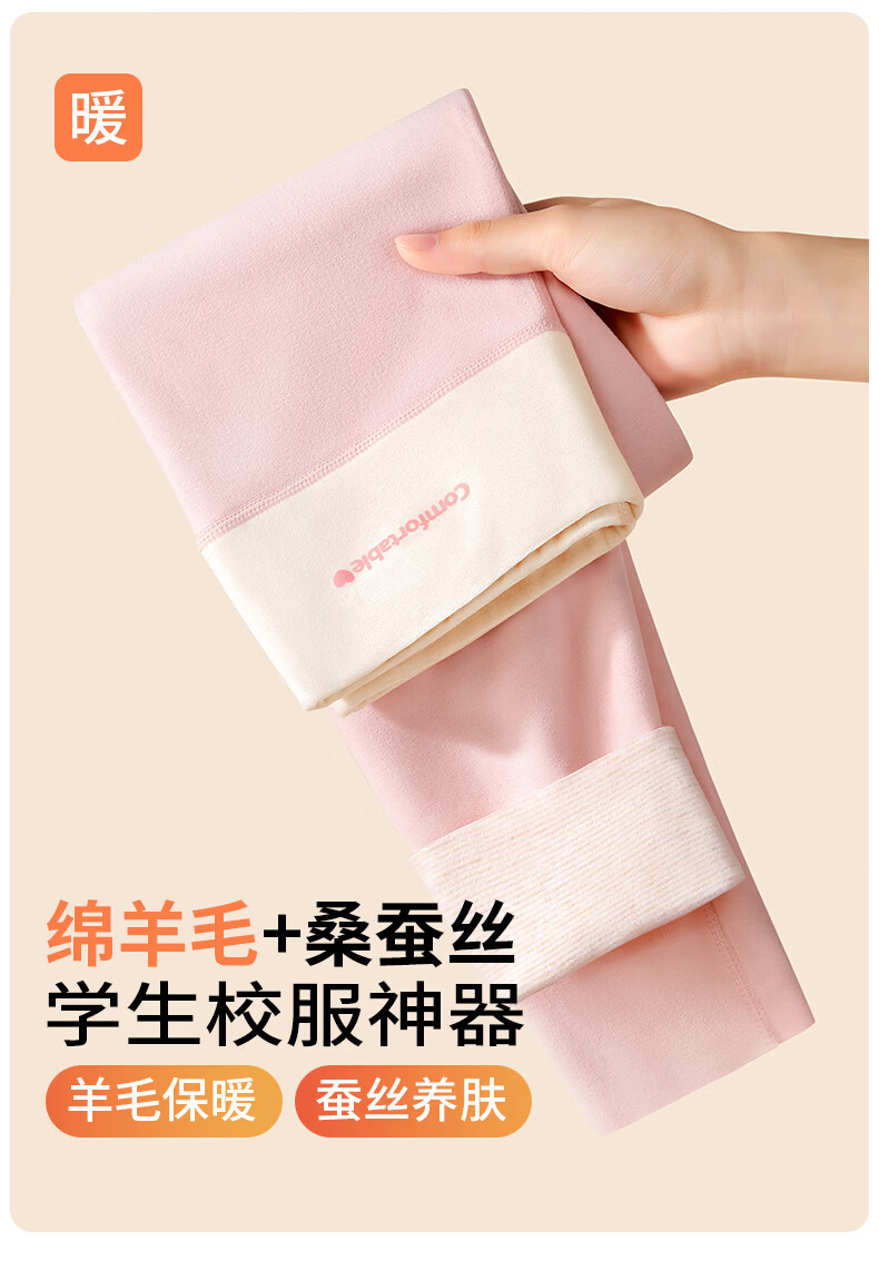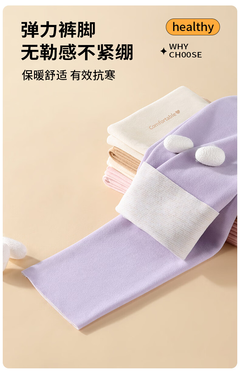真维斯(Jeanswest)女士秋裤女儿童保暖裤羊毛发热双面细绒秋冬季少女生打底裤 粉色+紫色【少女保暖裤2件】 S 高130-140体重45-60斤