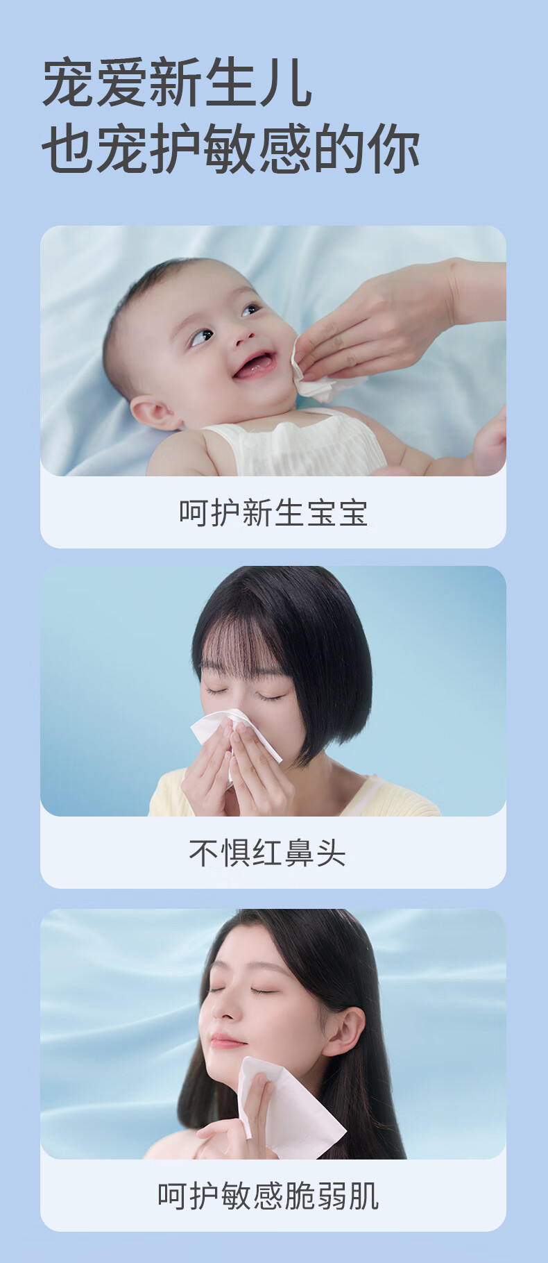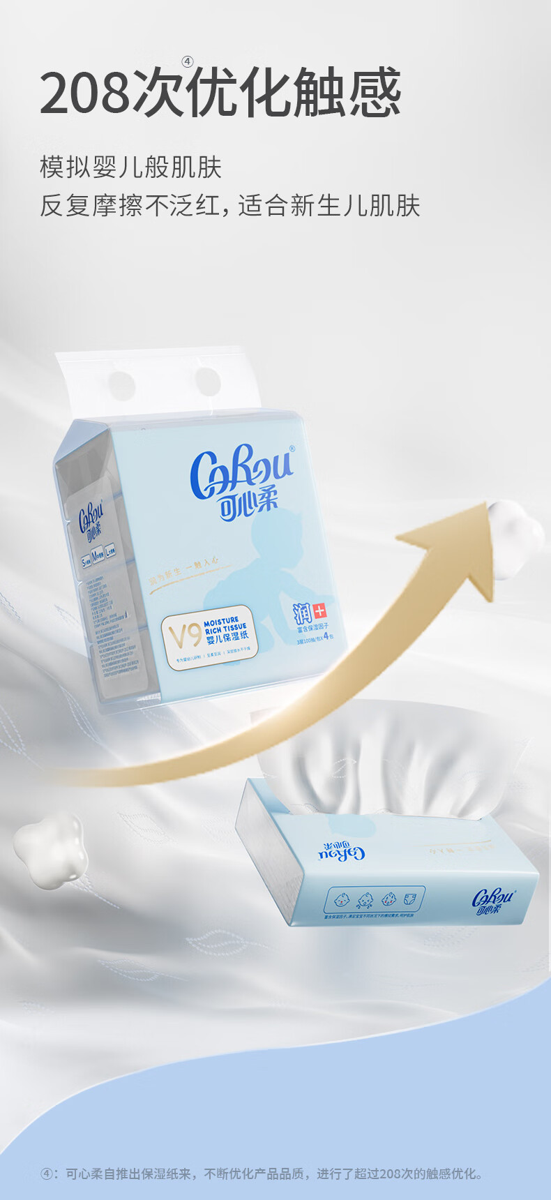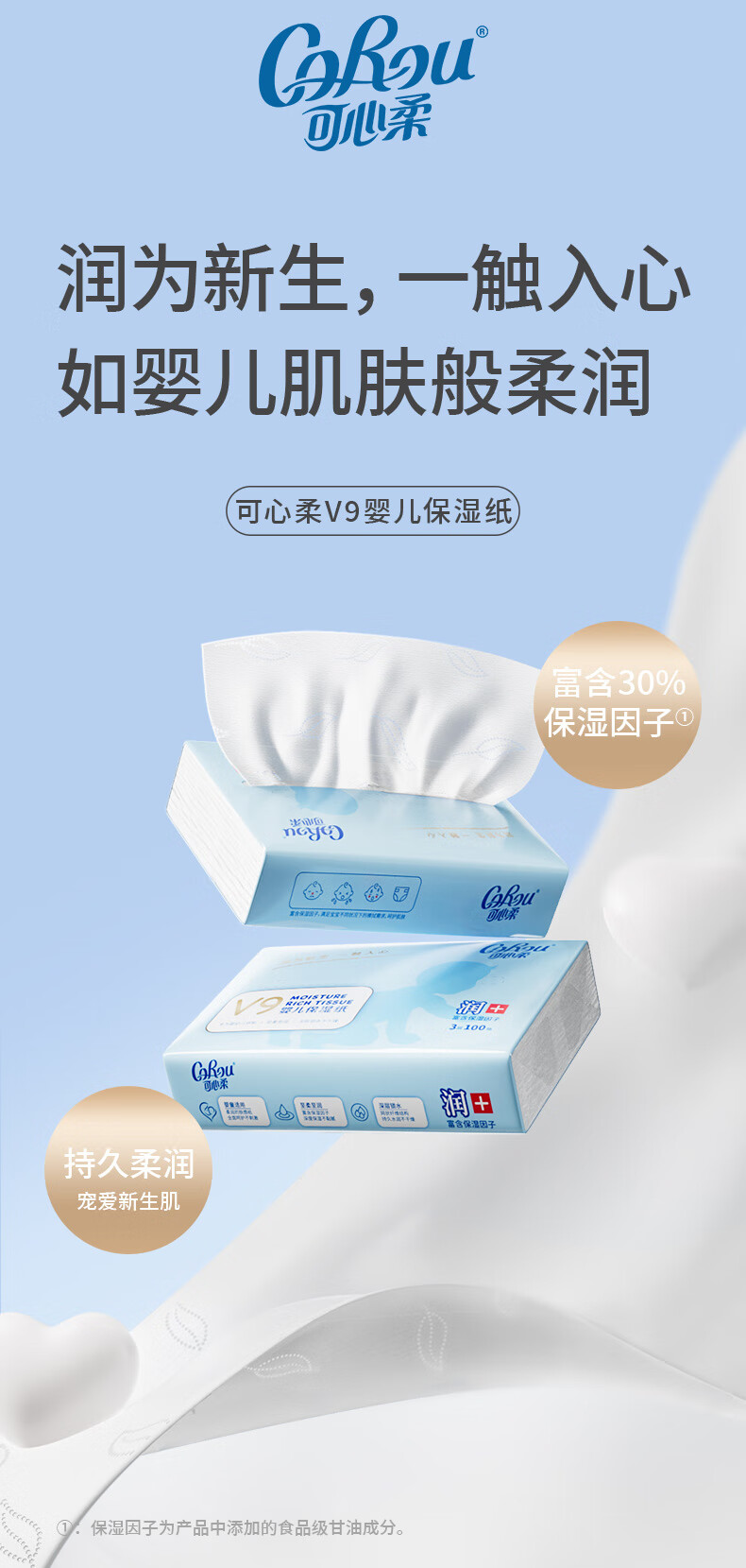 可心柔(COROU)婴儿抽纸 保湿纸 3层100抽*32包 加大M码乳霜纸 云柔巾 囤货装