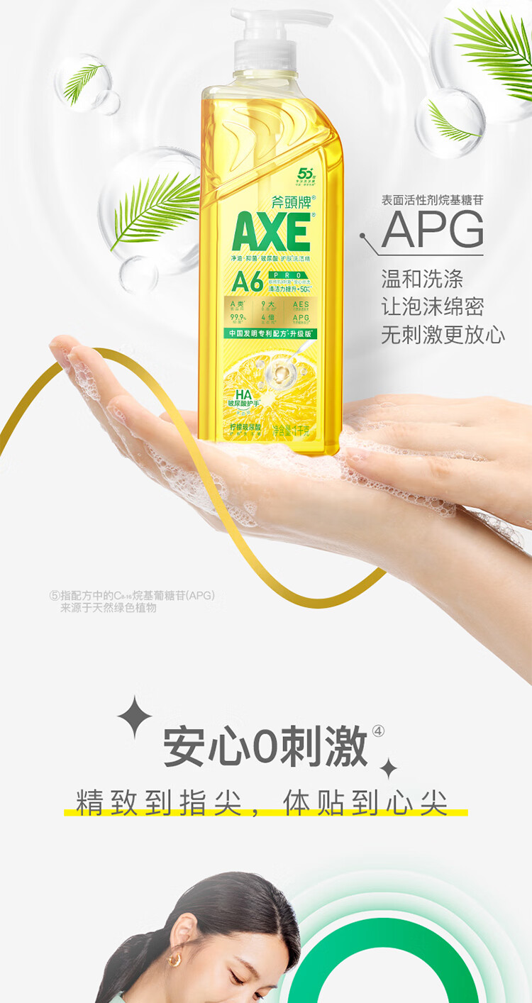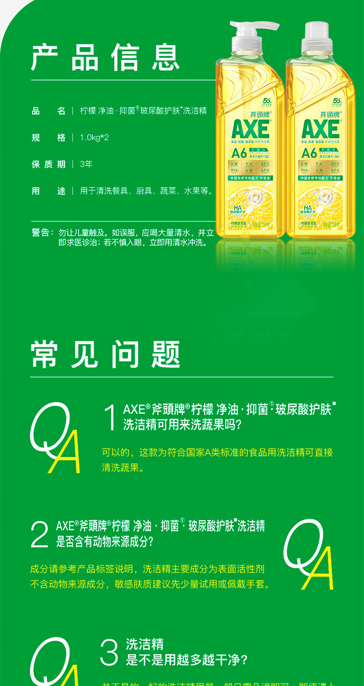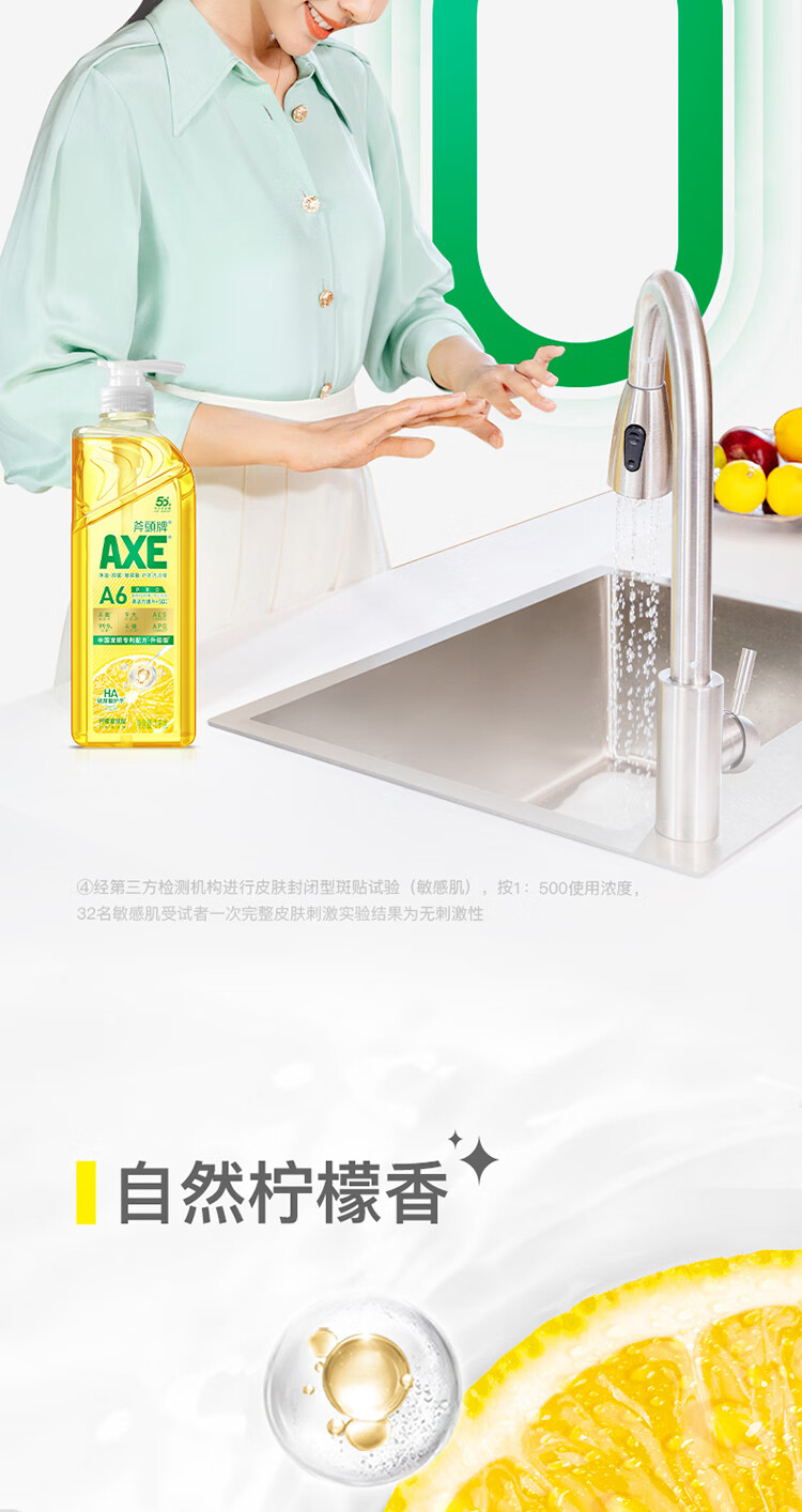 斧头牌(AXE)柠檬玻尿酸洗洁精1kg*2瓶果蔬安心洗清洁力+40%包装随机