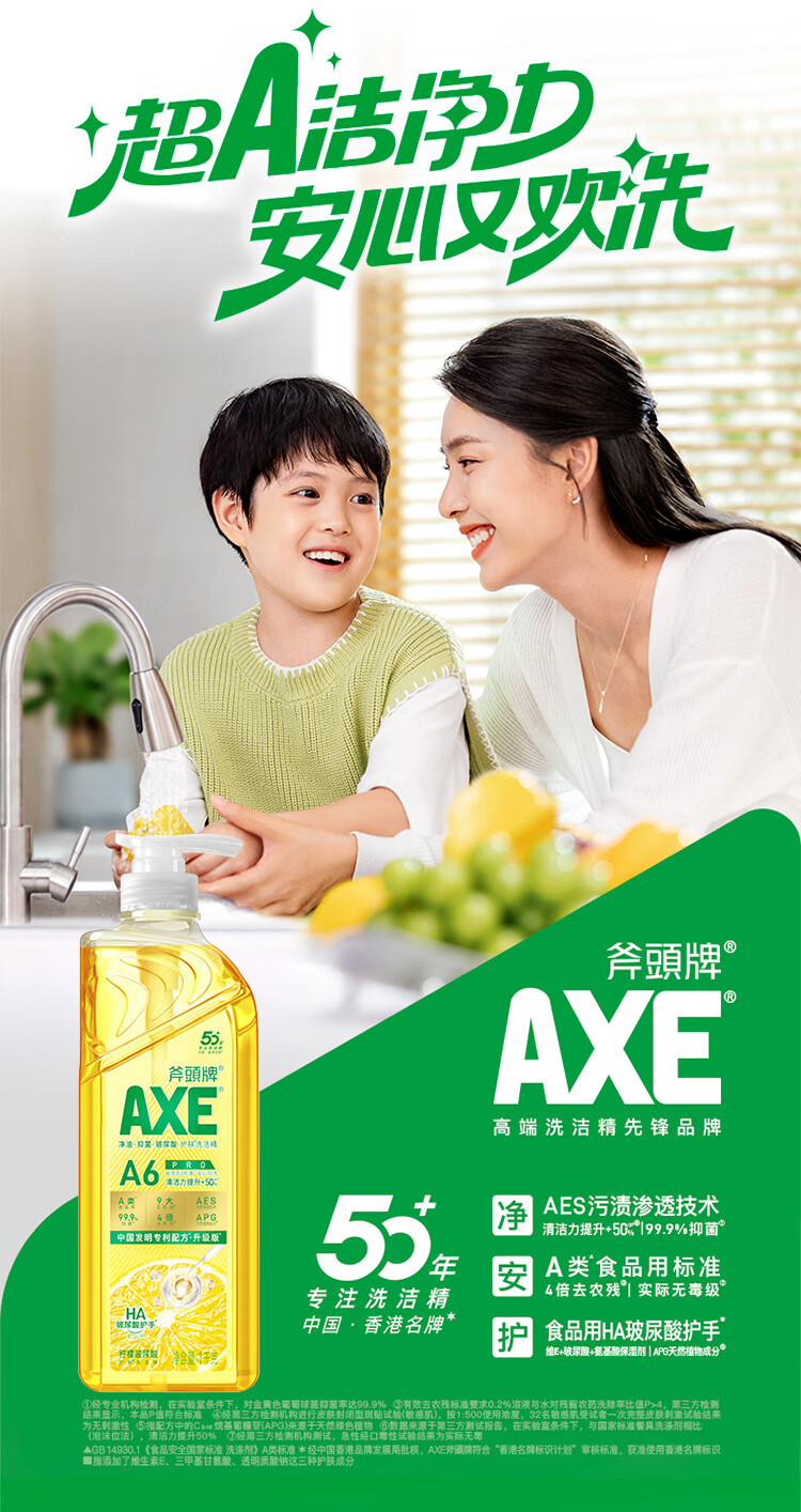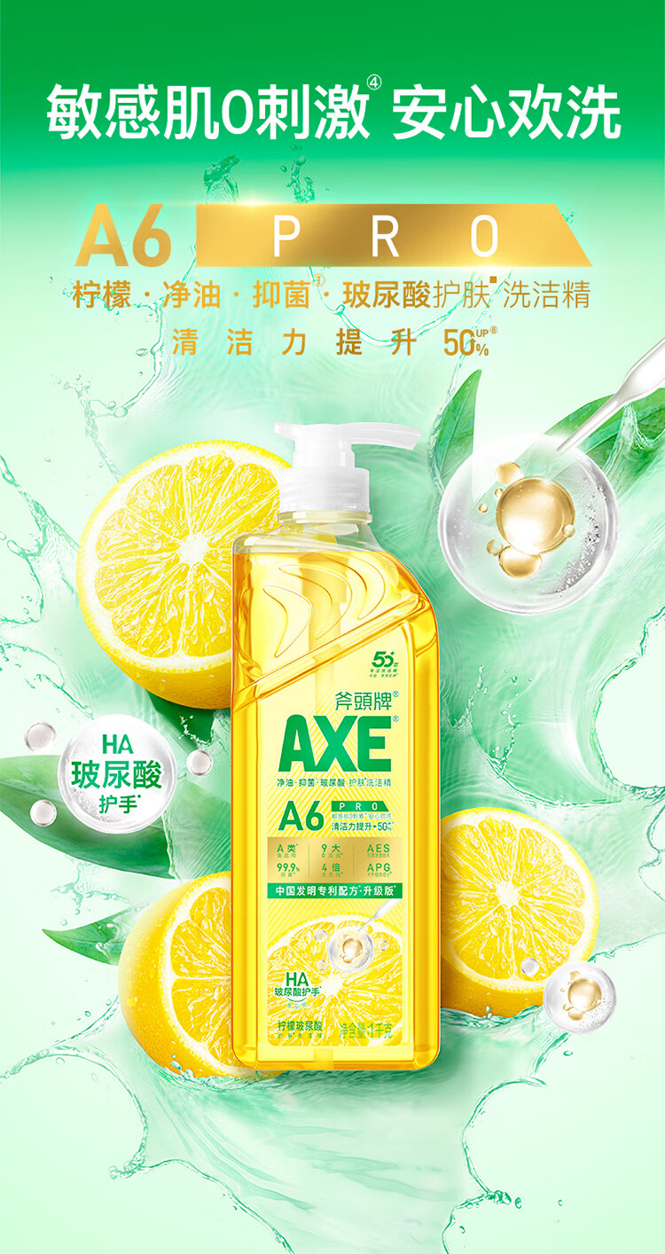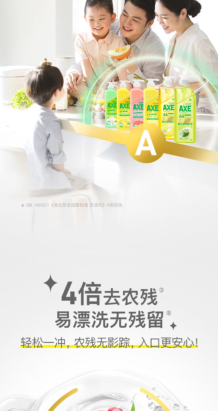 斧头牌(AXE)柠檬玻尿酸洗洁精1kg*2瓶果蔬安心洗清洁力+40%包装随机