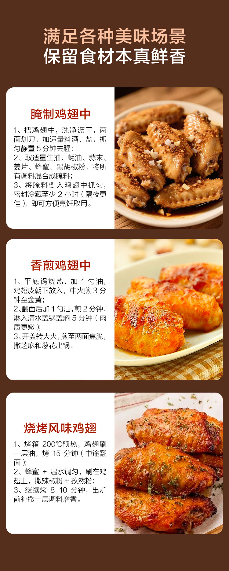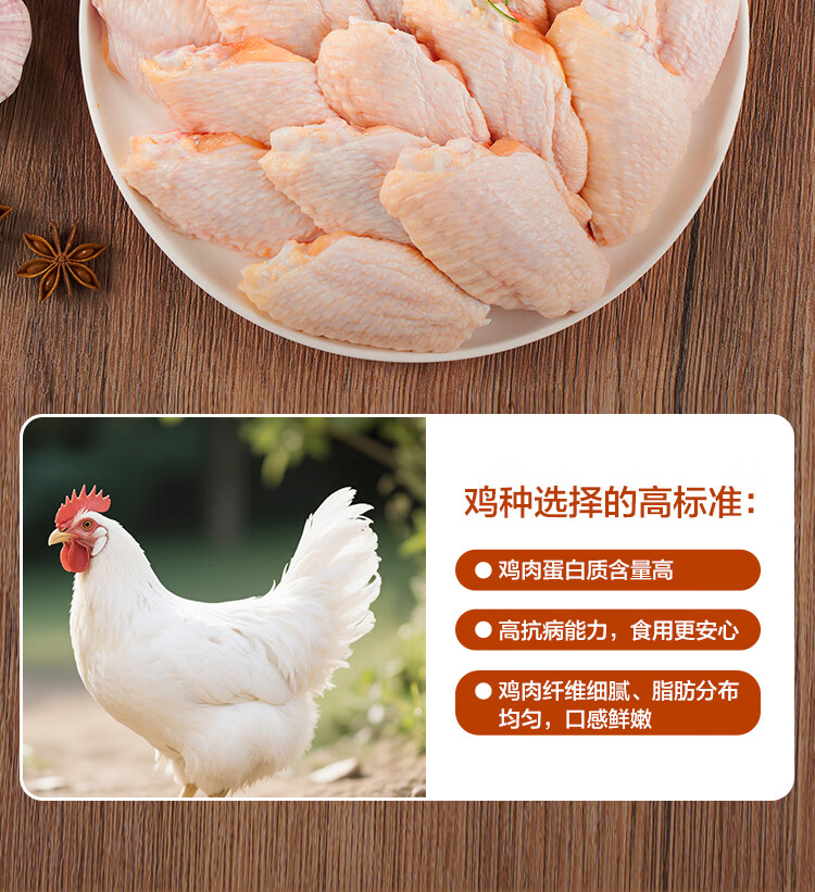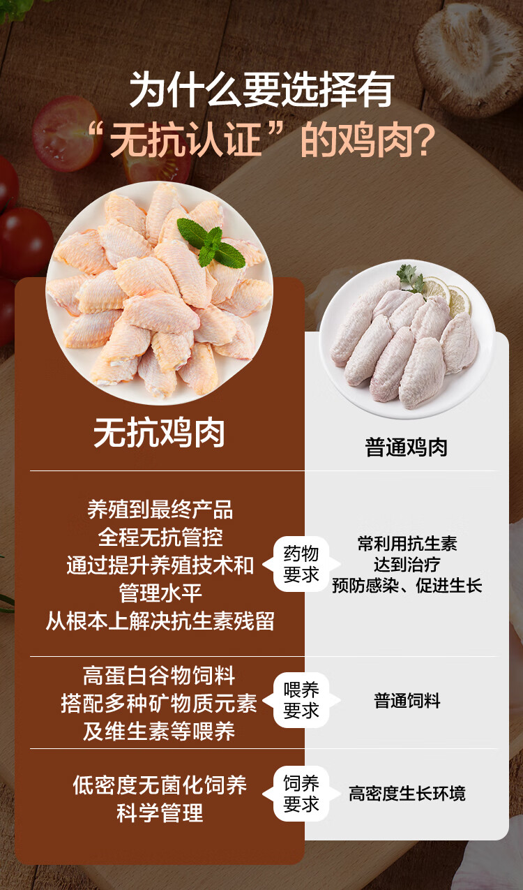 1号会员店(One's Member) 无抗鸡翅中大号出口级鸡肉烤鸡翅炸翅中 净重2斤