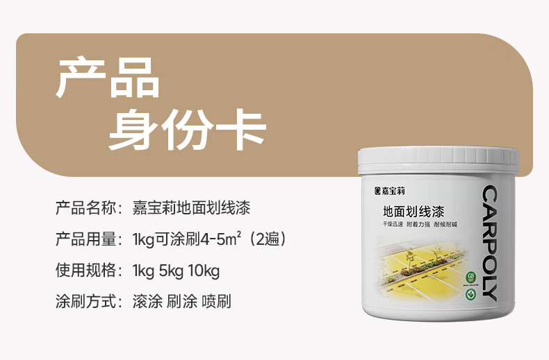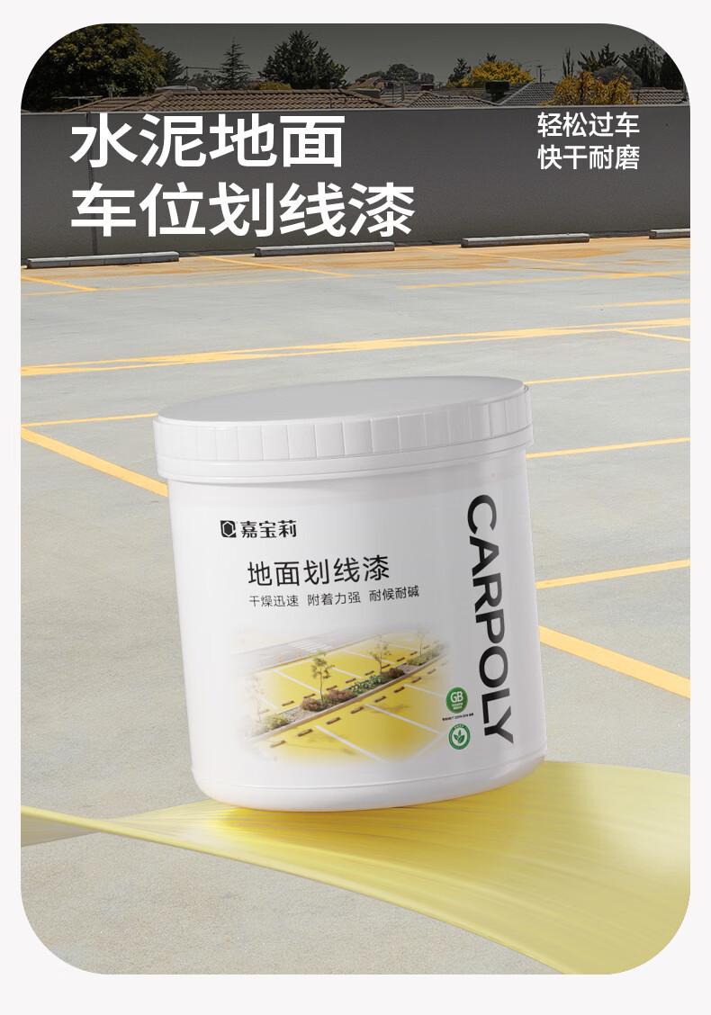 嘉宝莉(CARPOLY)马路停车位划线漆环氧地坪漆水泥地面漆地板标线漆黄色油漆 【耐磨防水不掉色】黄色1kg(可涂刷2-3个车位)