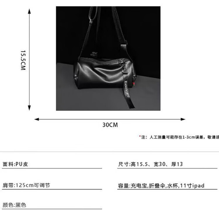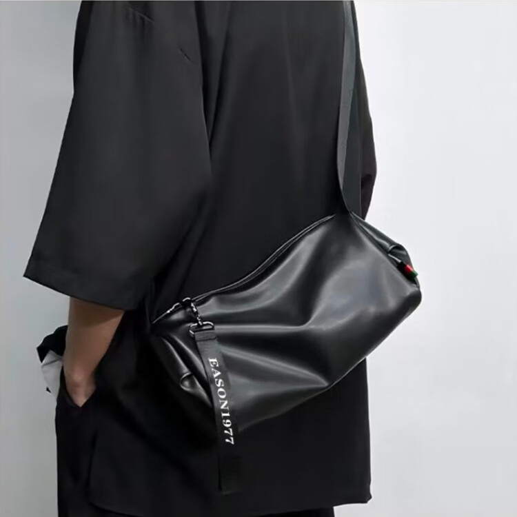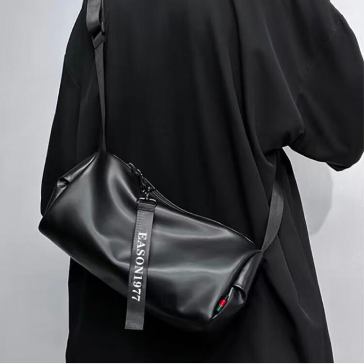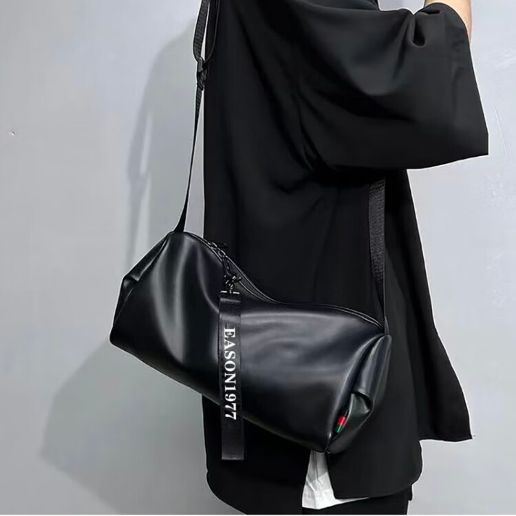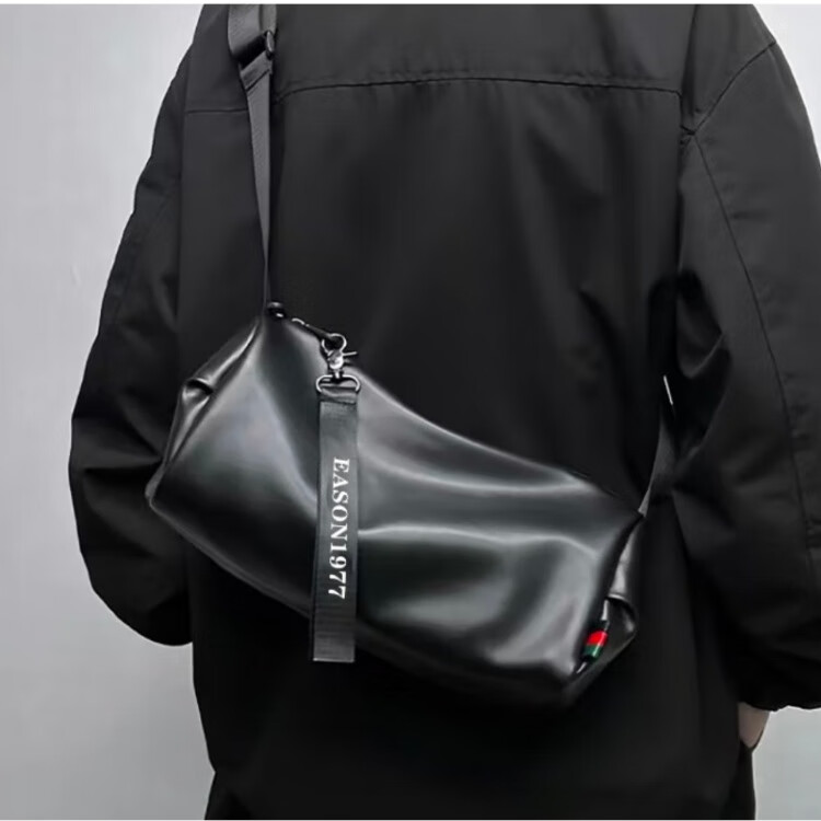 2023新款包包男士斜挎包简约休闲单肩包男潮牌百搭通勤包圆筒挎包 黑色