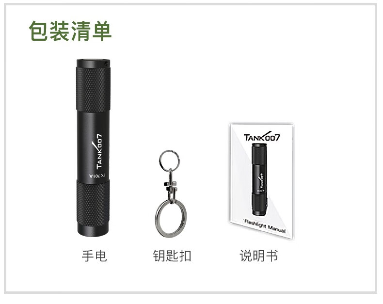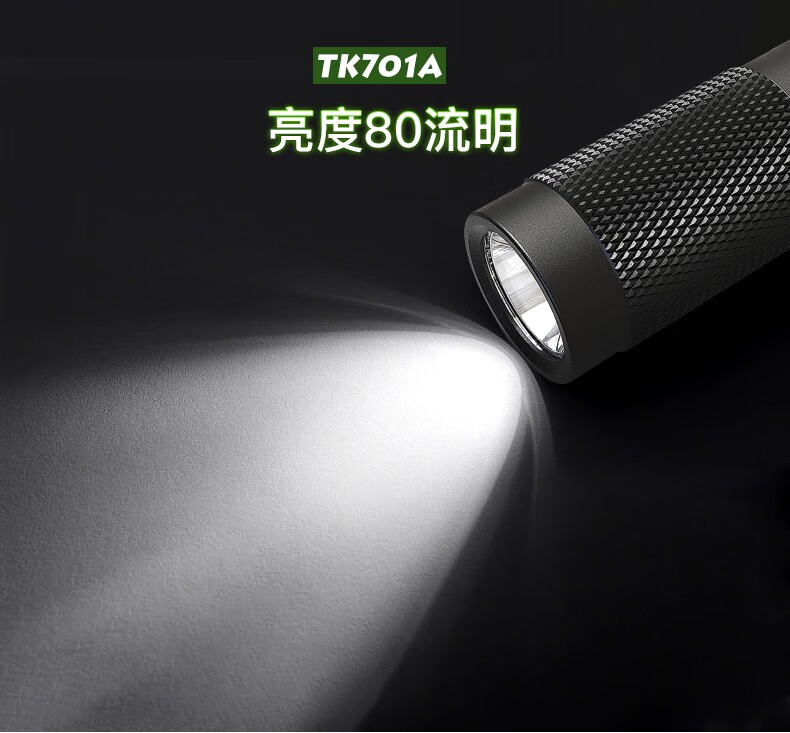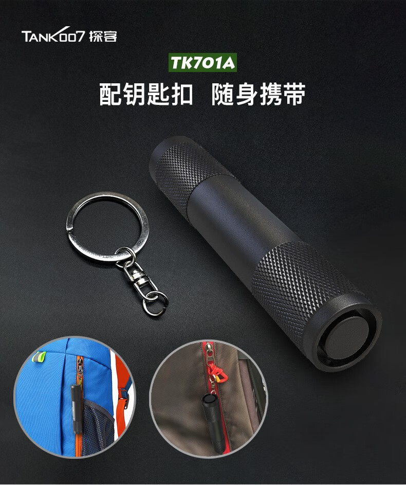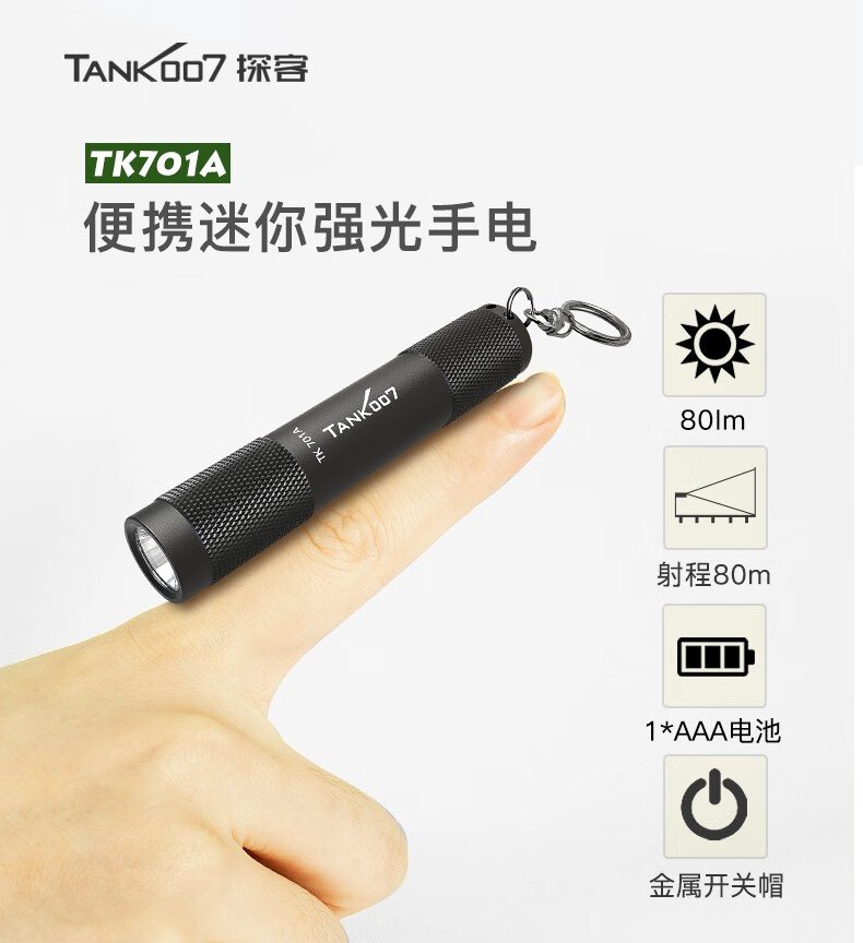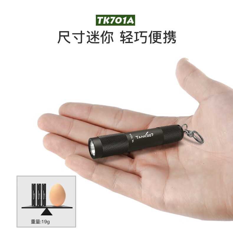 探客LED迷你便携钥匙扣手电筒进口灯珠强光聚光超亮防水照明 E09 TK701A 经典黑色+1 节 AAA电池 1个AAA电池