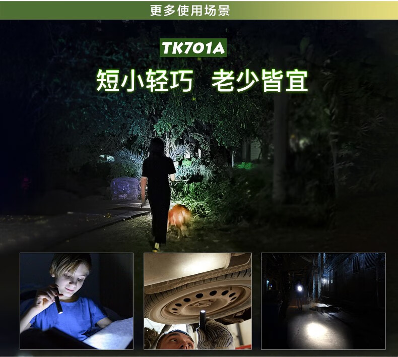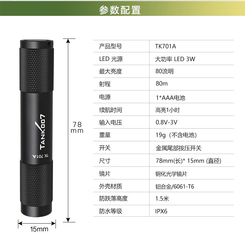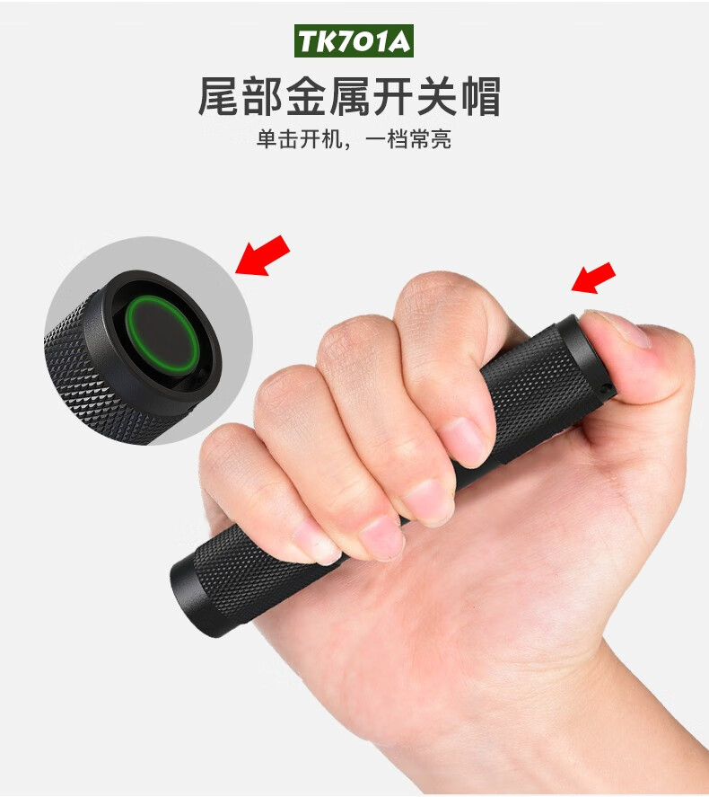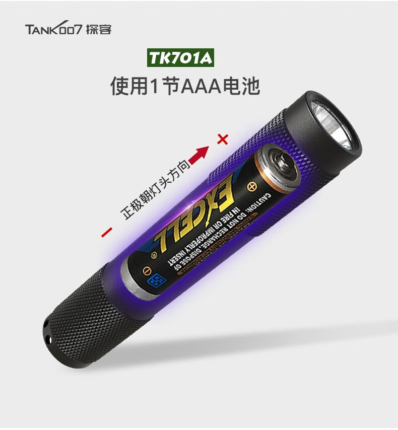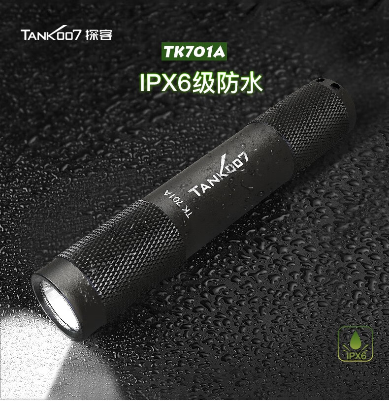 探客LED迷你便携钥匙扣手电筒进口灯珠强光聚光超亮防水照明 E09 TK701A 经典黑色+1 节 AAA电池 1个AAA电池
