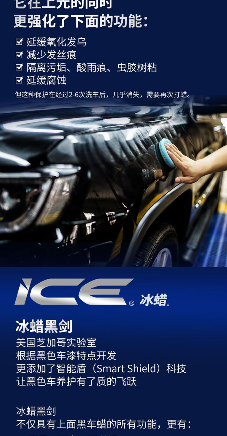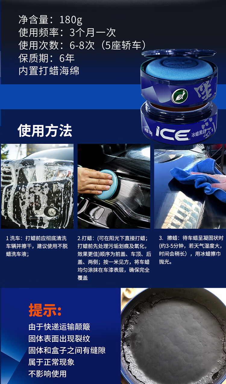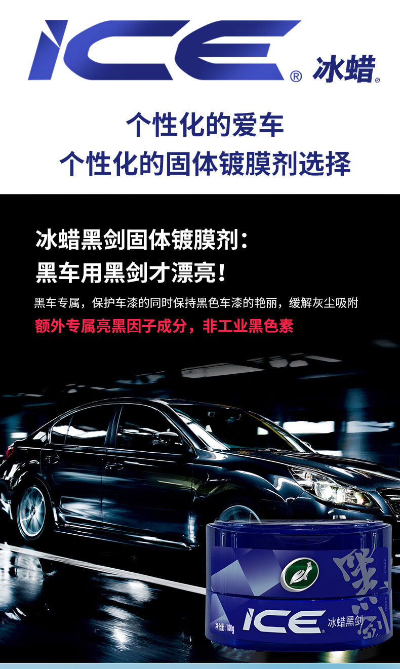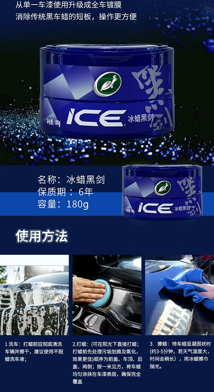 龟牌(Turtle Wax)冰蜡黑剑汽车蜡黑色车固体镀膜剂打蜡养护蜡增亮保护白车蜡全车用 【黑车专用】冰蜡黑剑+擦巾