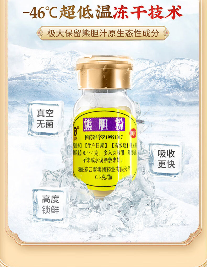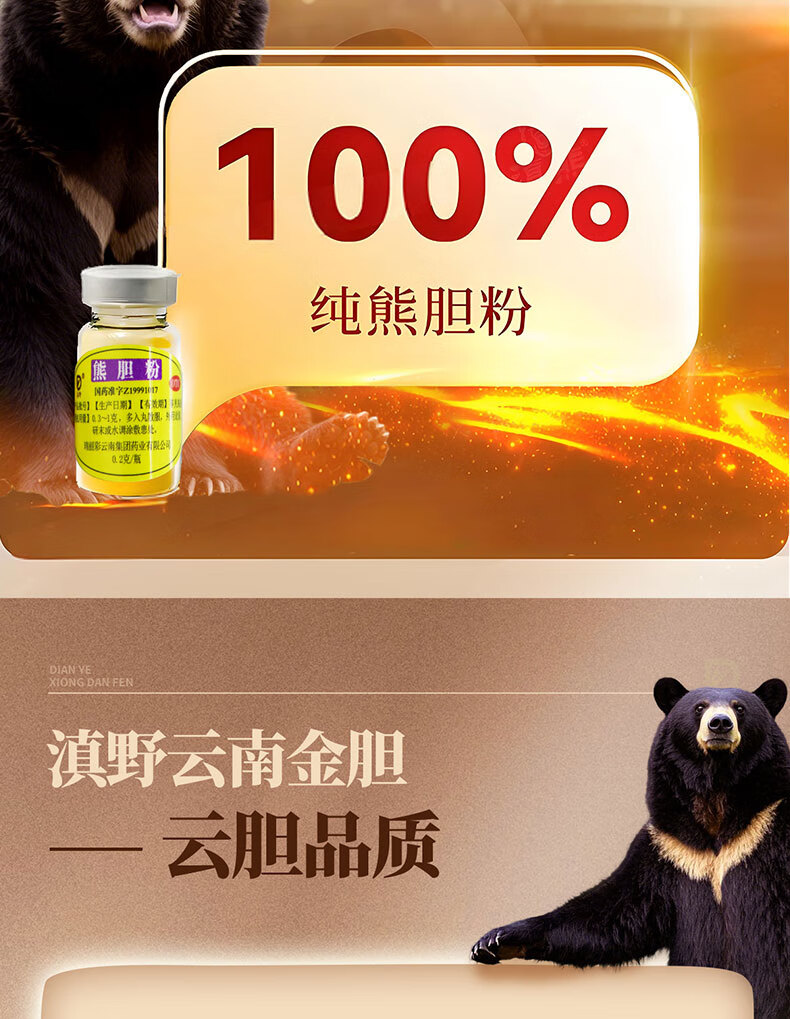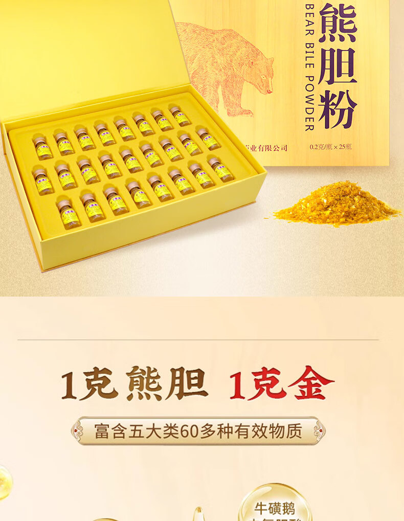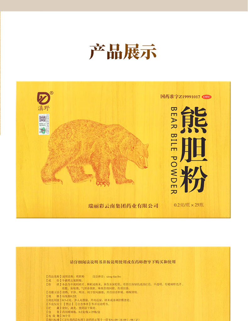 [滇野]熊胆粉 0.2g*25瓶 2盒装 正品国药准字otc金胆官方旗舰店正宗熊胆的功效清热护肝养肝目赤咽喉肿痛 50瓶赠糯米纸开瓶器