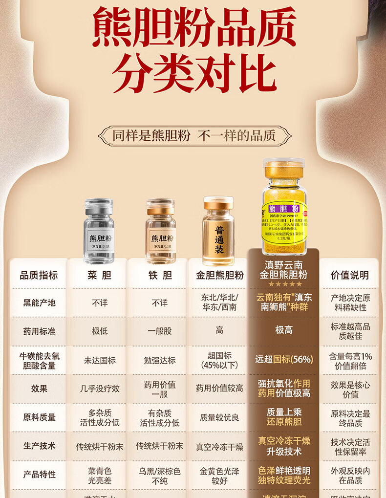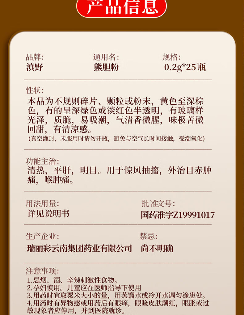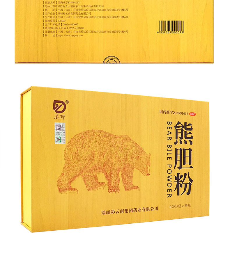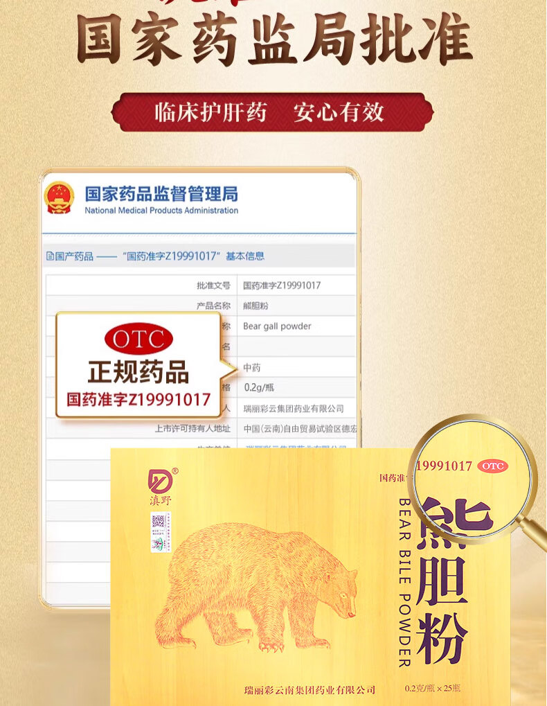 [滇野]熊胆粉 0.2g*25瓶 2盒装 正品国药准字otc金胆官方旗舰店正宗熊胆的功效清热护肝养肝目赤咽喉肿痛 50瓶赠糯米纸开瓶器