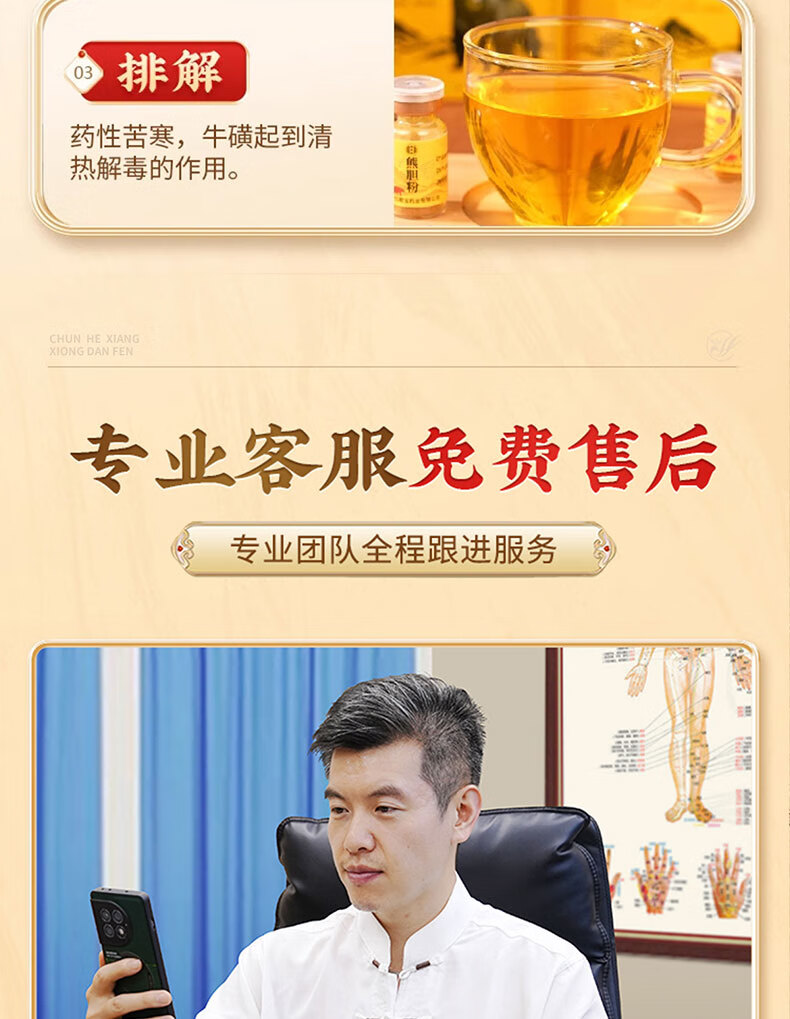 [瑞鹤]熊胆粉 0.2g*7瓶 5盒装 清热明目金胆平肝惊风抽搐外治目赤肿痛咽喉肿痛肝胆用药健康巩固 90%选择-居家常备