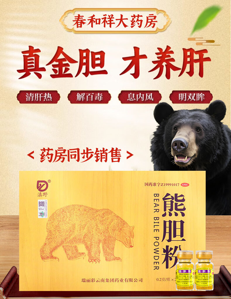 [瑞鹤]熊胆粉 0.2g*7瓶 3盒装 清热明目金胆平肝惊风抽搐外治目赤肿痛咽喉肿痛肝胆用药健康巩固 养肝强肝