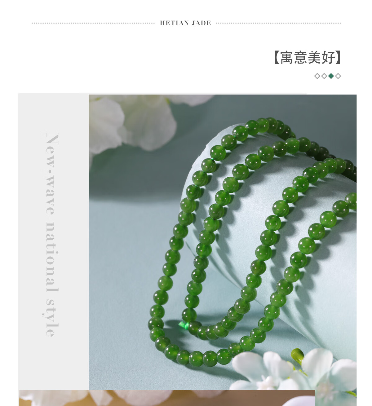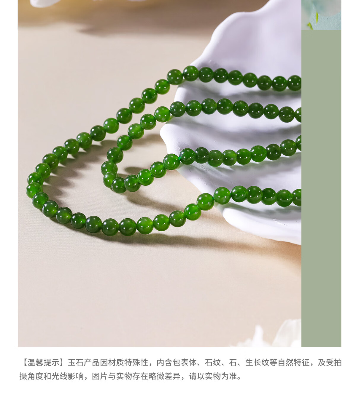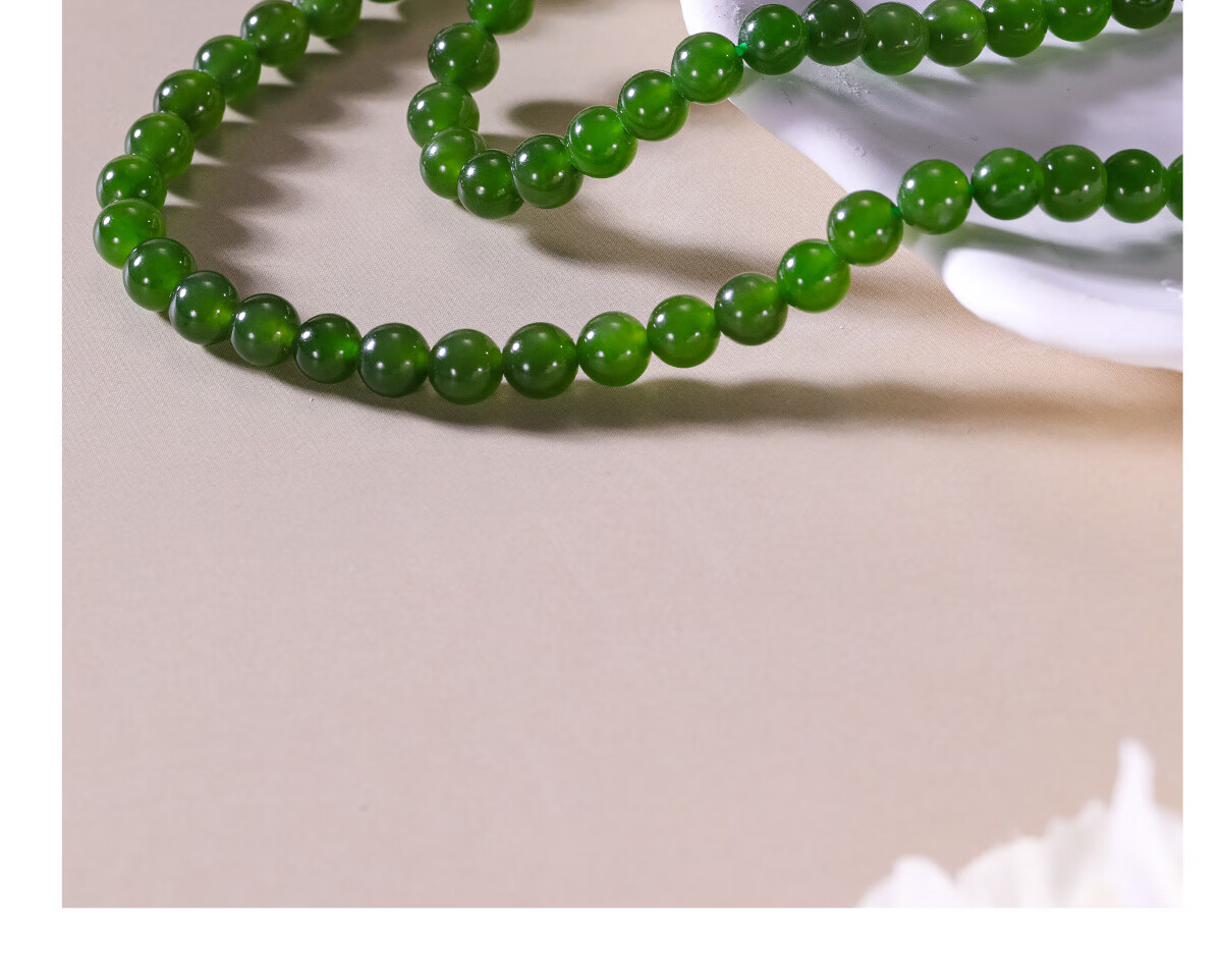 和合玉器和合玉器和田玉菠菜绿色碧玉0.5珠珠串圆珠项链吊坠女士节日礼物