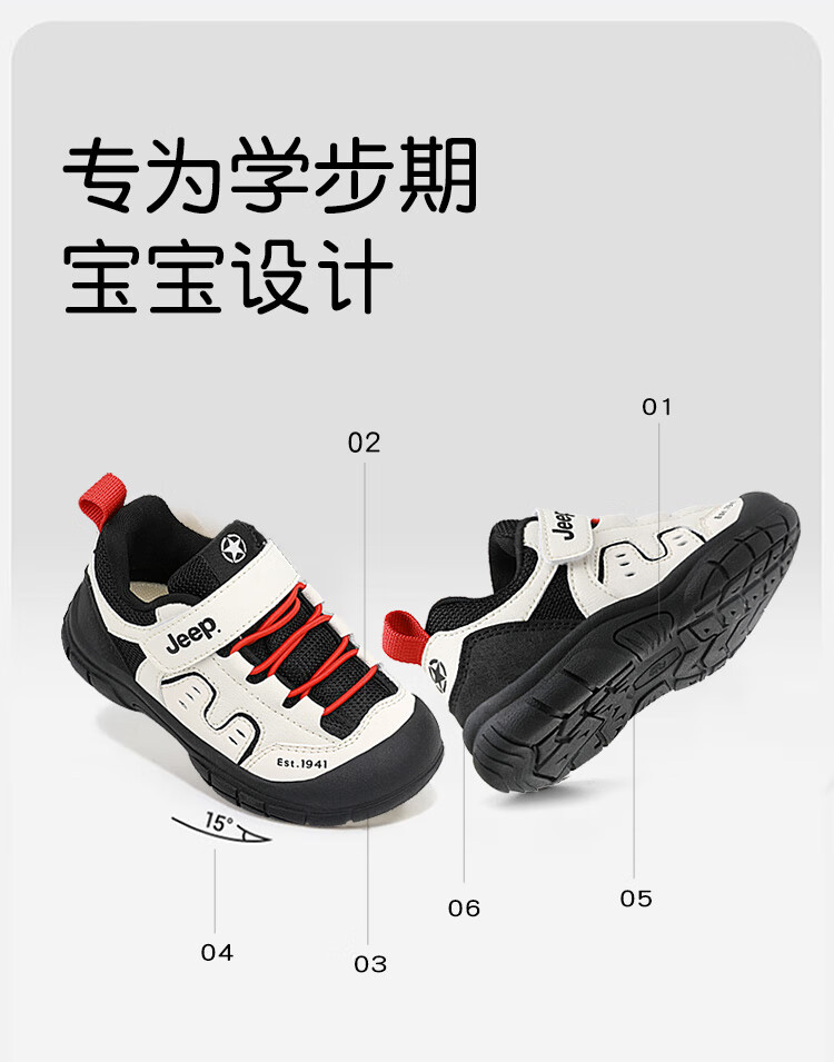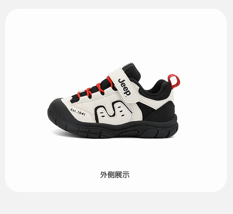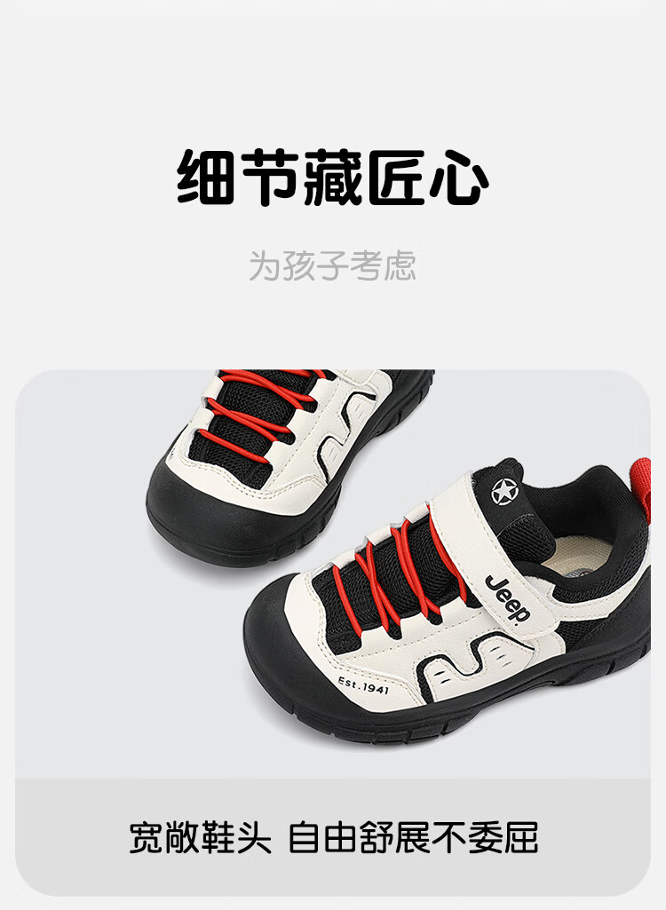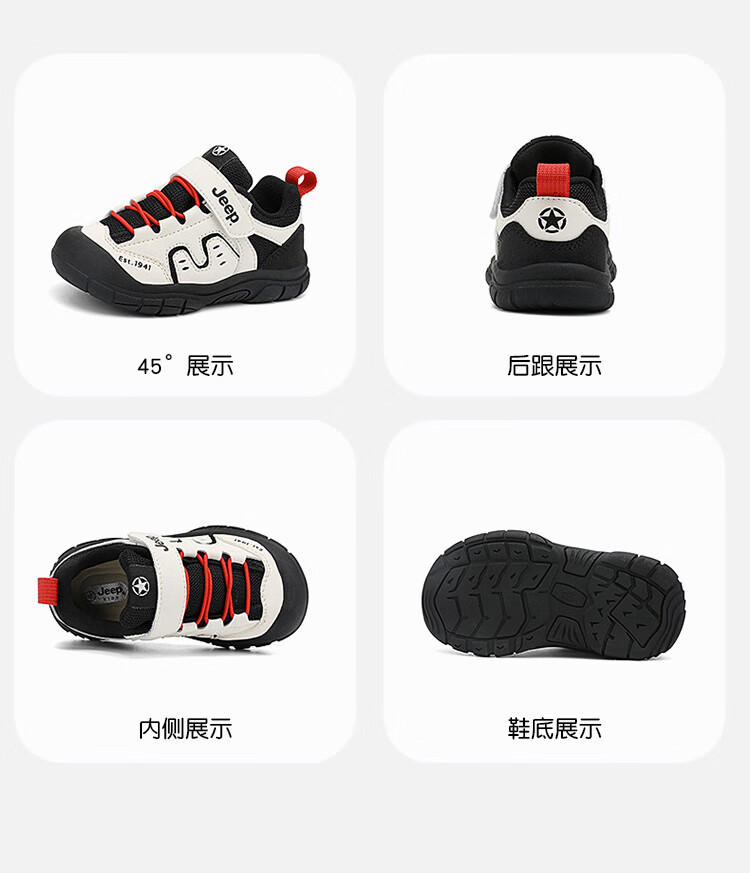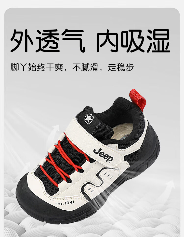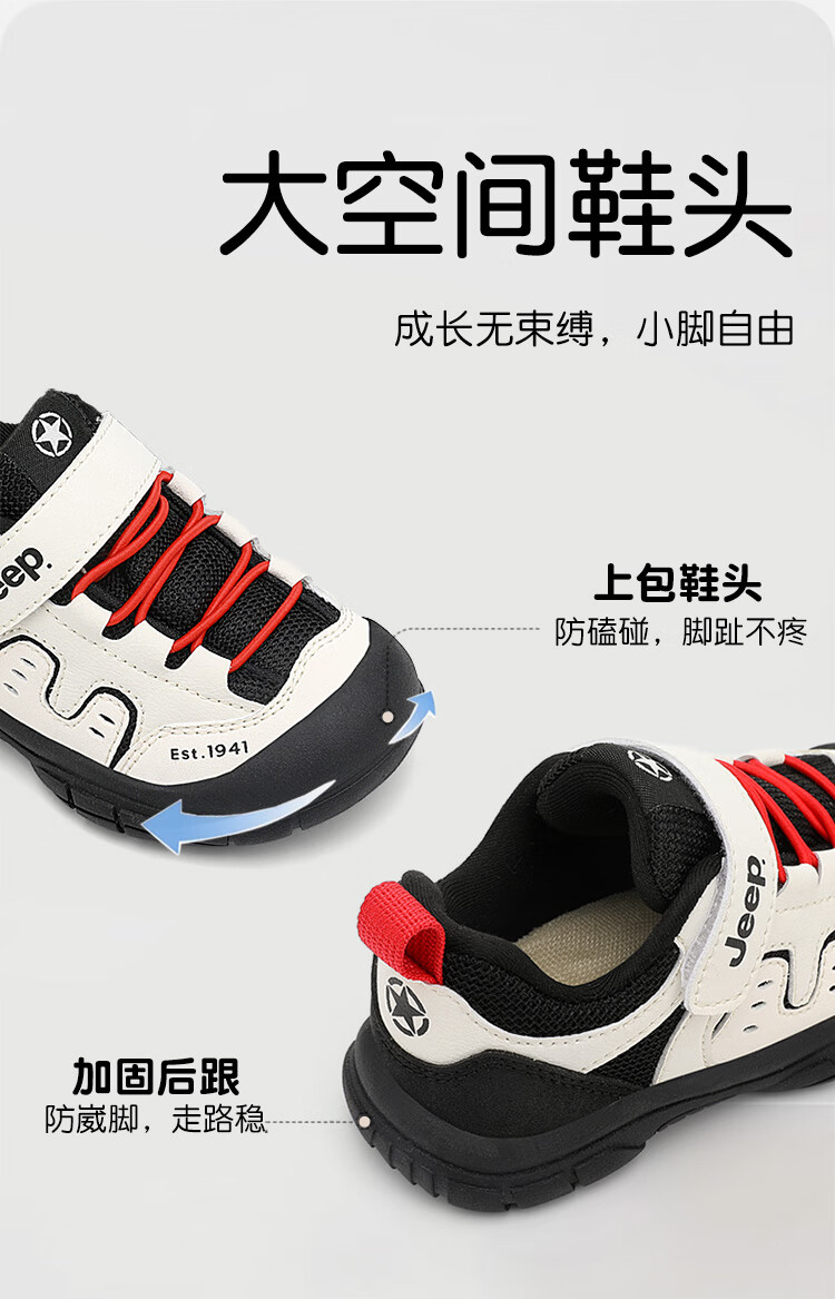 JEEP儿童学步鞋运动鞋透气稳稳鞋防踢学步鞋休闲鞋 黑米/红 25