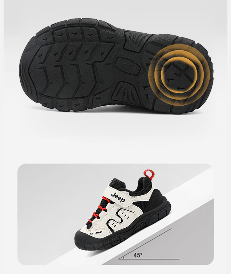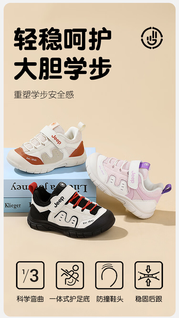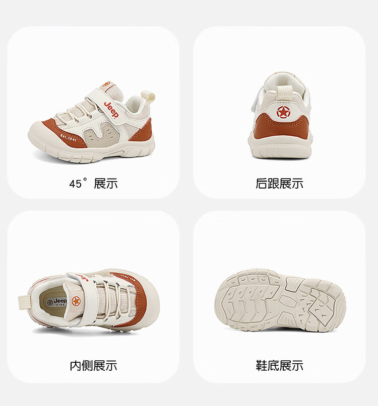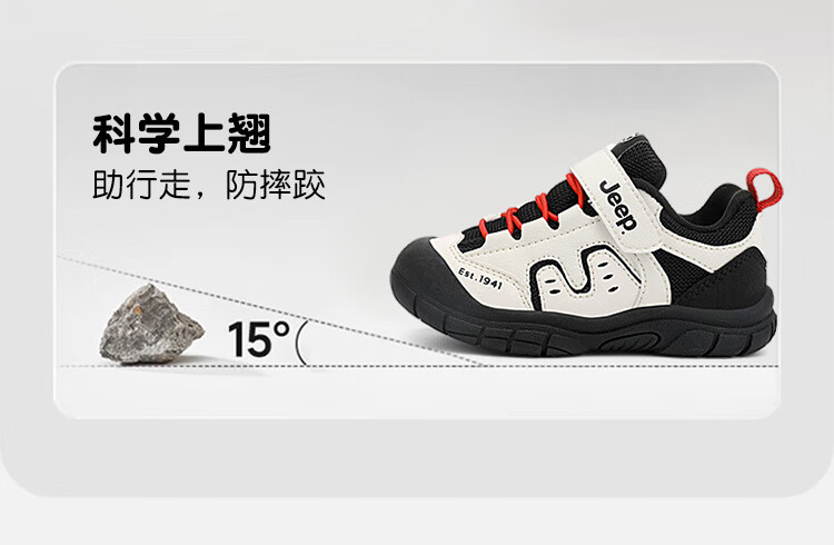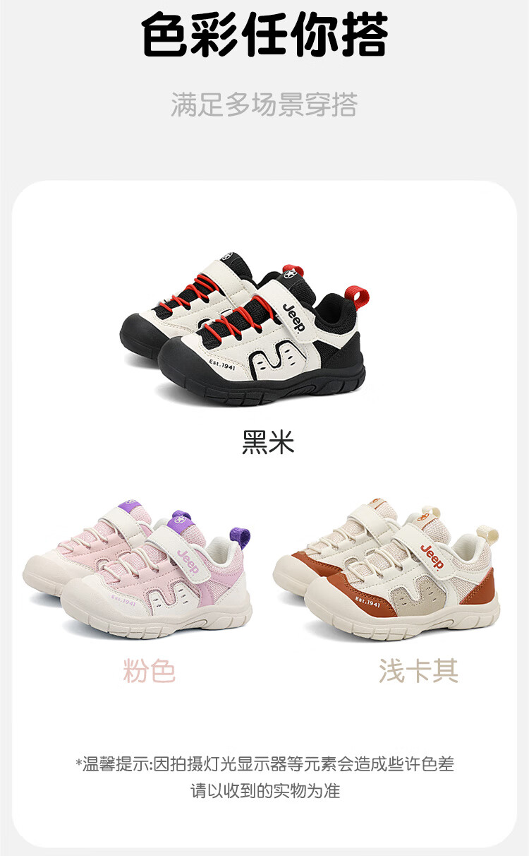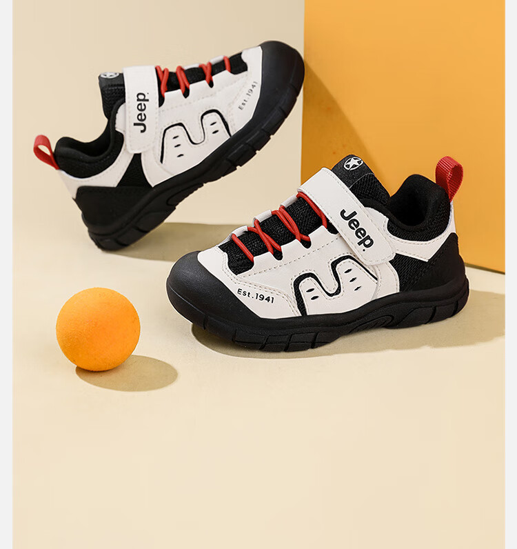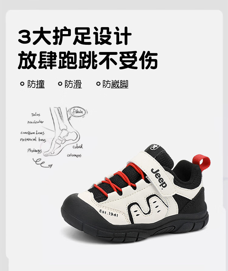 JEEP儿童学步鞋运动鞋透气稳稳鞋防踢学步鞋休闲鞋 黑米/红 25