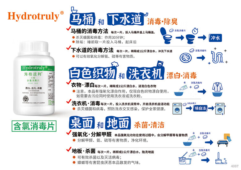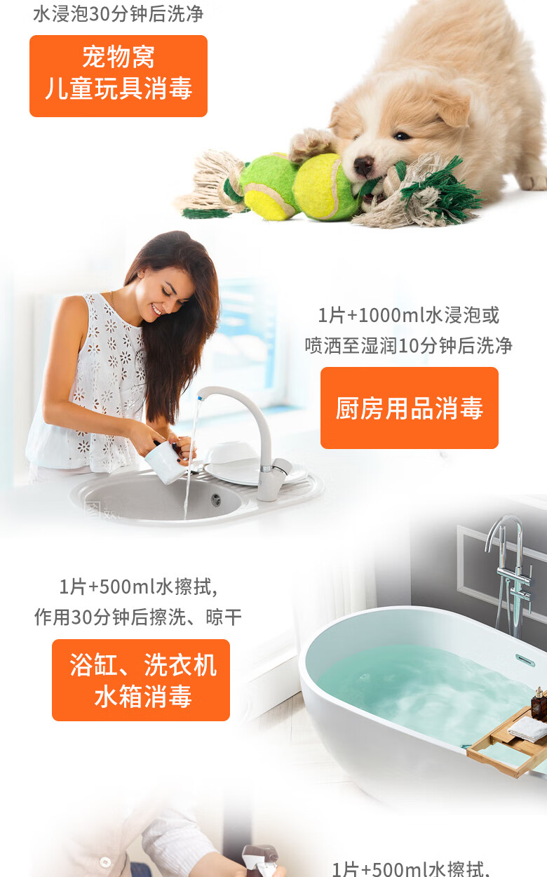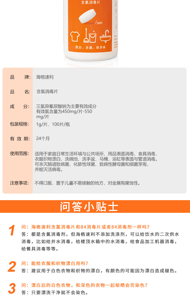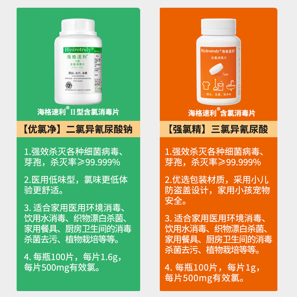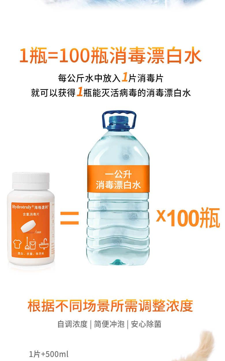 海格速利次氯酸消毒片 杀菌消毒99.999%食品级宠物家用洗餐具玩具浴缸除菌 10瓶/共1000片【孕婴宠安全】