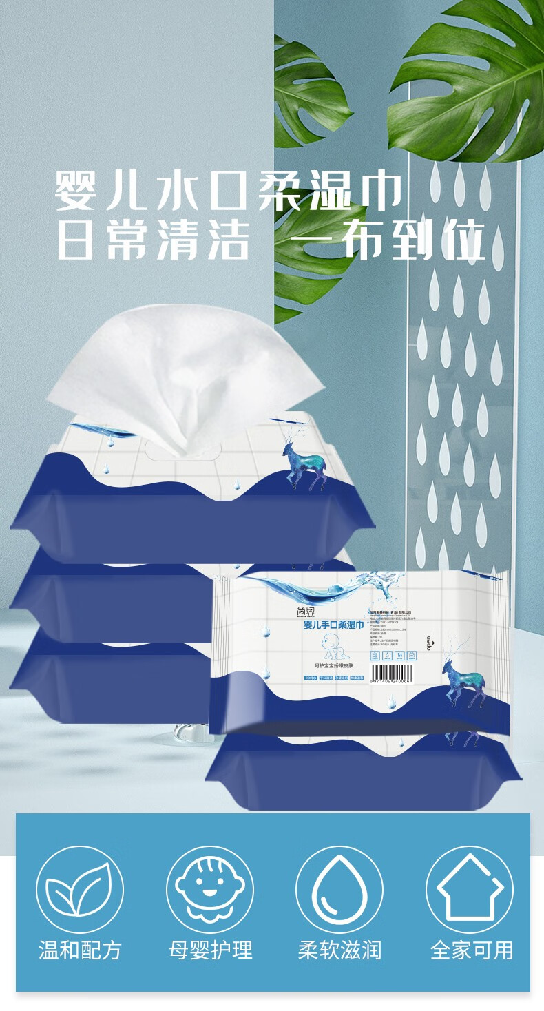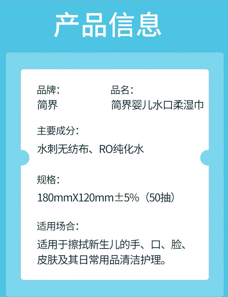 简界纯水湿巾加厚婴儿手口宝宝湿纸巾儿童柔湿巾母婴可用 50抽X5包