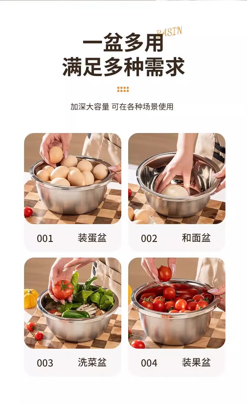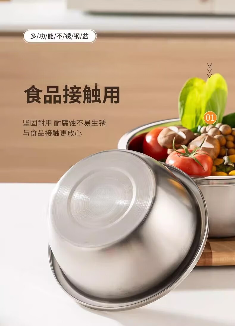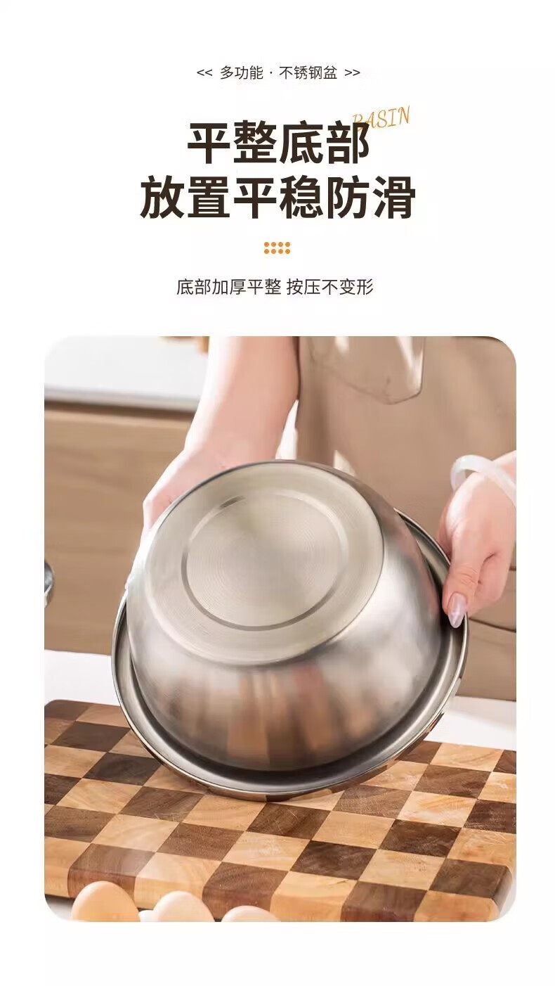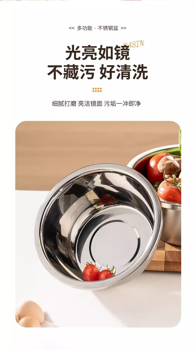 金汤银饺升级款奥氏体不锈钢厨房用品套装家用洗菜盆和面盆油盆打蛋盆 22+24+26cm三件套【发三个】