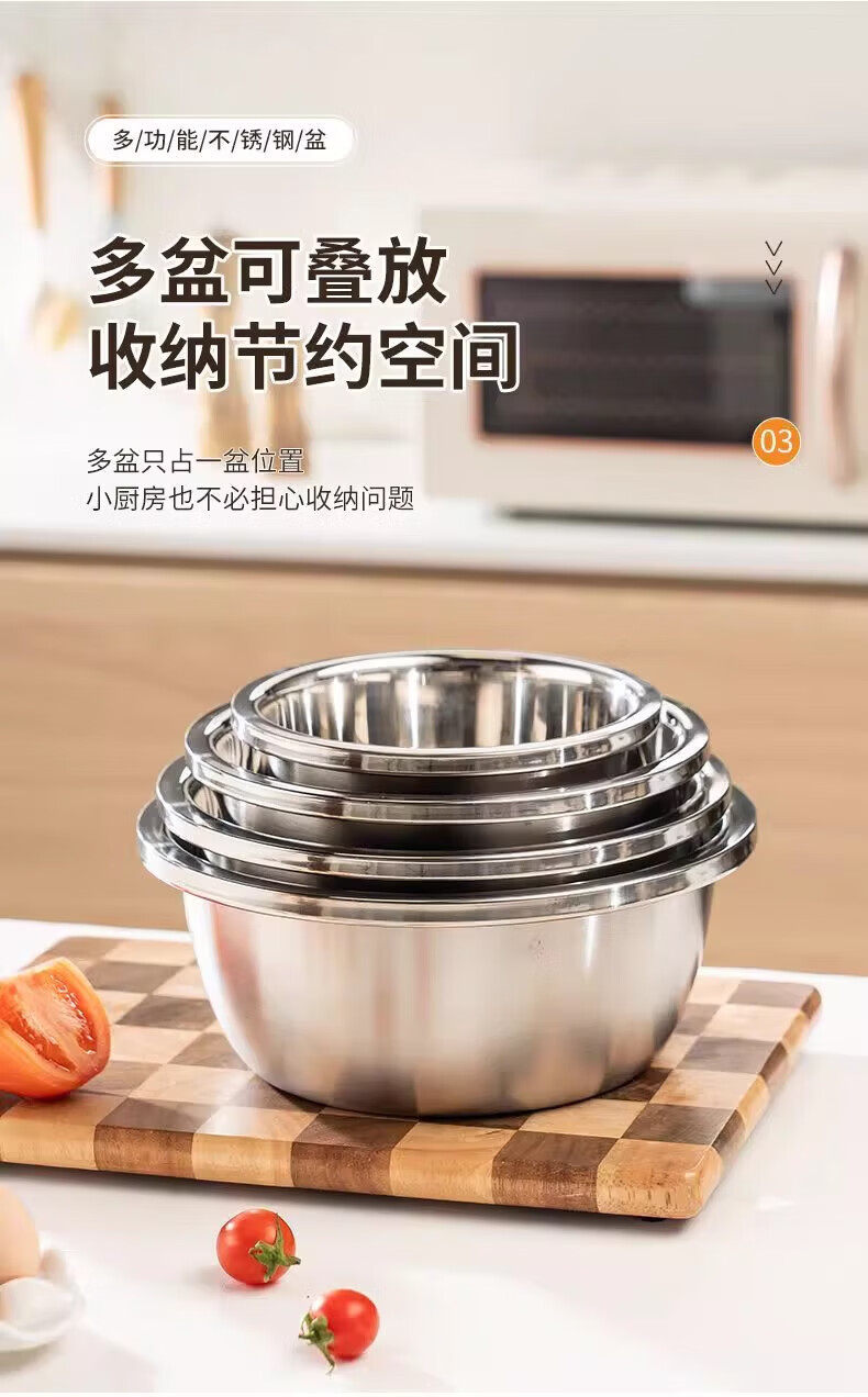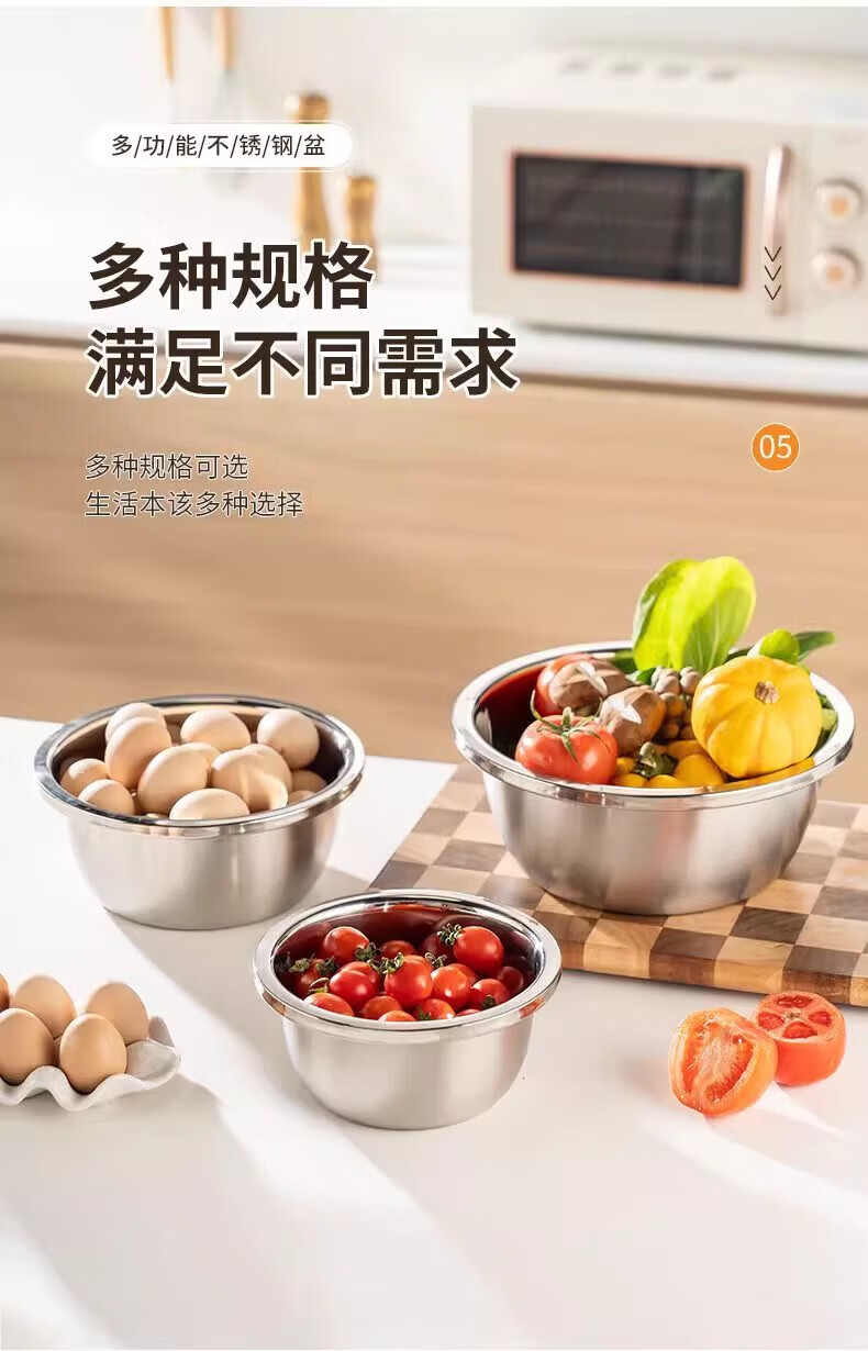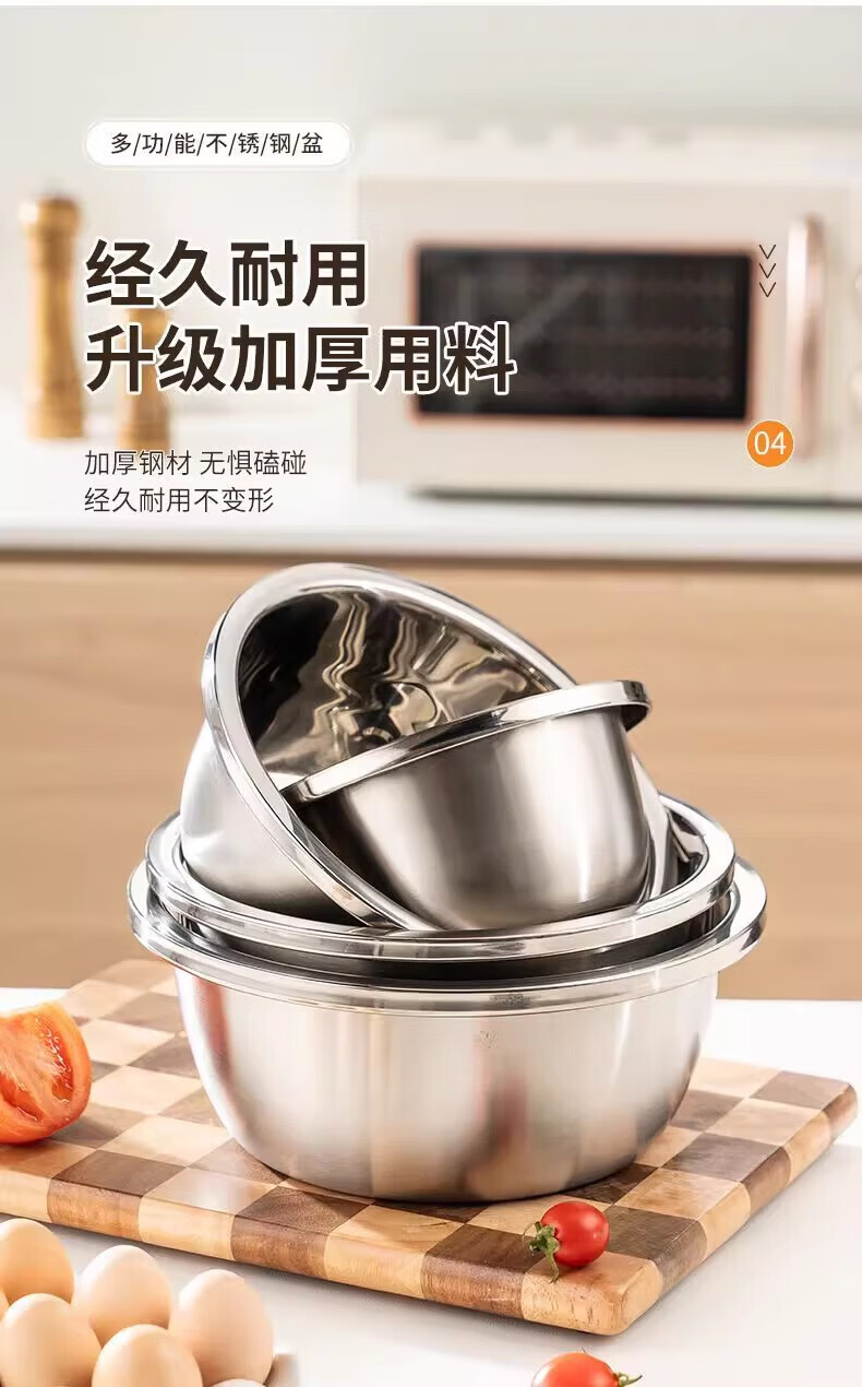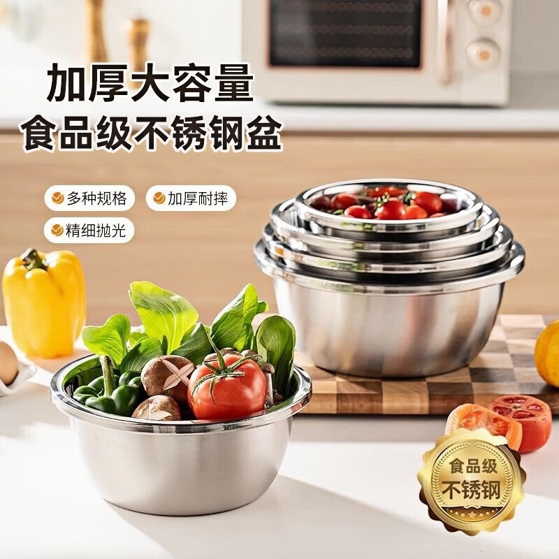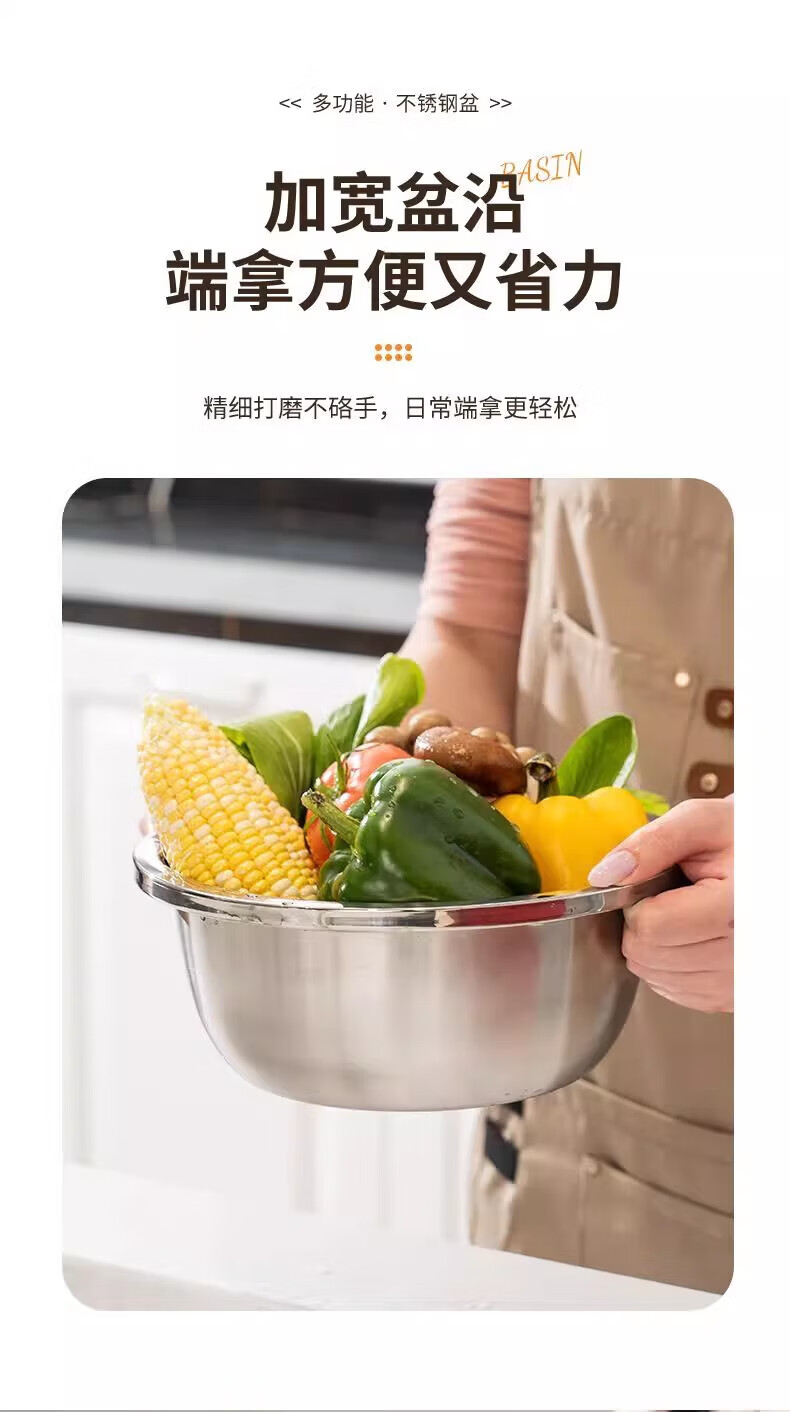 金汤银饺升级款奥氏体不锈钢厨房用品套装家用洗菜盆和面盆油盆打蛋盆 22+24+26cm三件套【发三个】