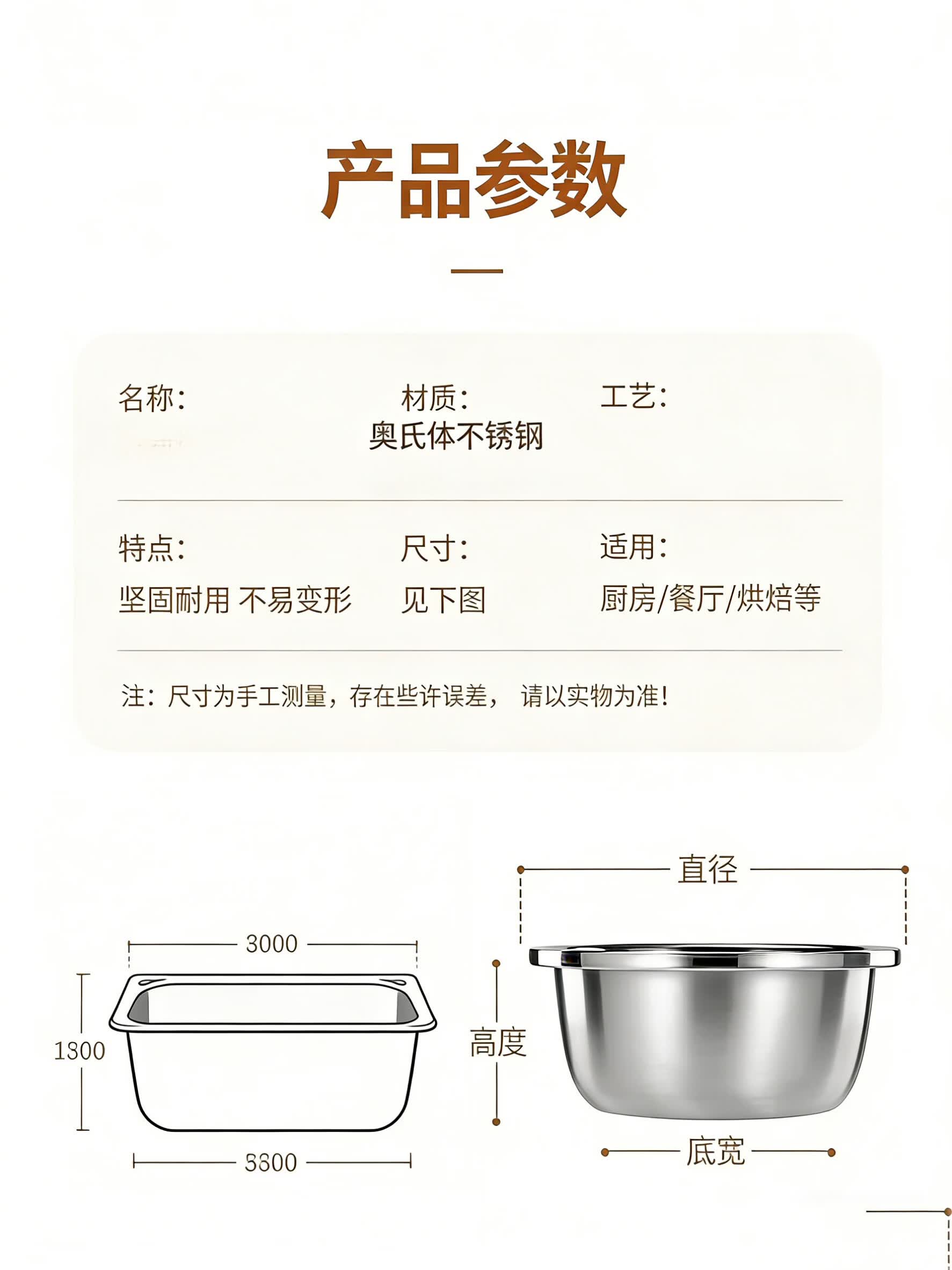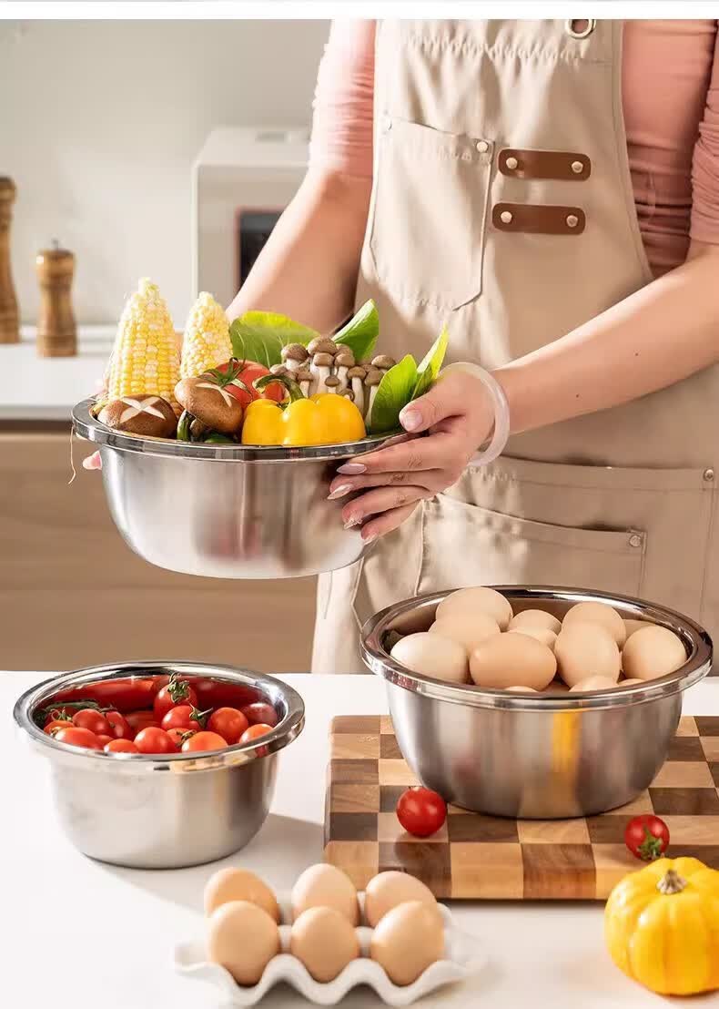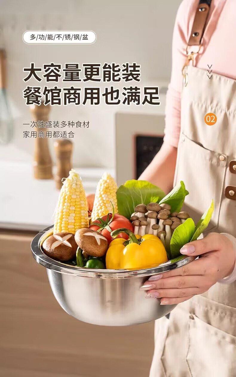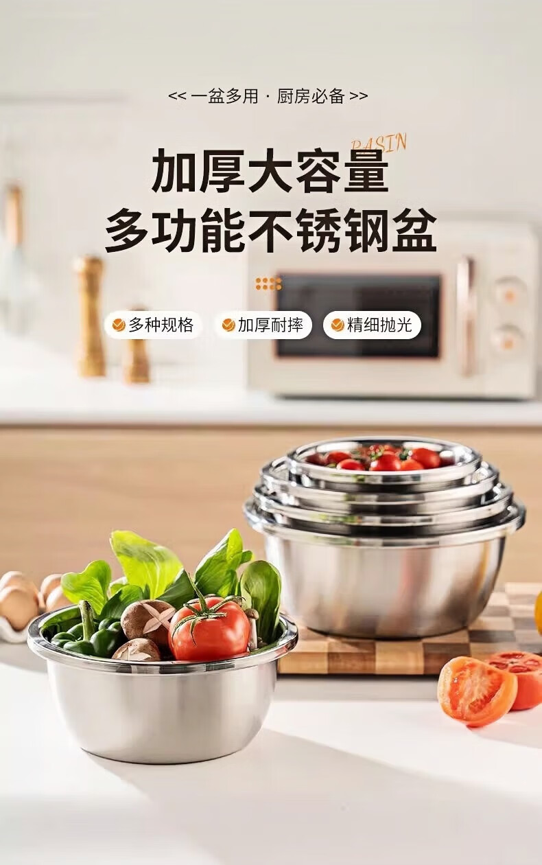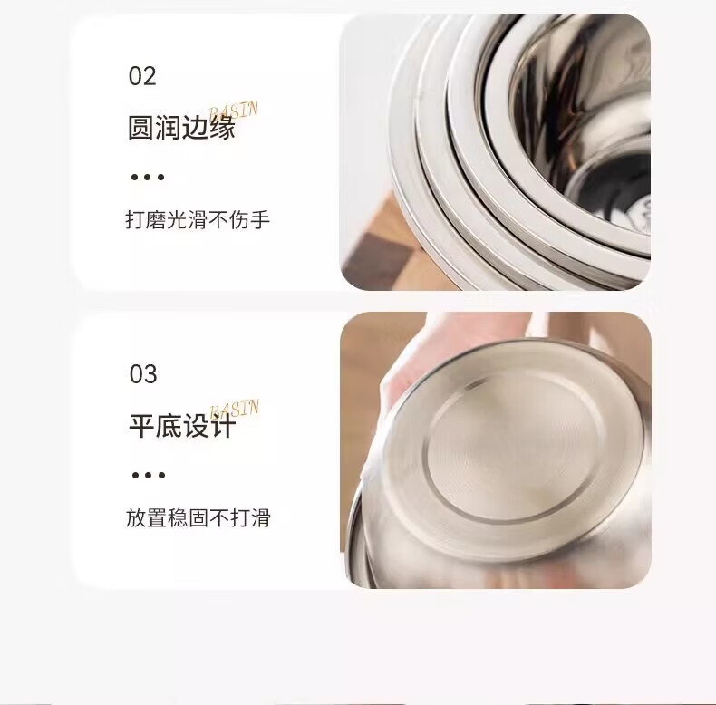 金汤银饺升级款奥氏体不锈钢厨房用品套装家用洗菜盆和面盆油盆打蛋盆 22+24+26cm三件套【发三个】