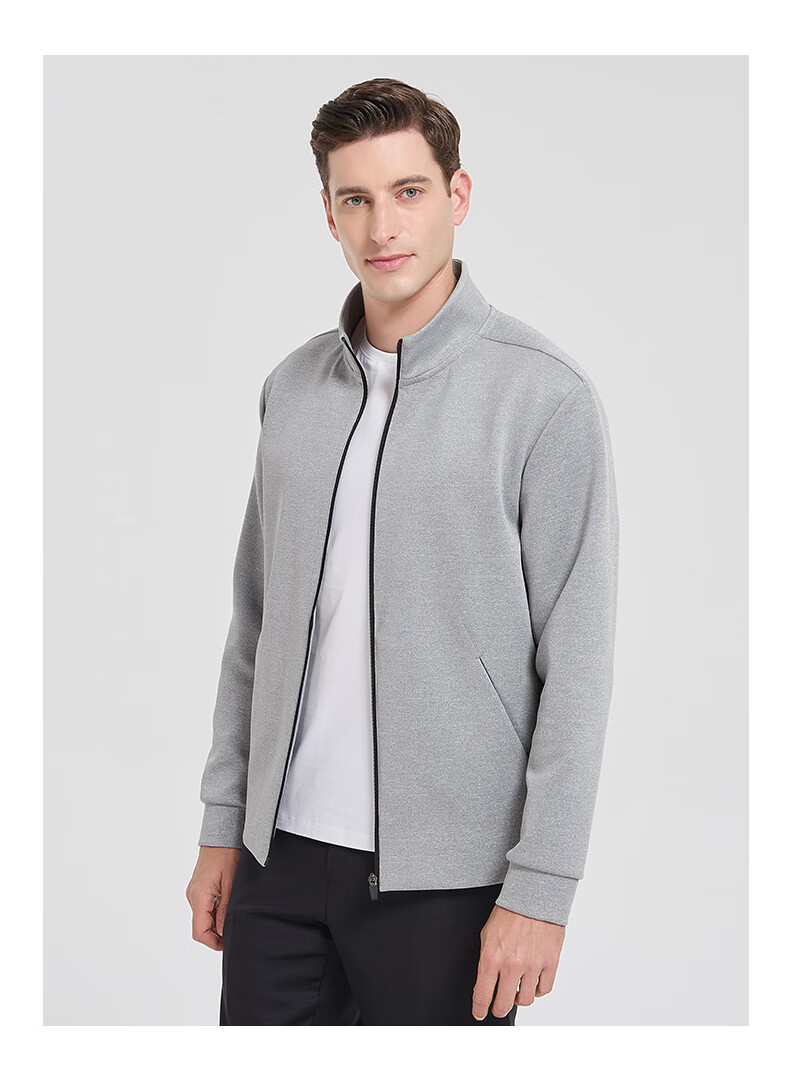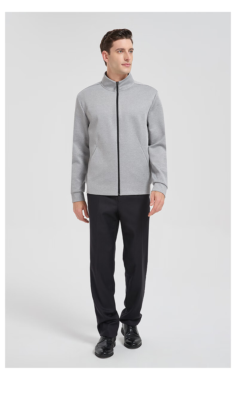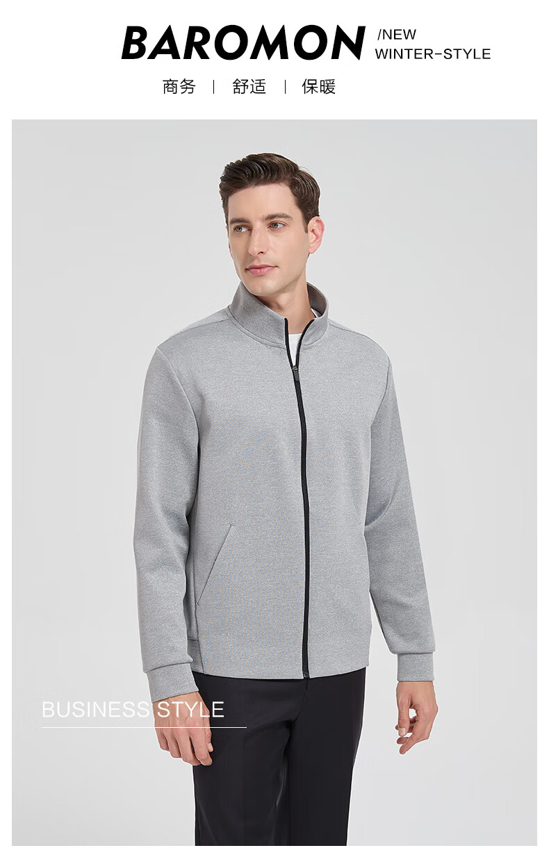培罗蒙厚款夹克男商务休闲立领外套高端春秋上衣 灰色 M -170