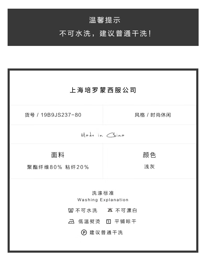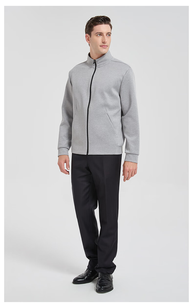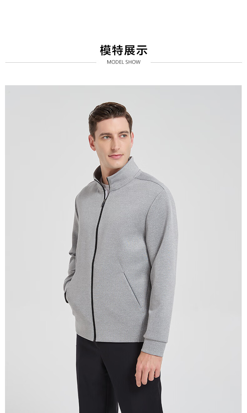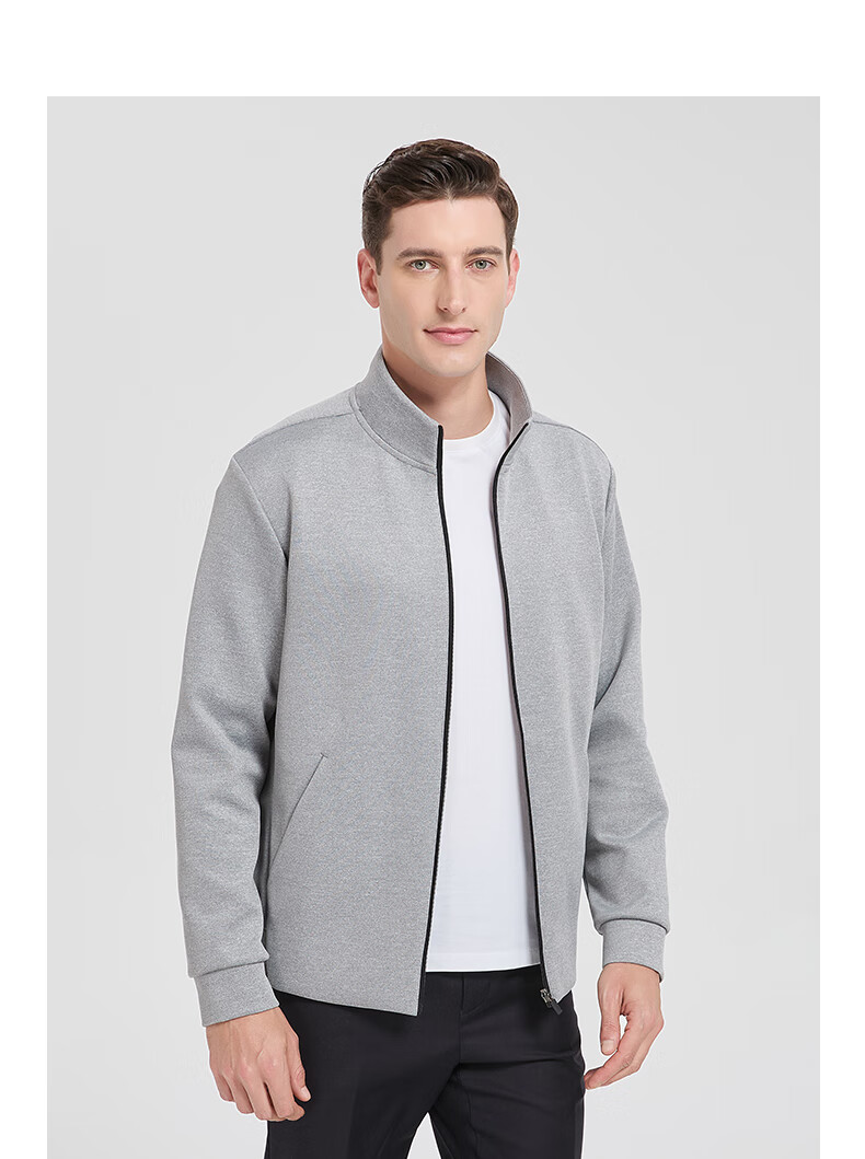 培罗蒙厚款夹克男商务休闲立领外套高端春秋上衣 灰色 M -170