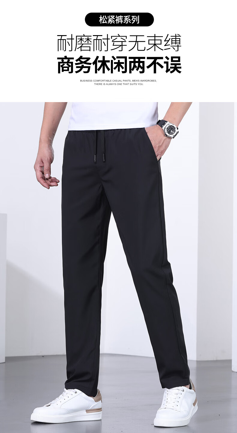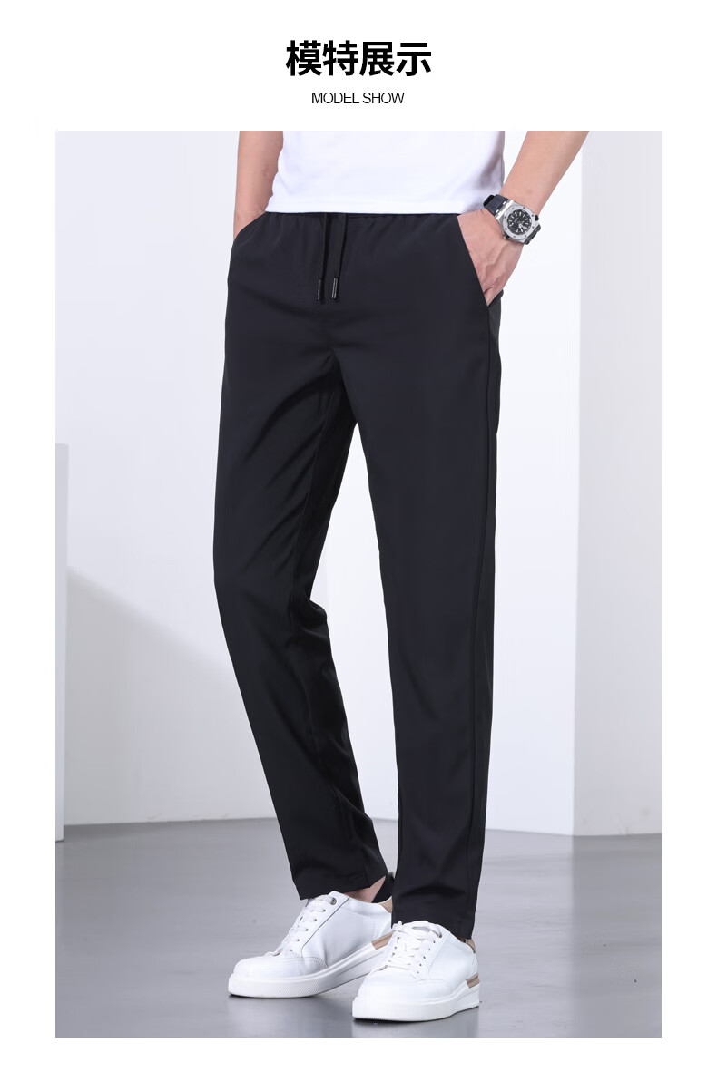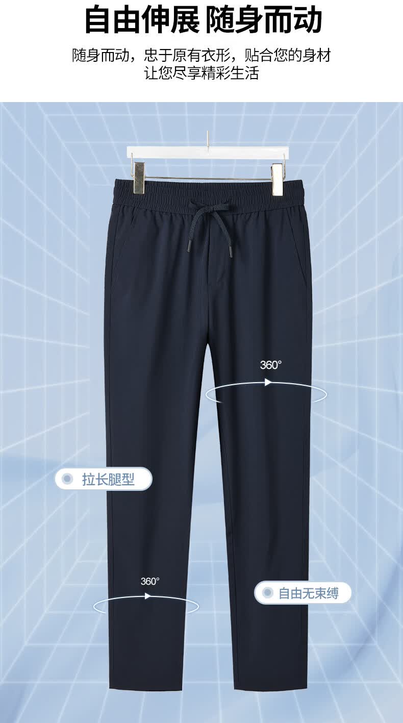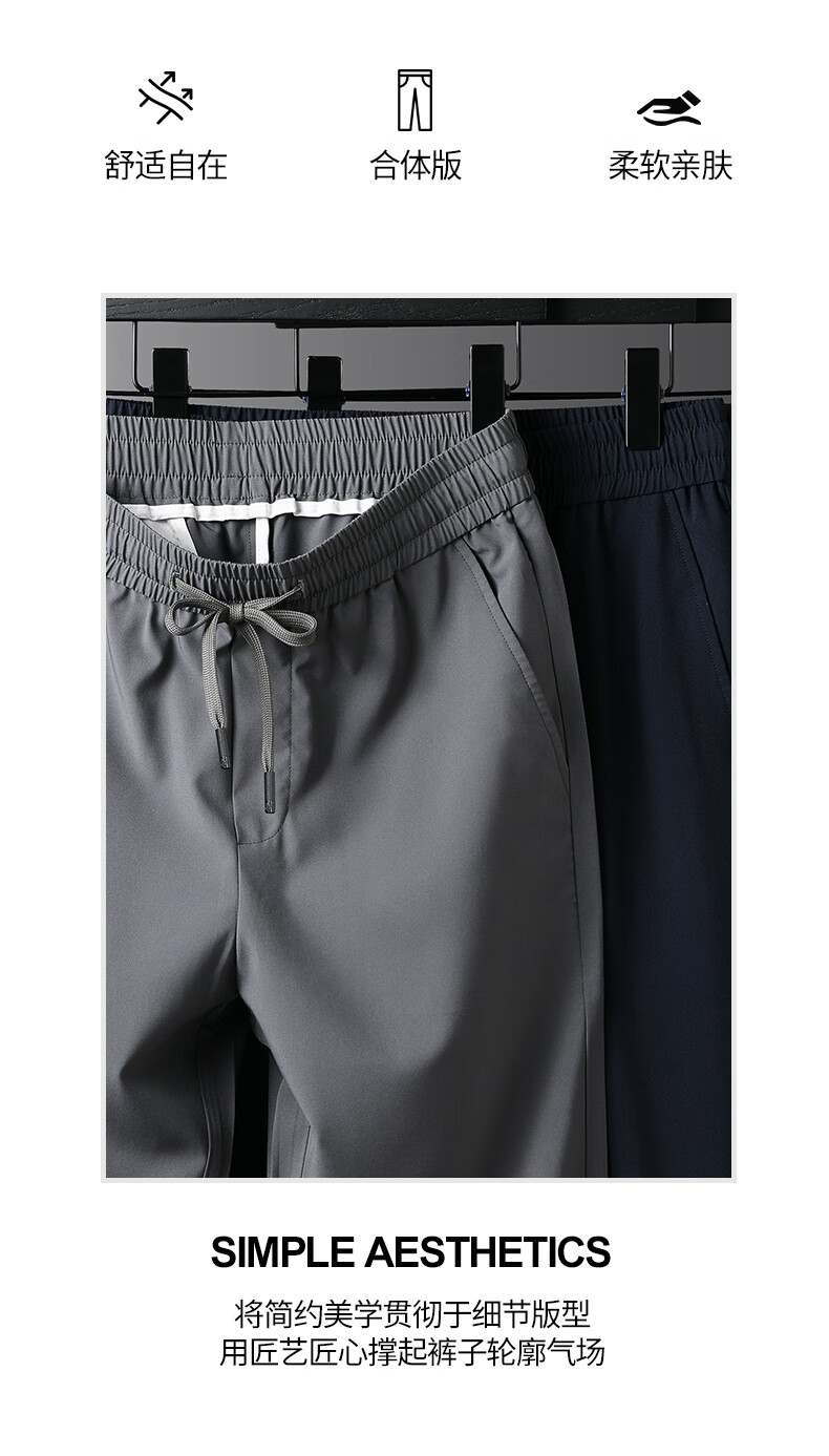 罗蒙(ROMON)休闲裤男夏季薄款时尚休闲冰丝男士松紧腰运动直筒长裤子 藏青 XL