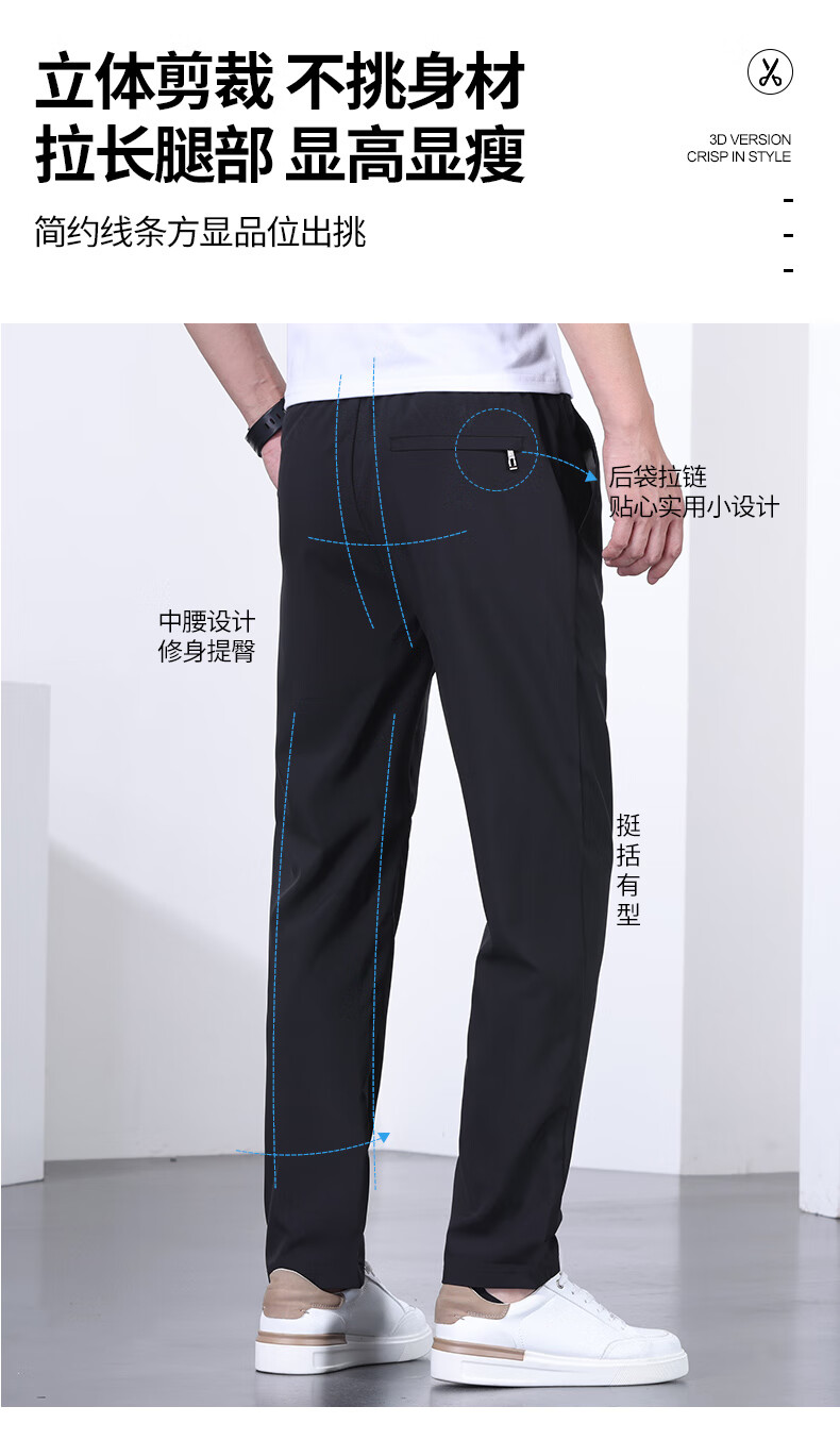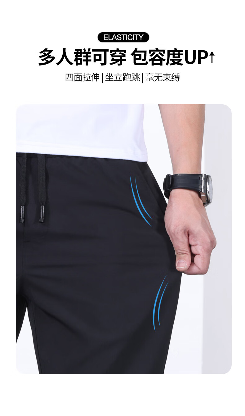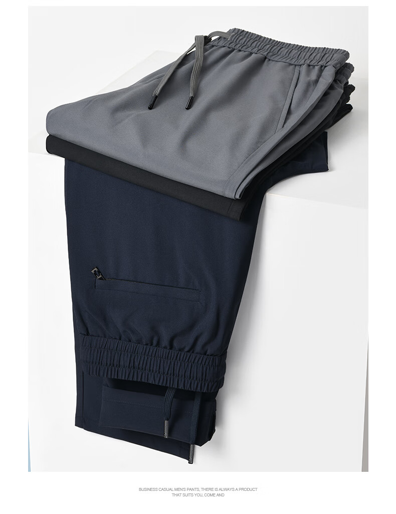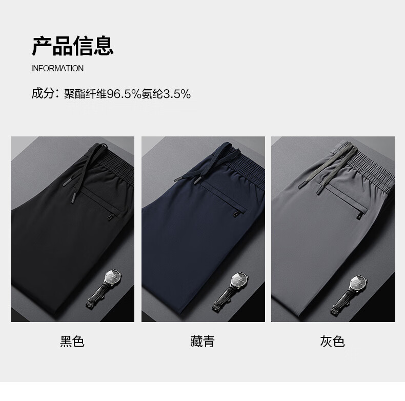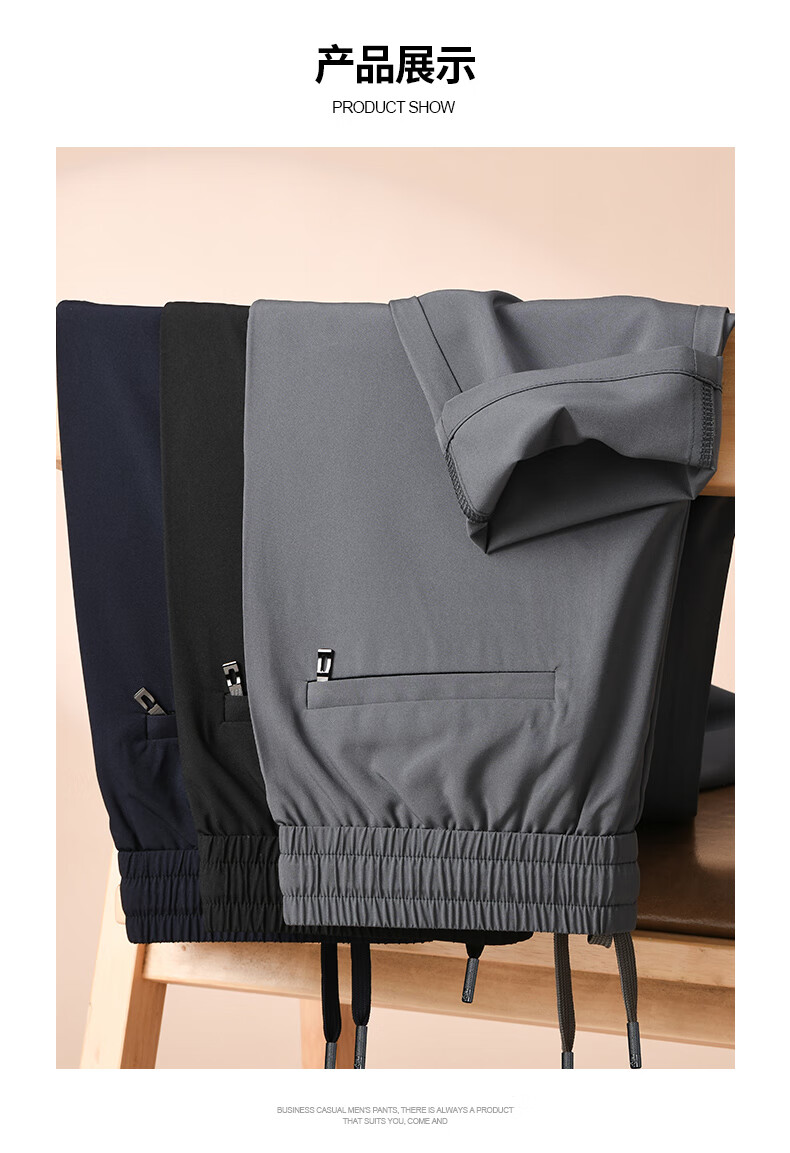 罗蒙(ROMON)休闲裤男夏季薄款时尚休闲冰丝男士松紧腰运动直筒长裤子 藏青 XL