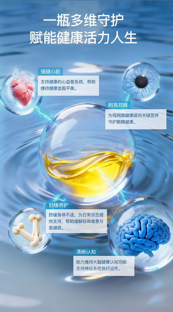安健蓓深海鱼油软胶囊omega3中老年成人助力免疫辅助血脂血压护眼 深海鱼油中老年人助力免疫力 60粒*3瓶