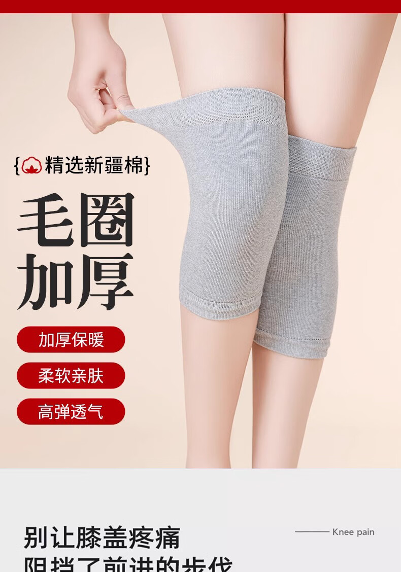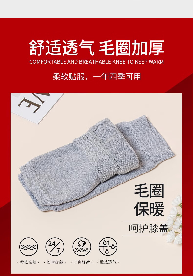 恒源祥纯棉护膝保暖加长加厚毛圈老寒腿秋冬季中老年人男女士关节膝盖防 浅灰【超长加厚毛圈款】 XL码 【140-170斤】