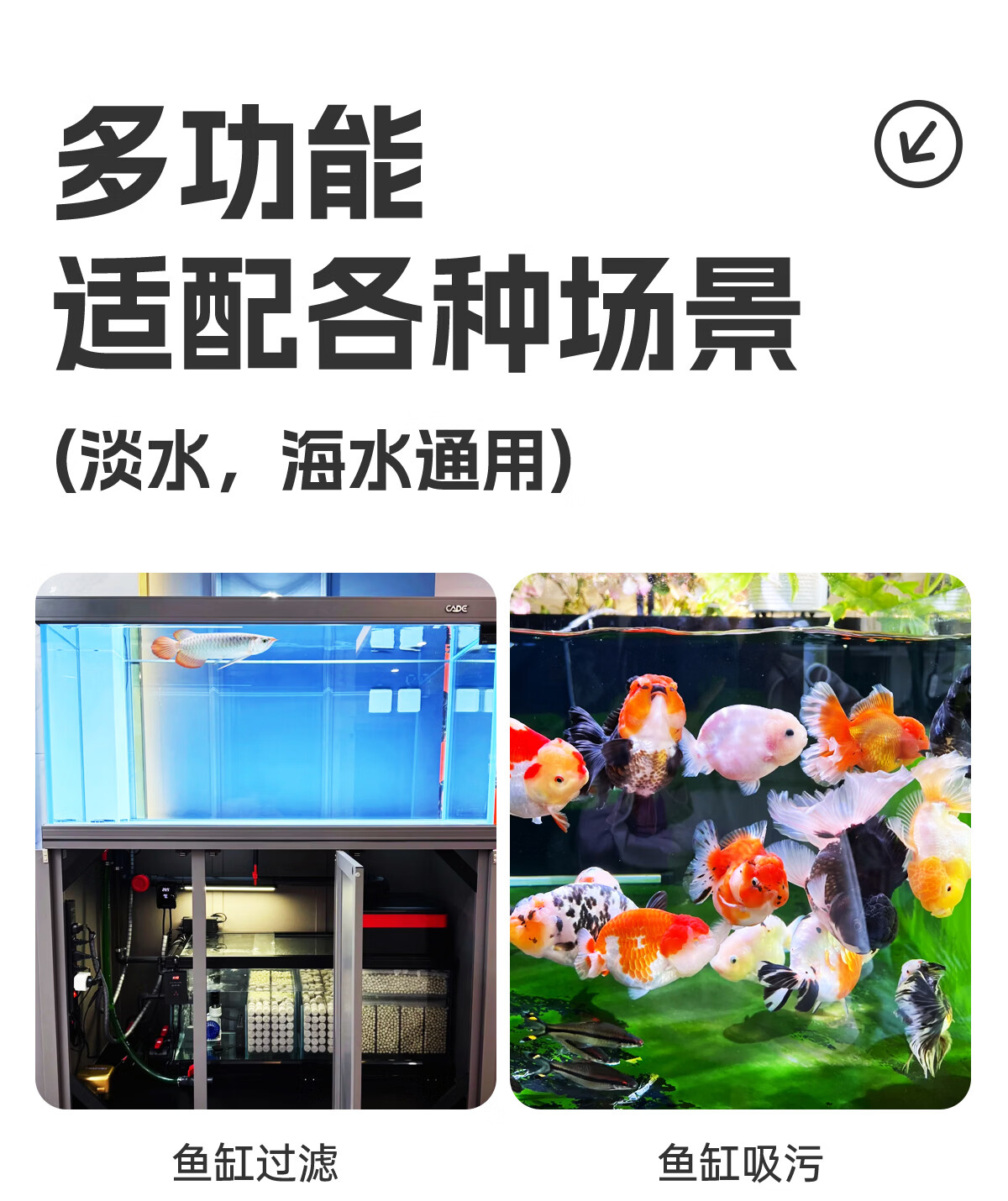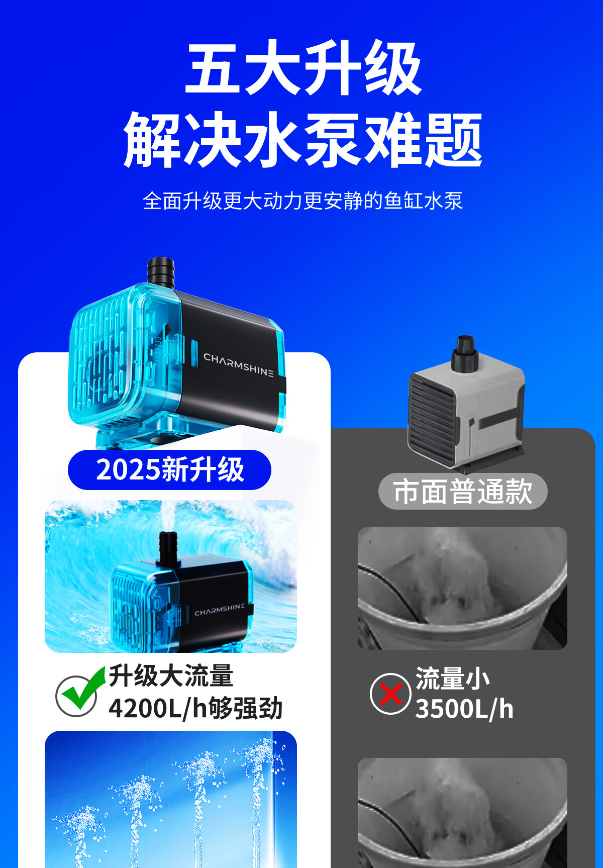 宠小帅鱼缸水泵底侧潜水泵水循环鱼缸过滤泵水族箱抽水泵小型超静音水泵 15W 【双吸大流量调节】1200L