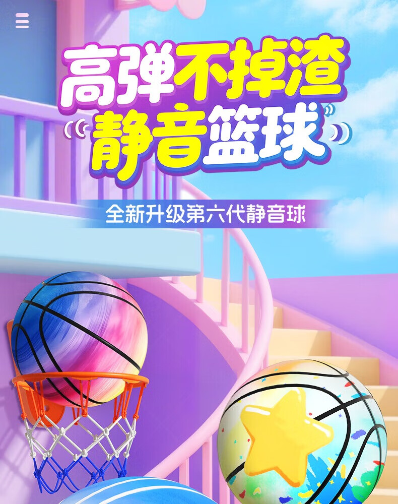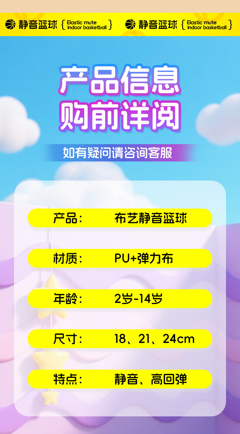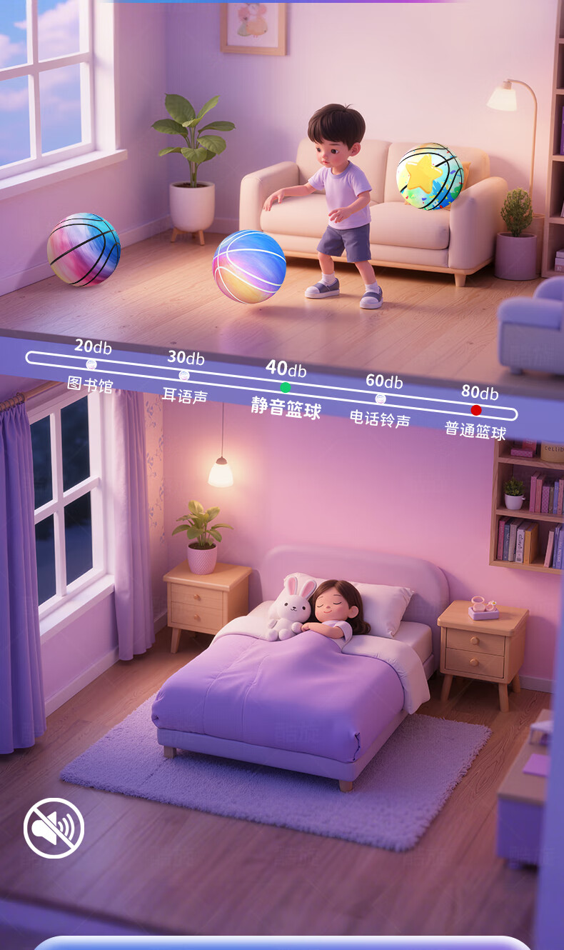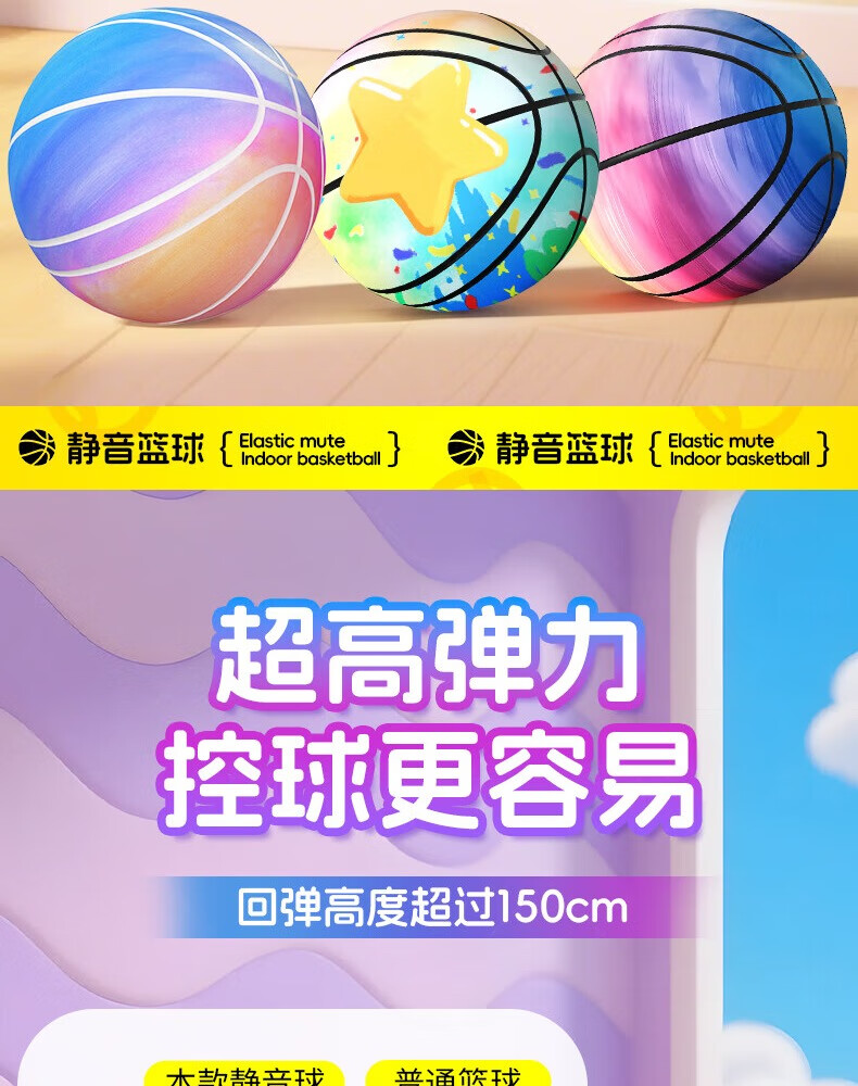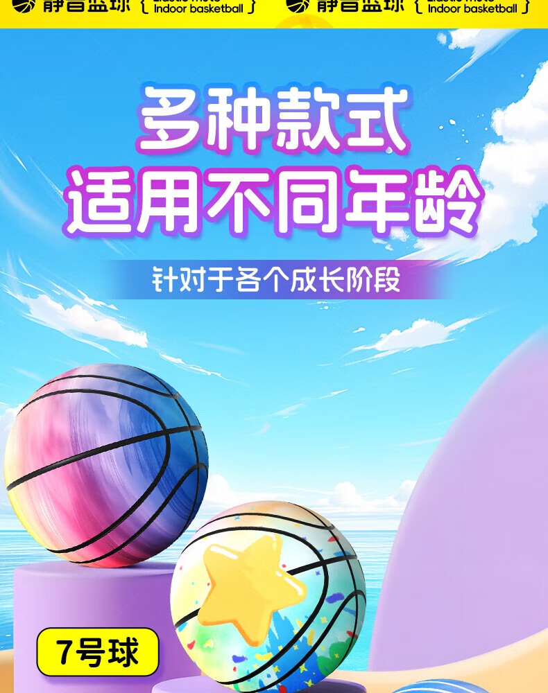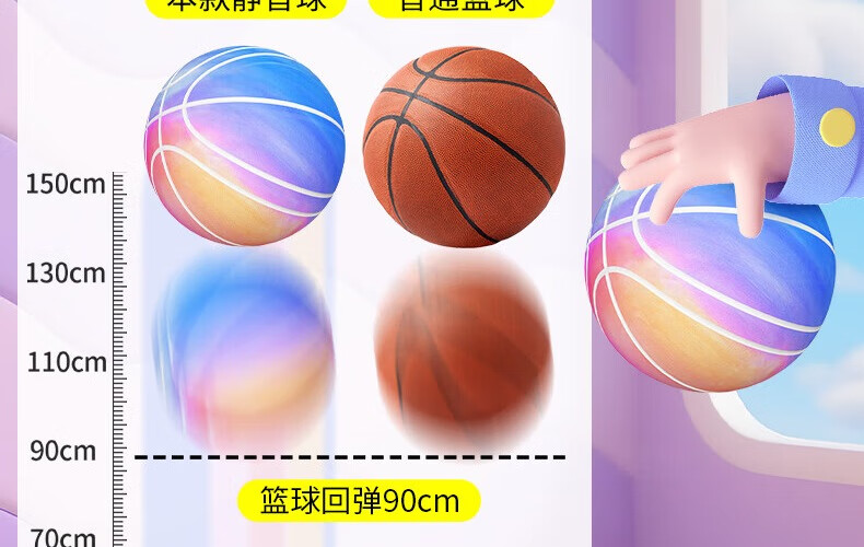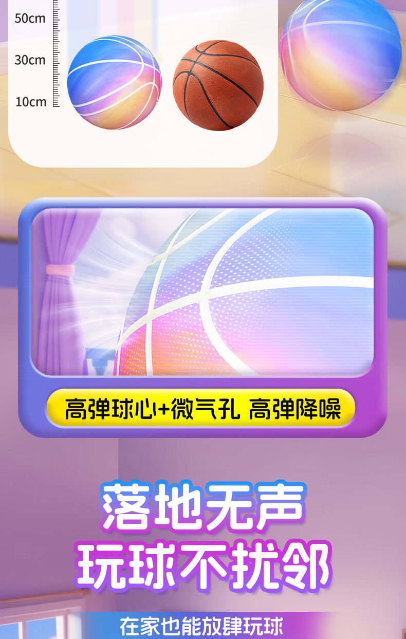 申沃静音篮球室内无声专业静音球不掉渣布套蓝球5号海绵儿童拍拍球7号 【投篮套餐】极光幻影-7号球+免安装篮筐