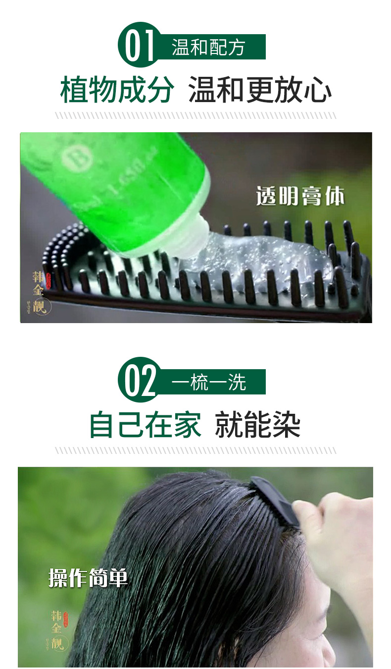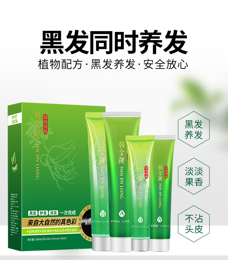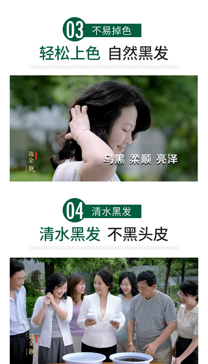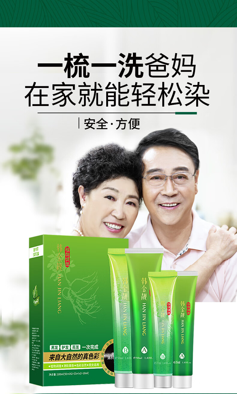 韩金靓 清水黑染发剂植物黑发焗油自然一梳黑爸妈长辈礼物送礼染发膏 自然黑 170ml *3盒【可盖白发】