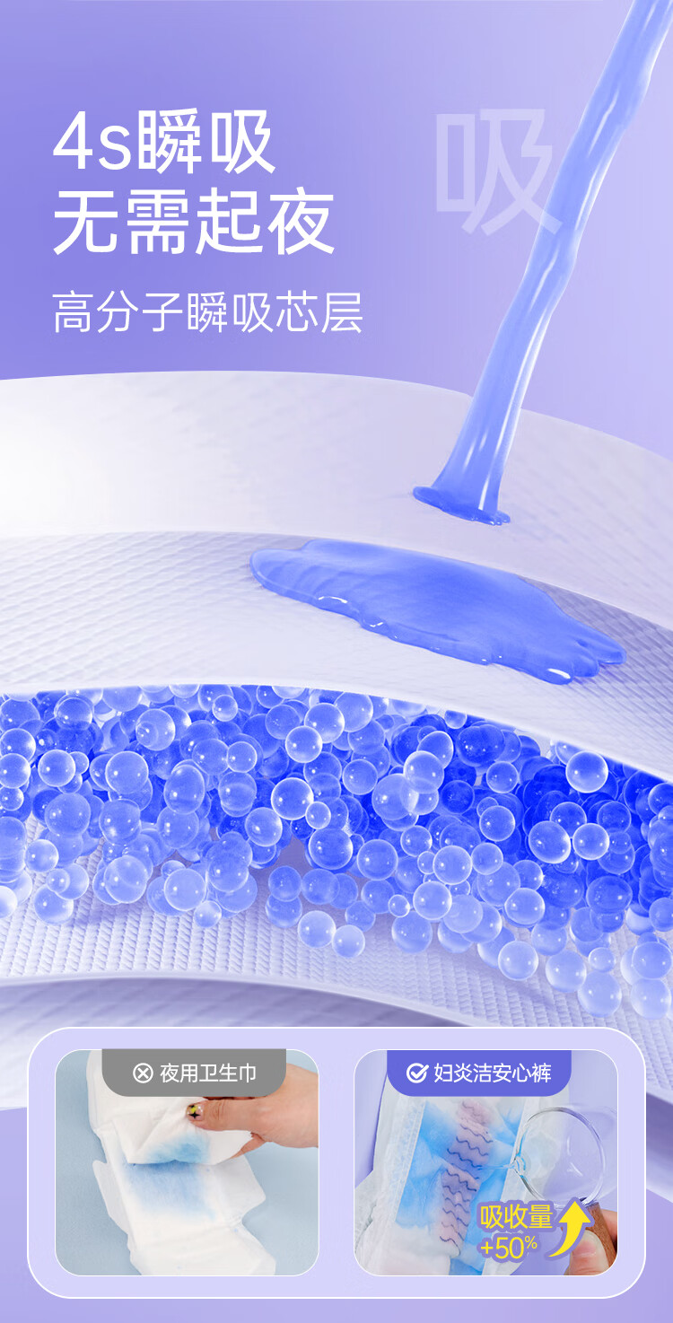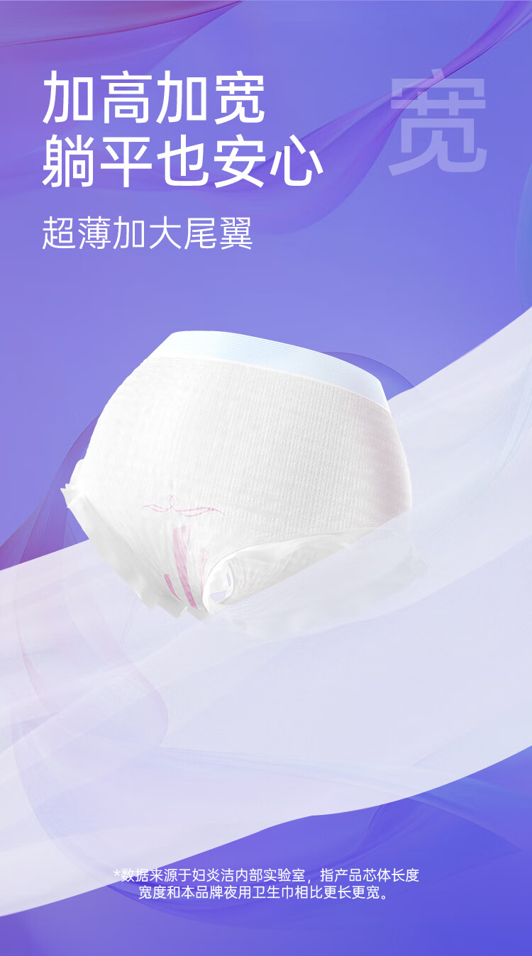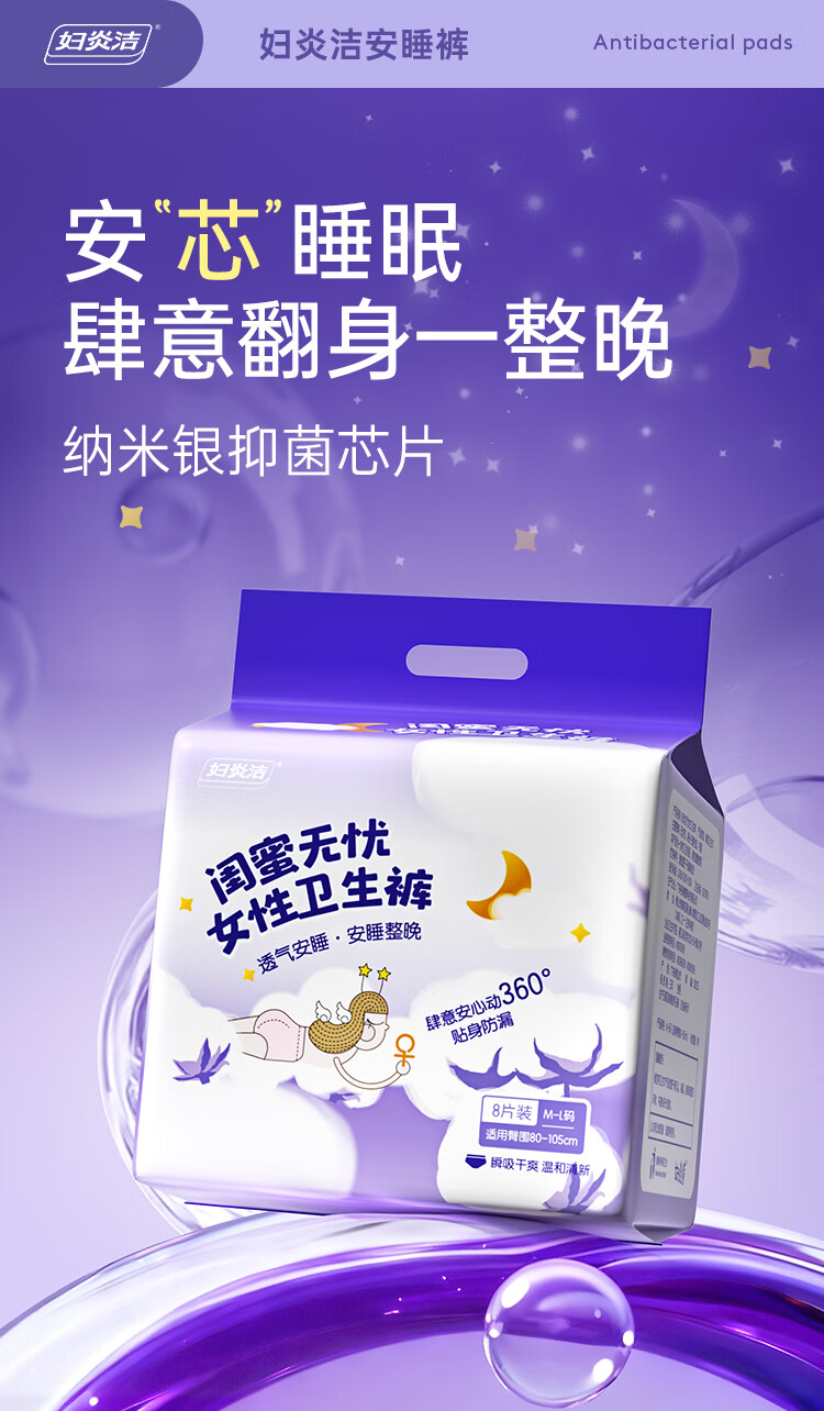妇炎洁夜用裤360°防侧漏瞬吸型卫生巾超薄透气安心安睡裤敏感肌可用 M-L码 24条 80-140斤