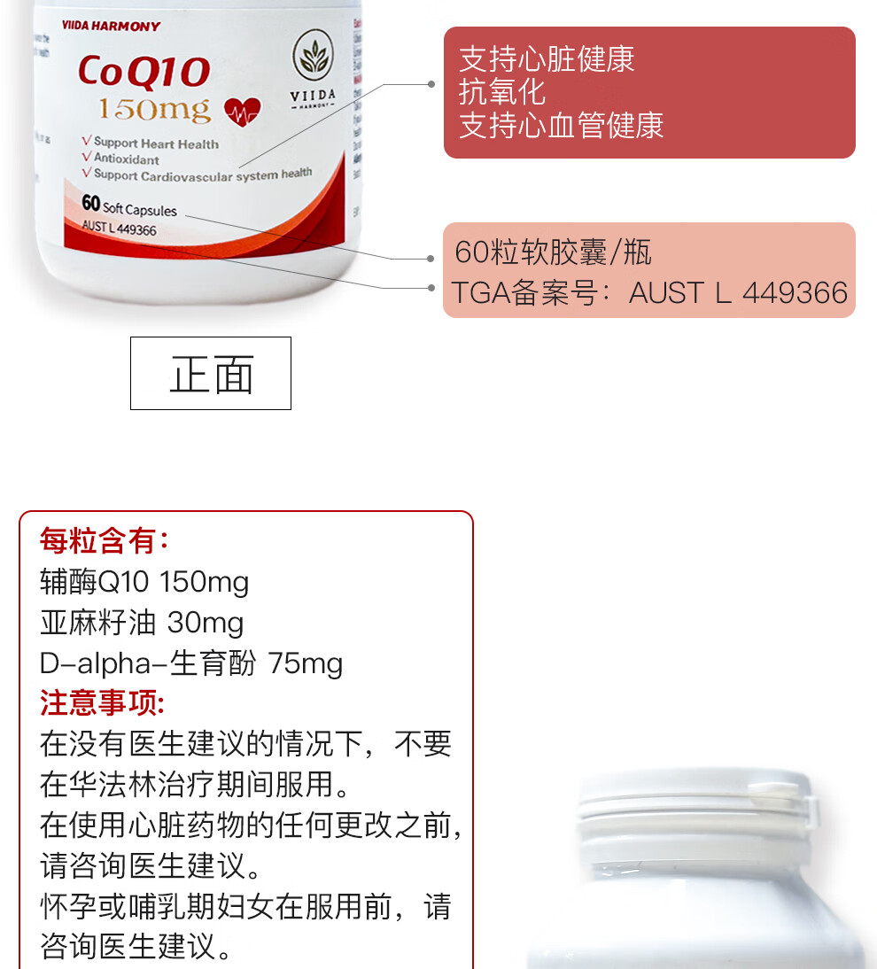 VIIDA HARMONY澳洲进口护心保心辅酶Q10熬夜解酒护肝片 1瓶辅酶Q10+1瓶护肝片 60粒*1瓶